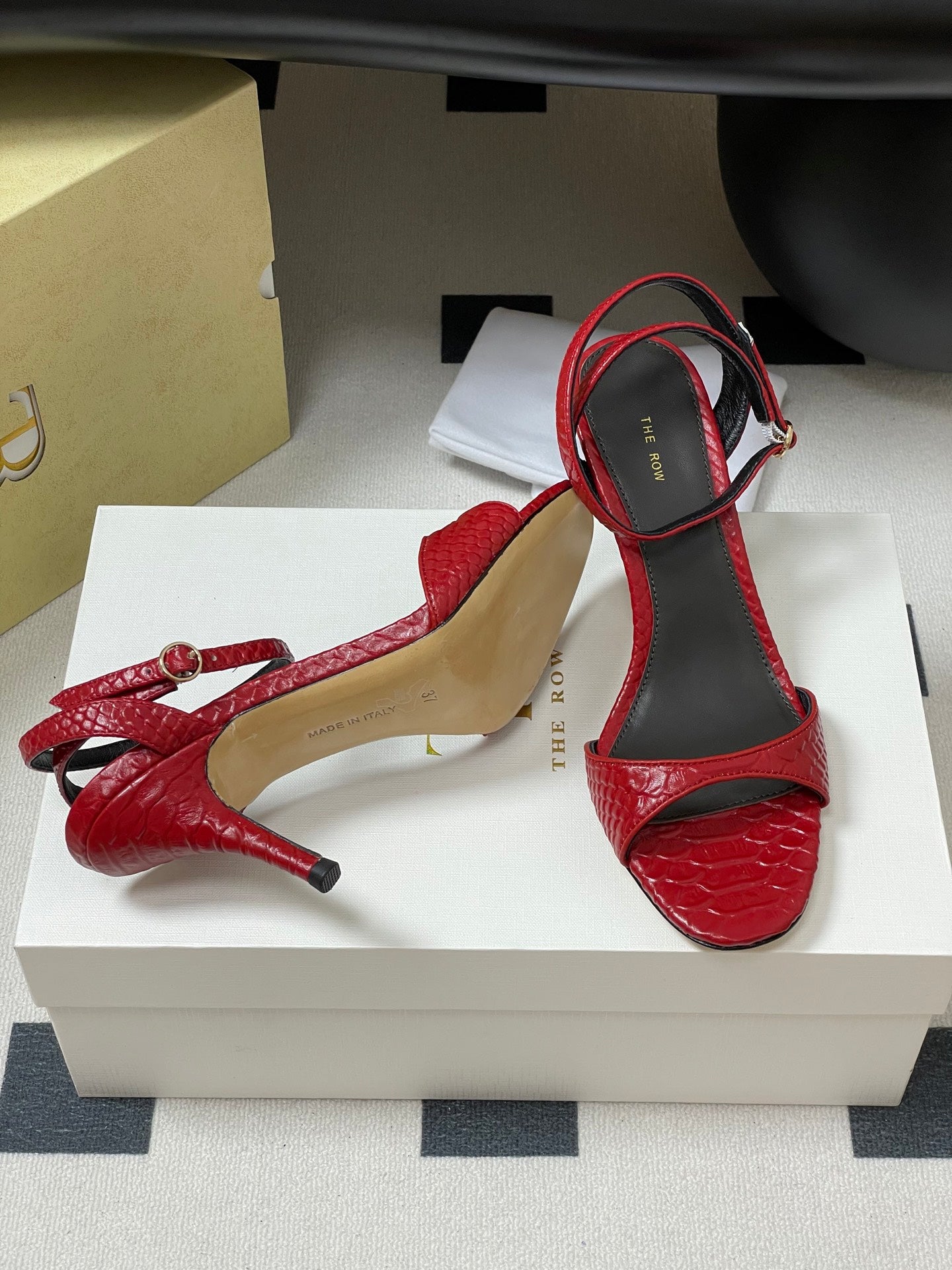 The Row 25S Strap High Heel Sandals 85mm Red Snake Pattern Cowhide 286187