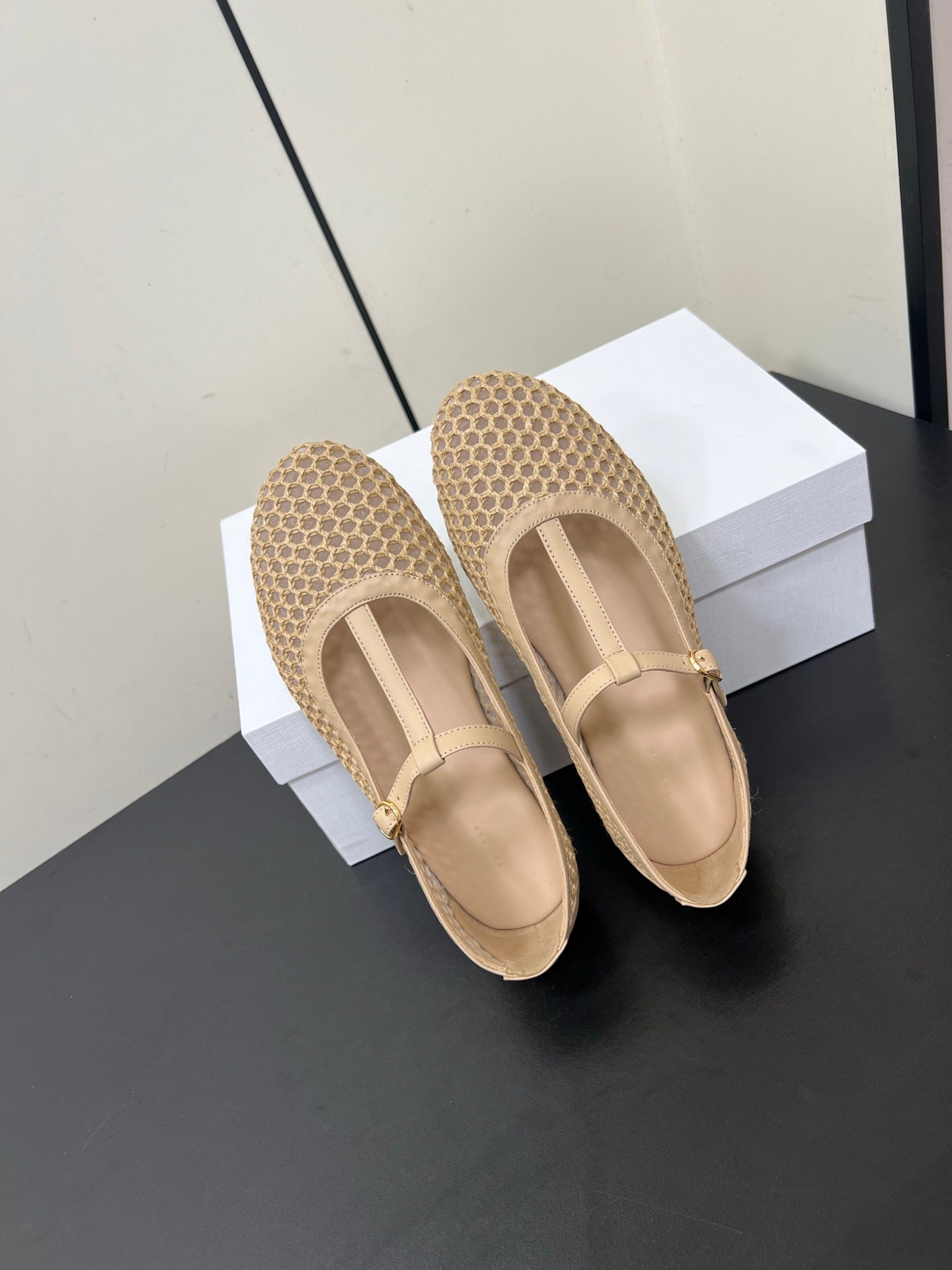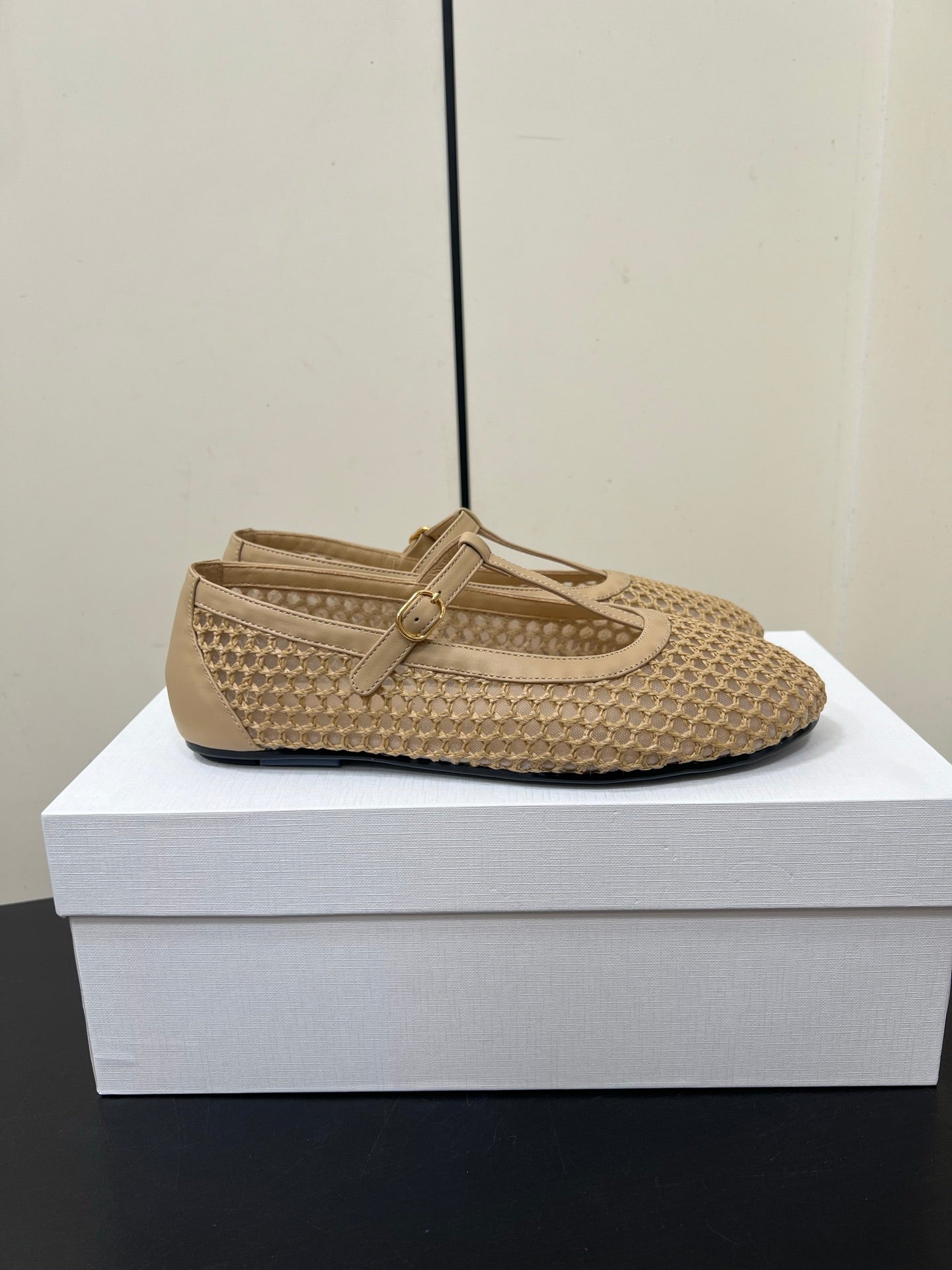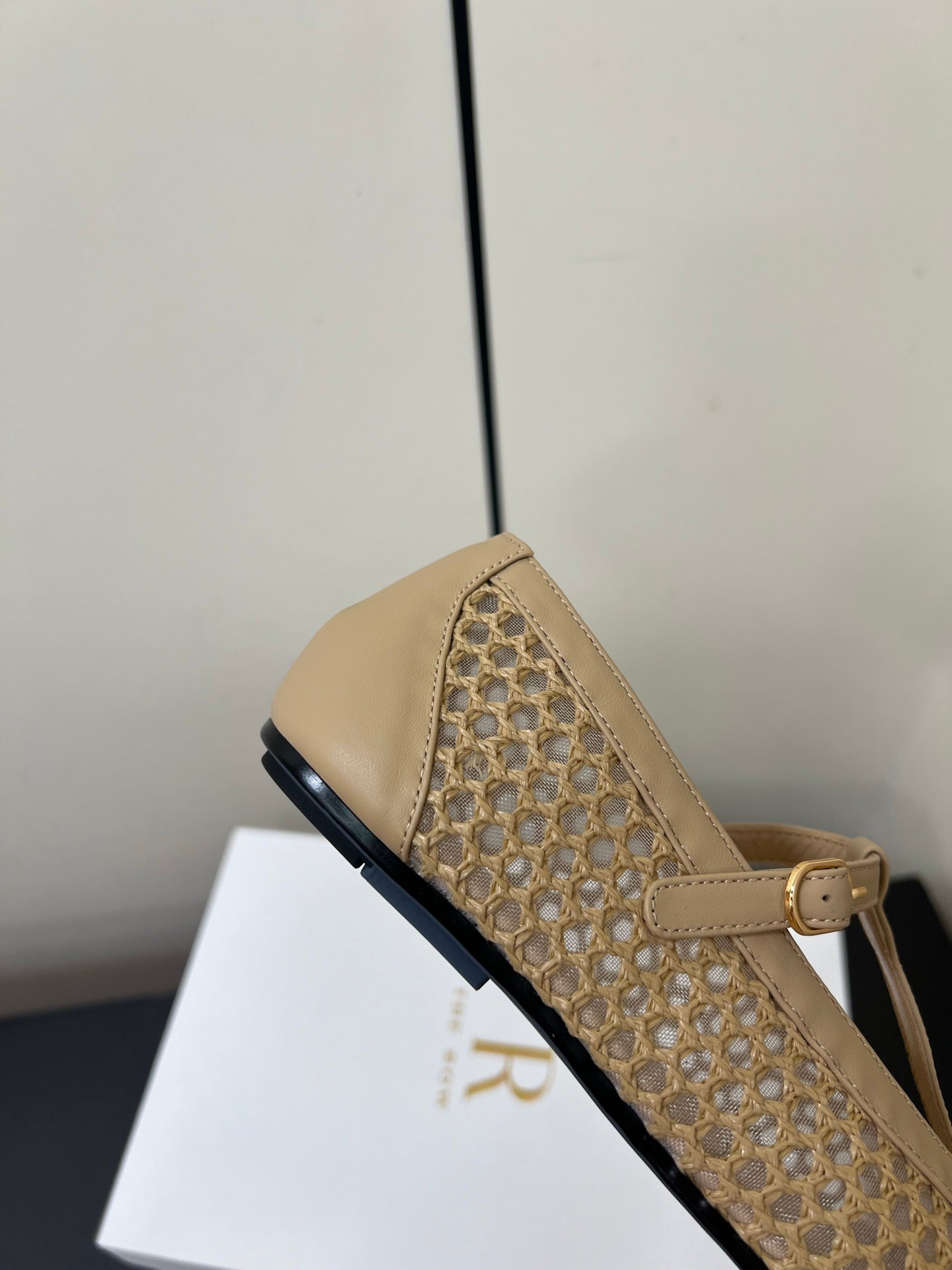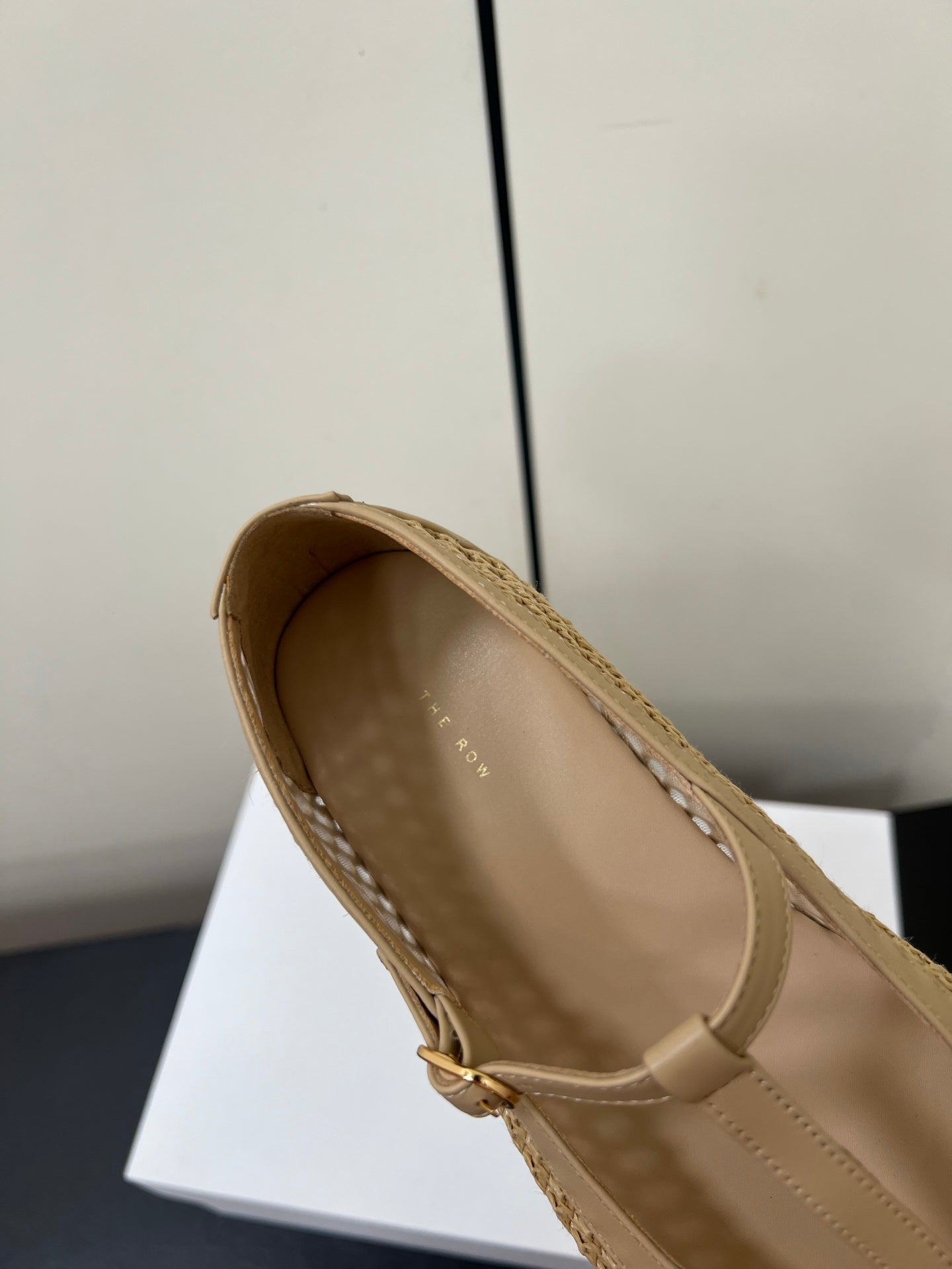 The Row 25ss Square T-Strap Flat Beige Mesh Cowhide 340039