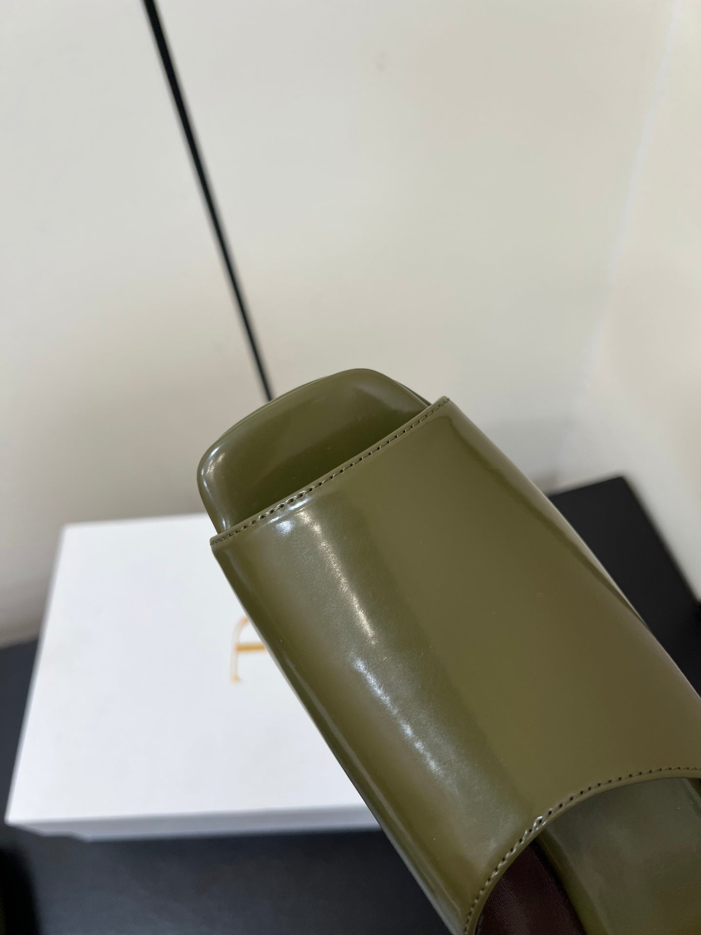 The Row Emi Flatform Sandal 50mm Olive Patent Leather 340004