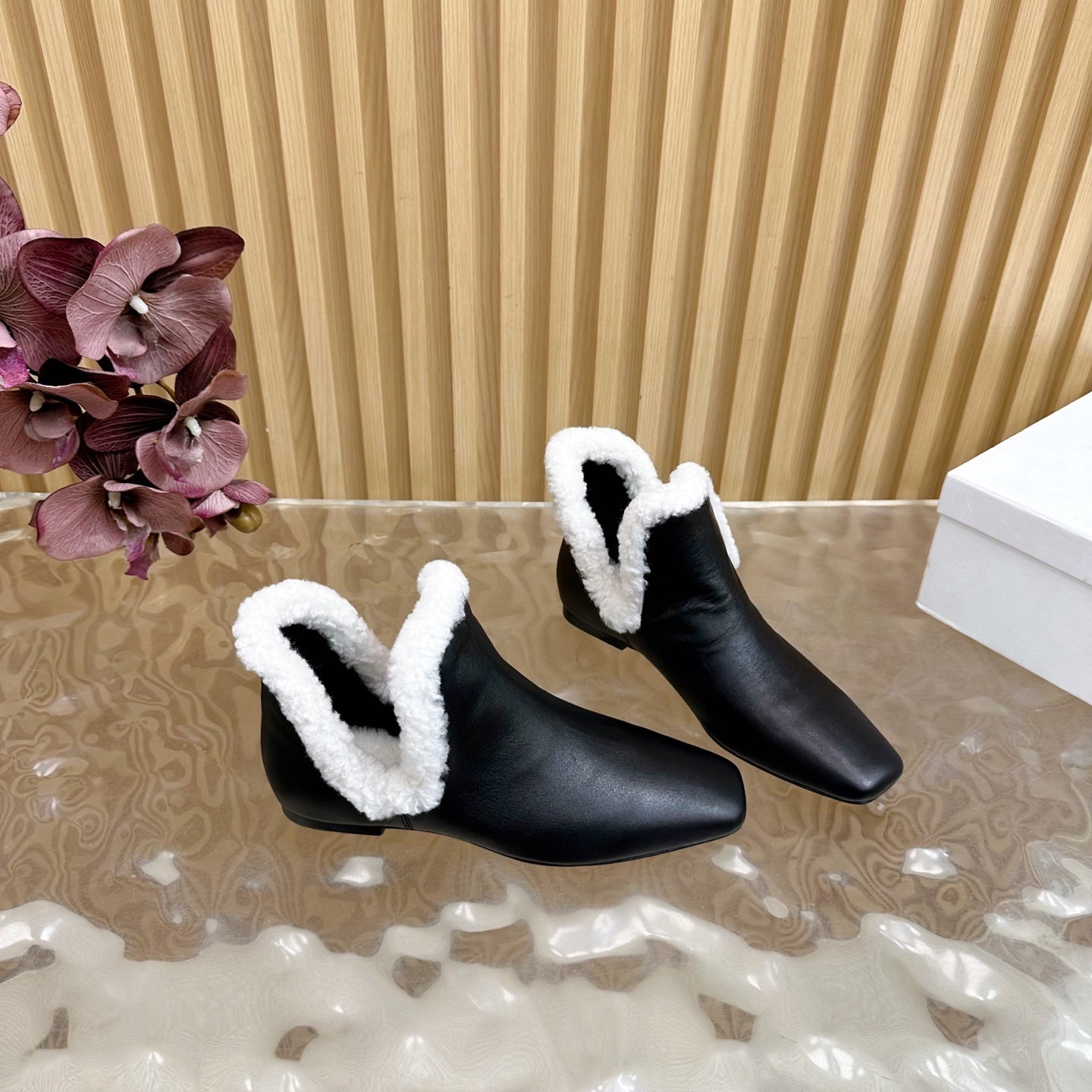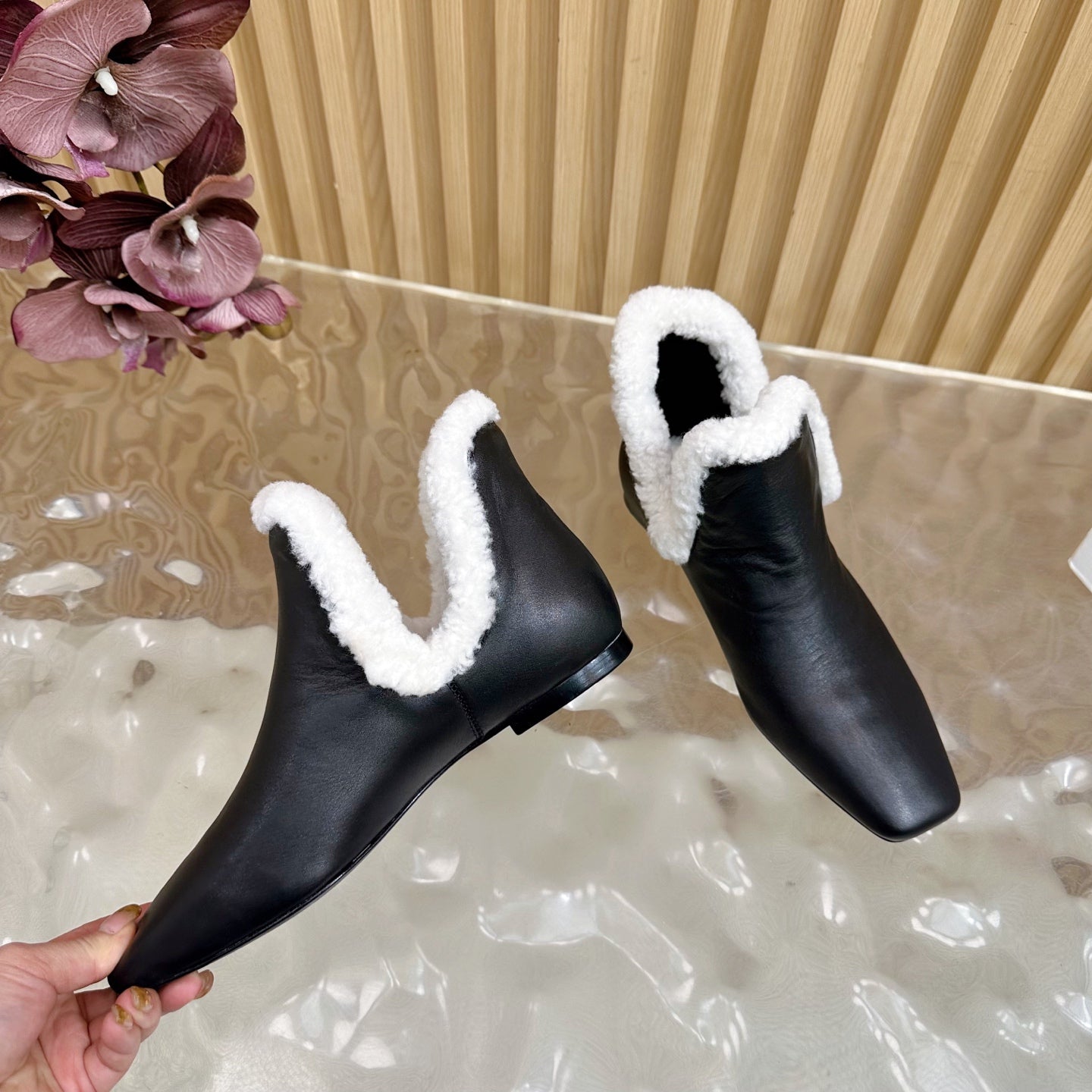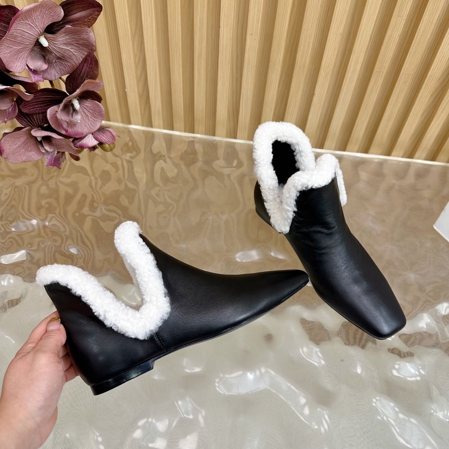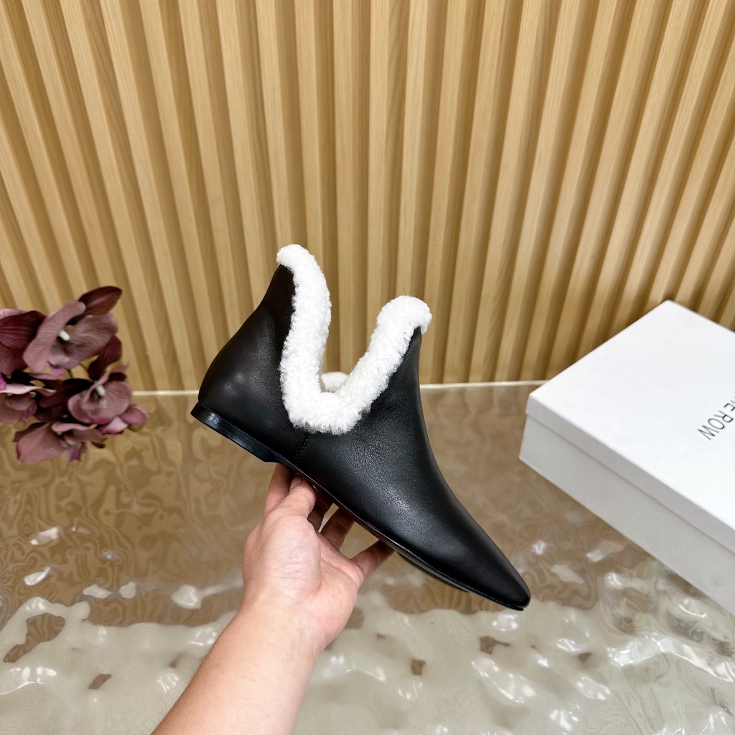 The Row Eros Ankle Boots Black Shearling-trimmed Sheepskin 436644