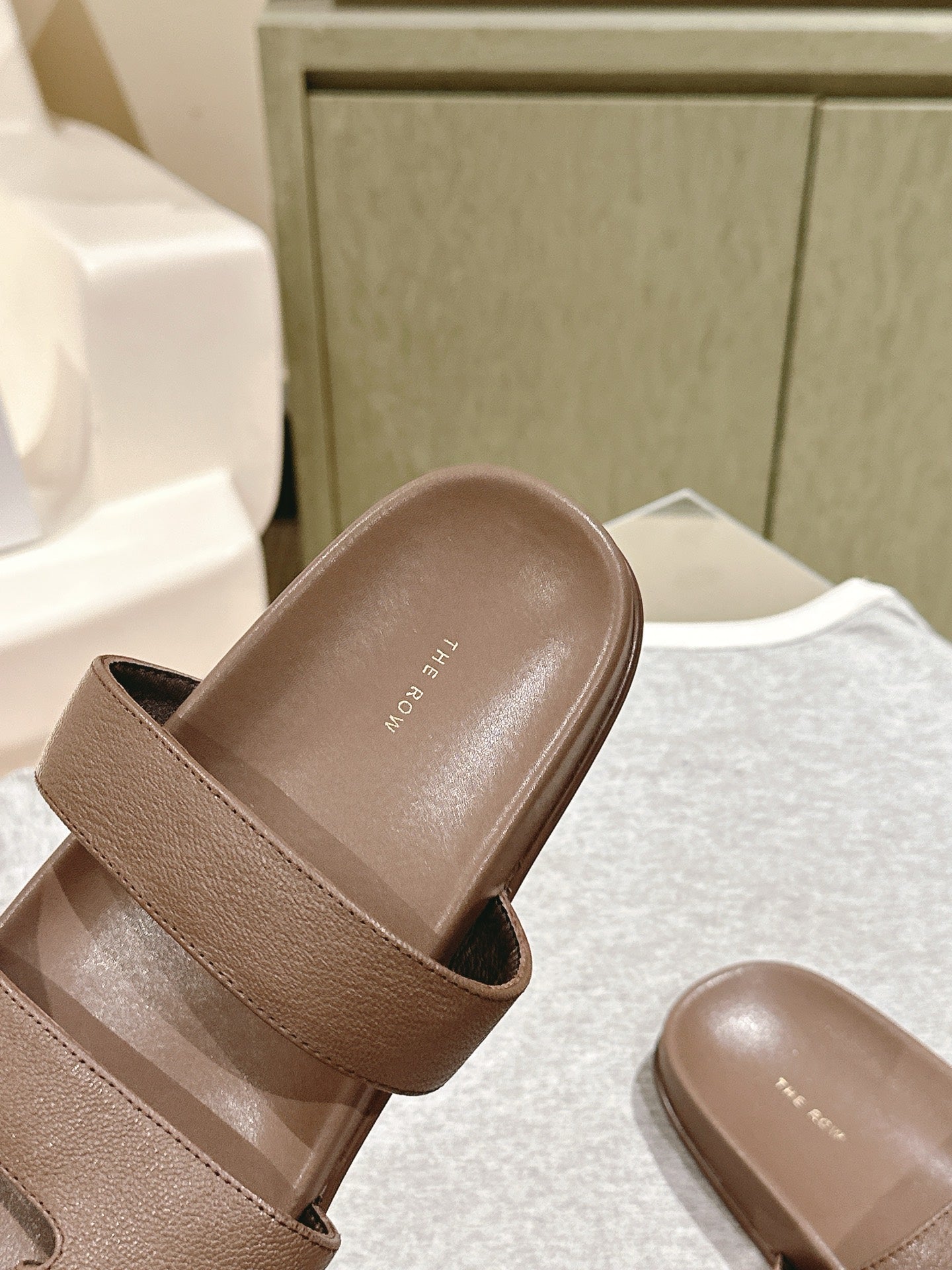 The Row Hugh Slides Brown Cowhide Rubber 451283