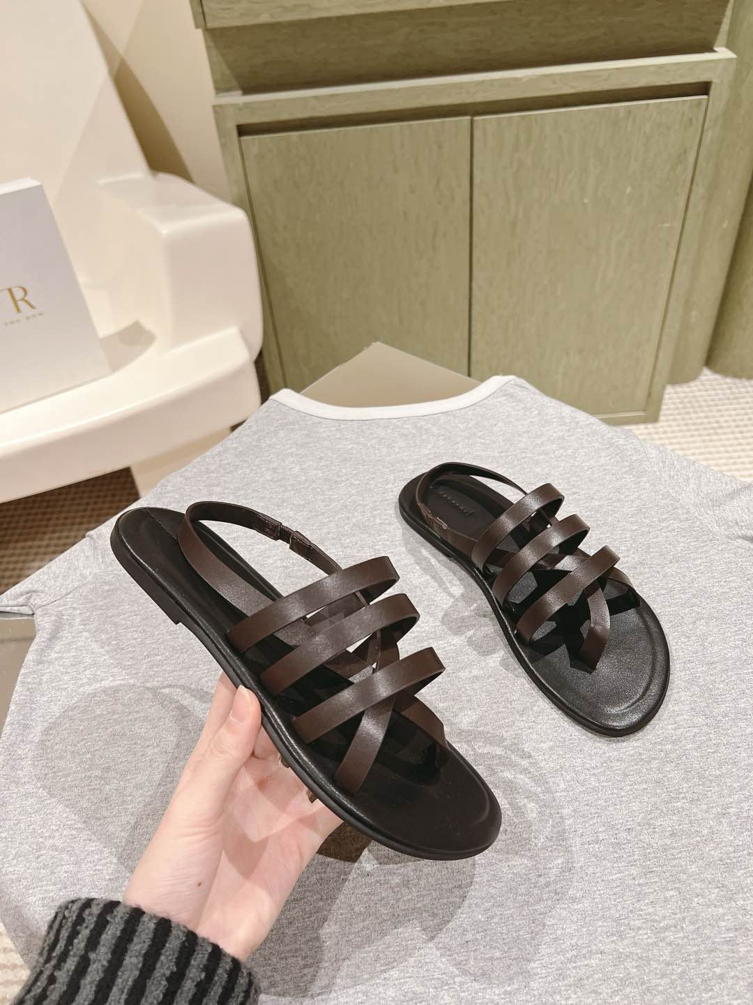 The Row Line Sandals Dark Brown Black Sheepskin 451279