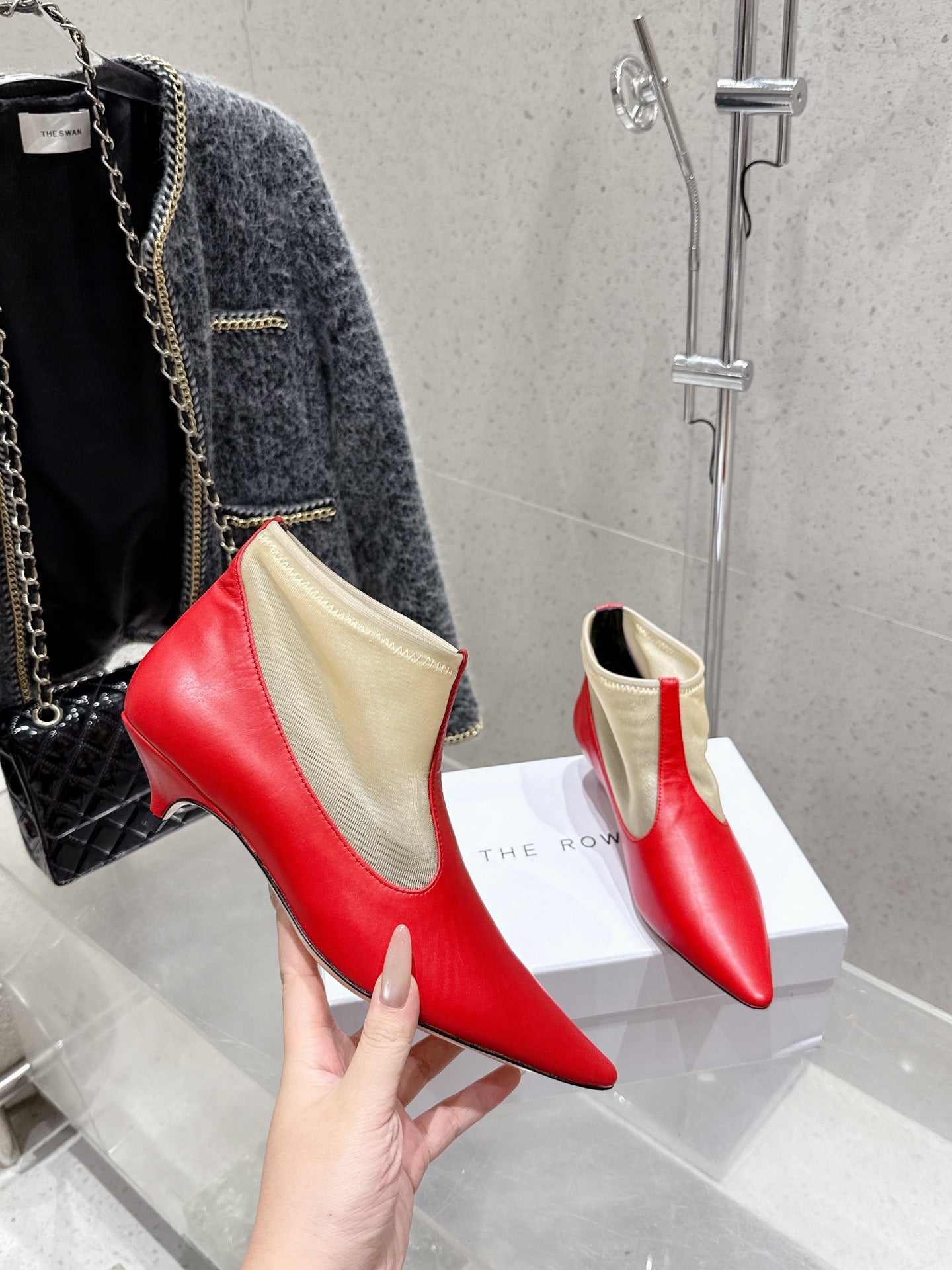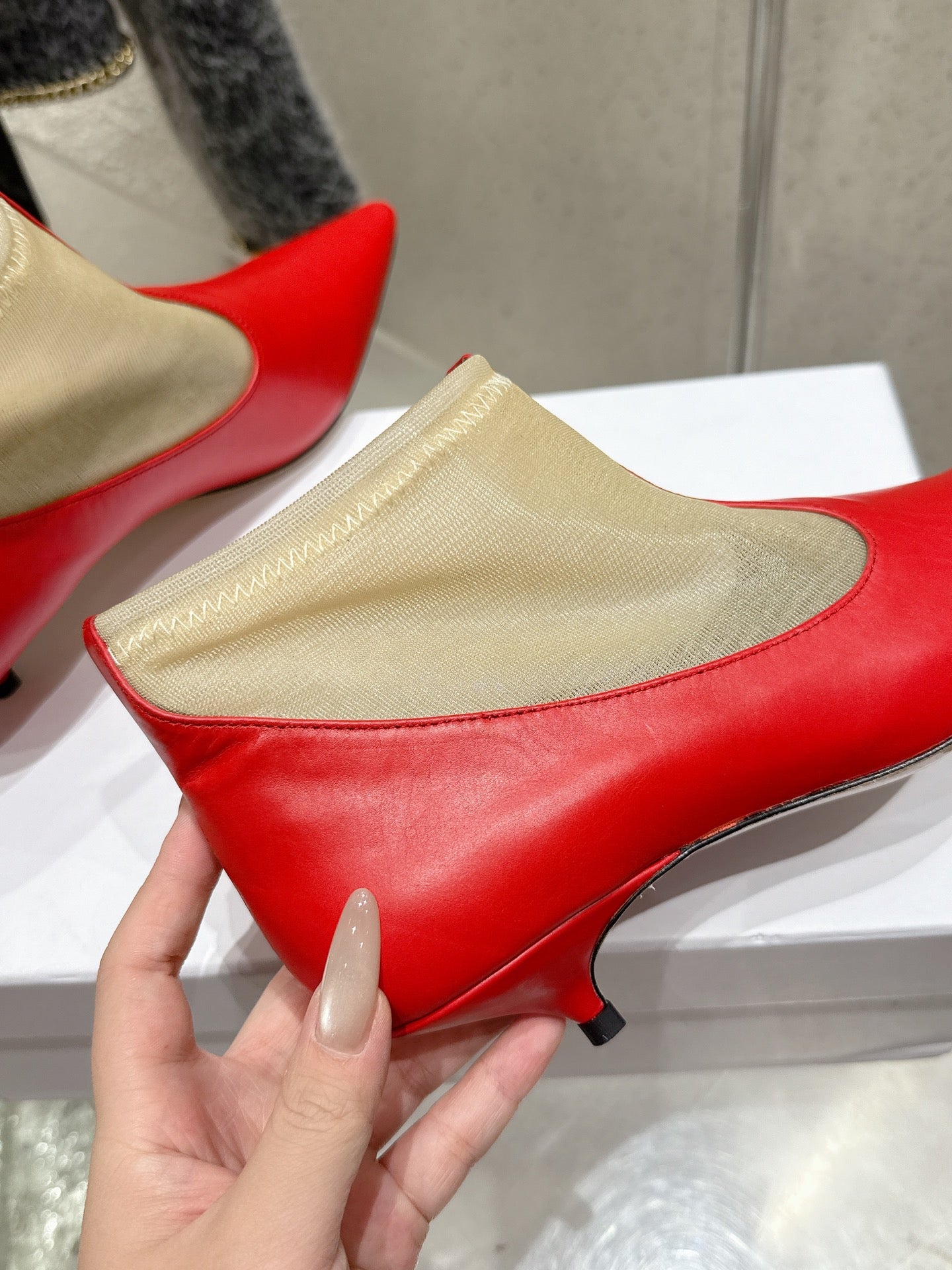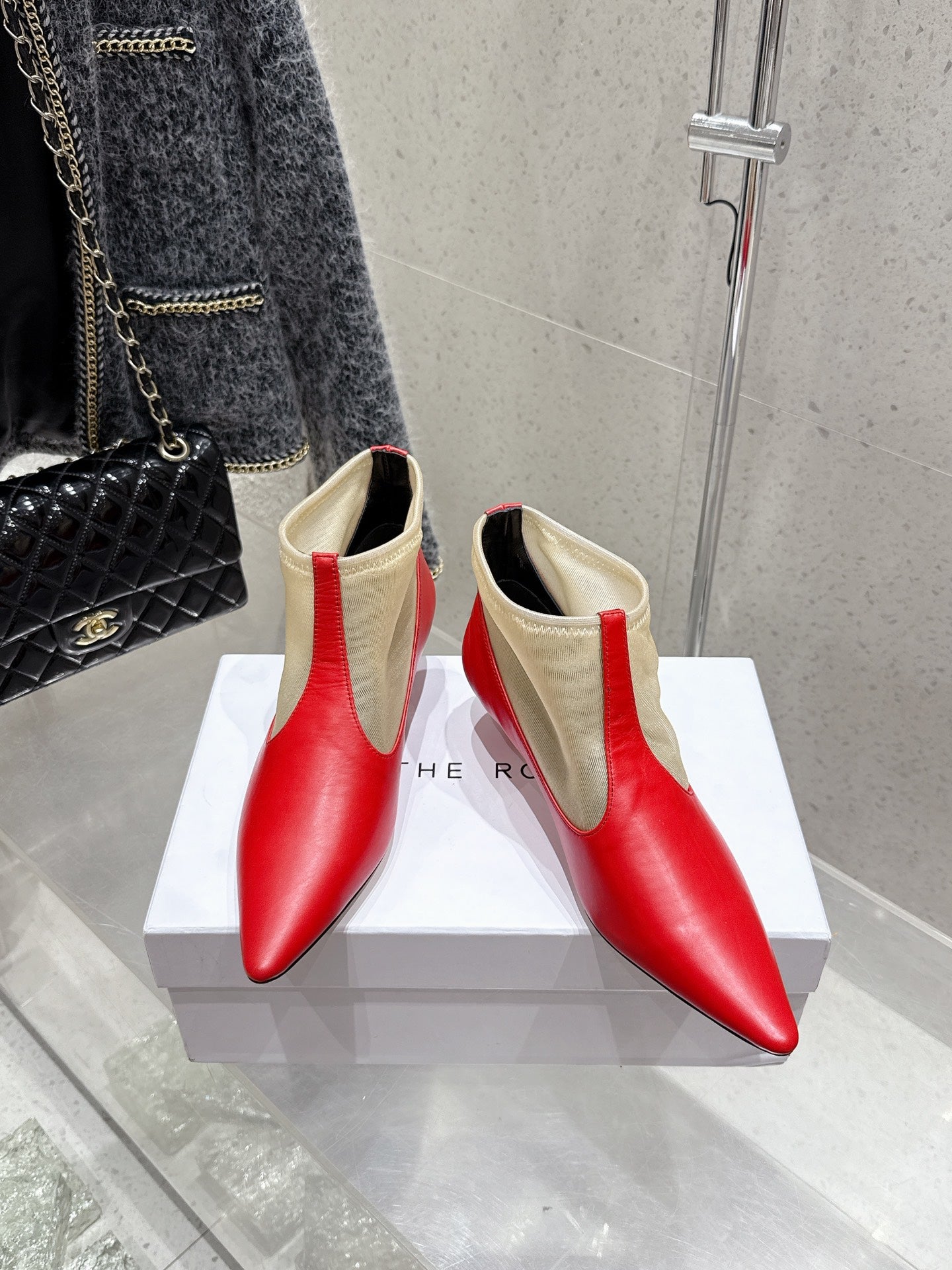 The Row Mesh Bootie 3.5cm Beige Mesh And Red Calfskin 338383