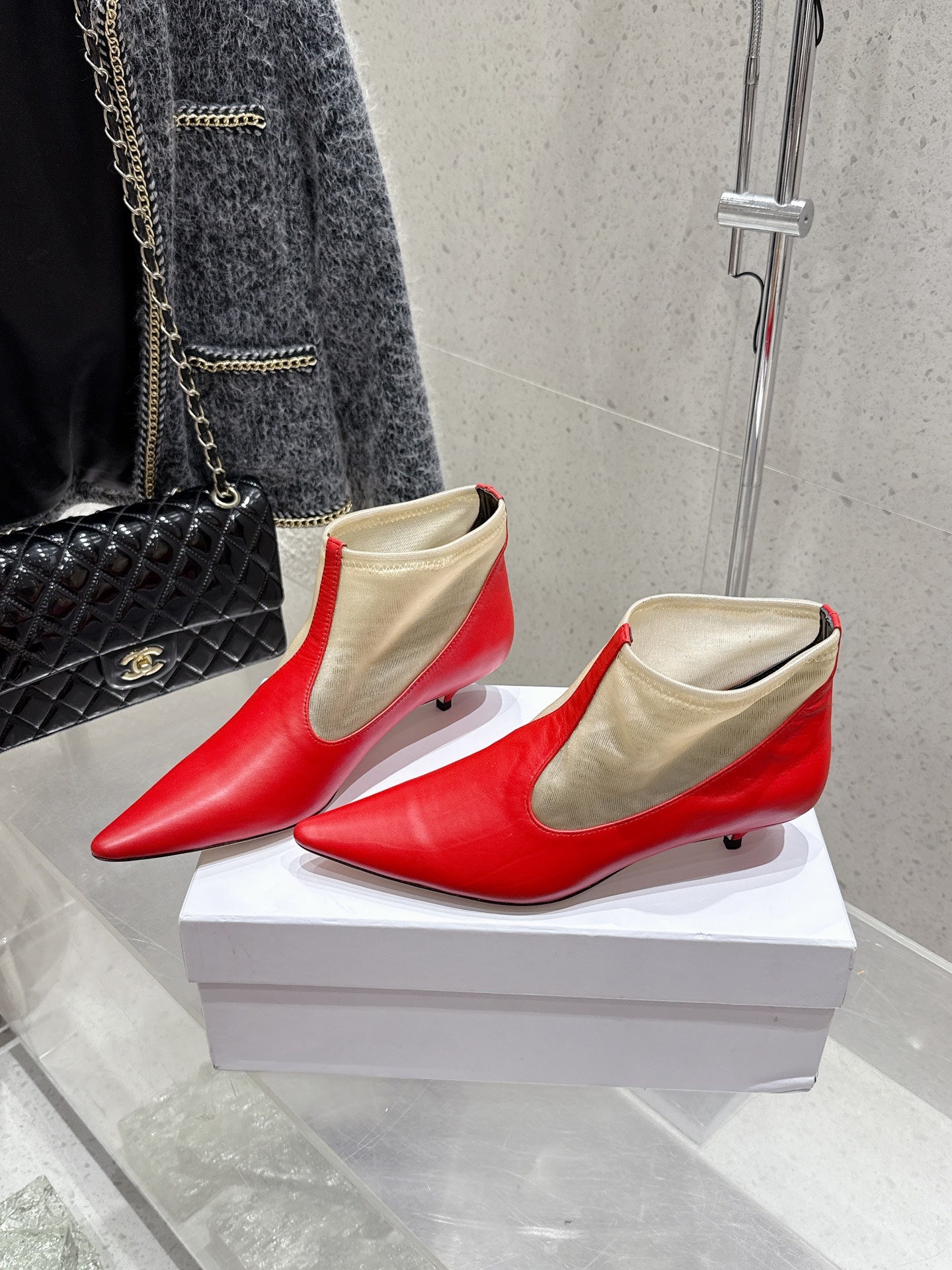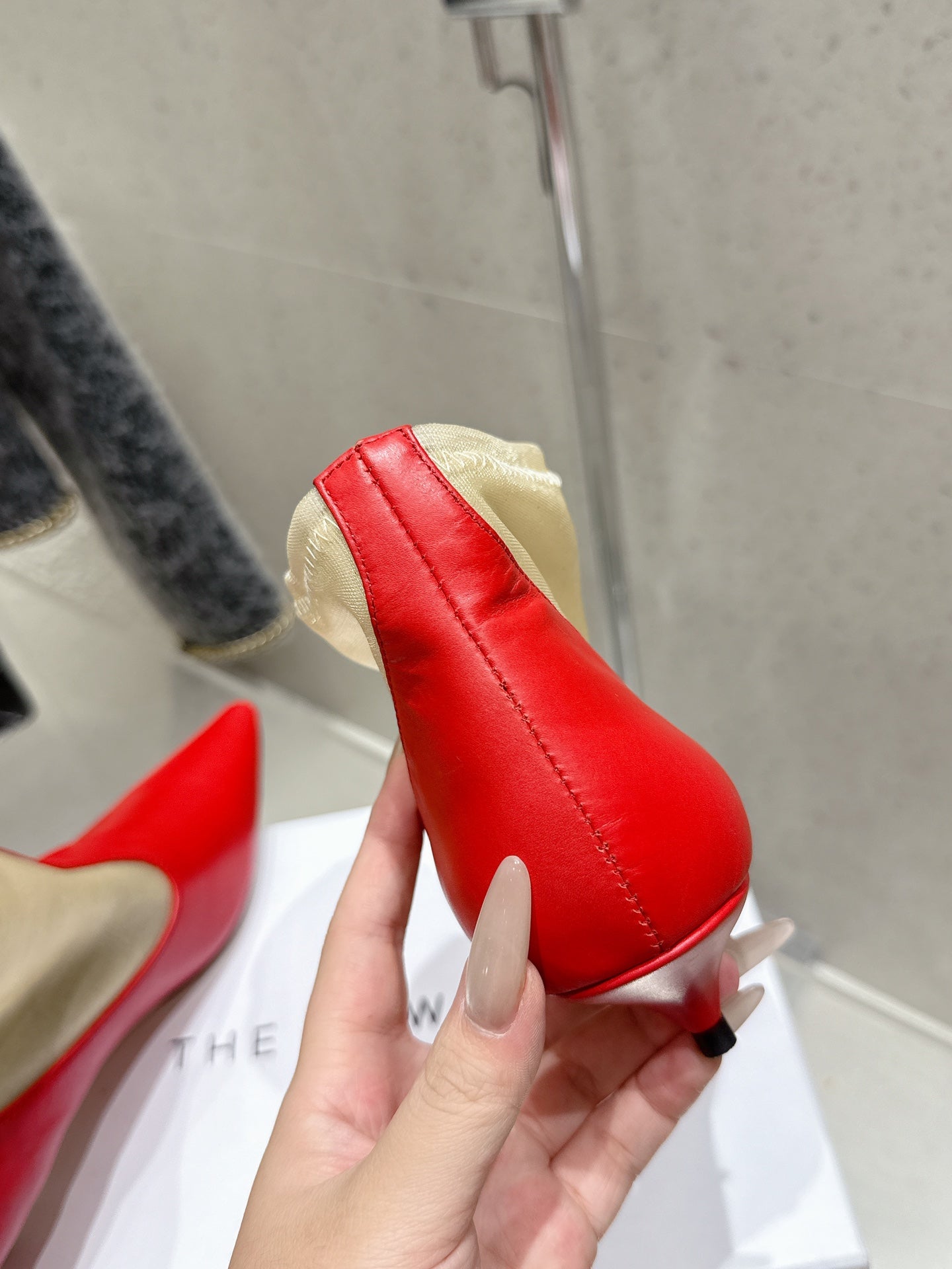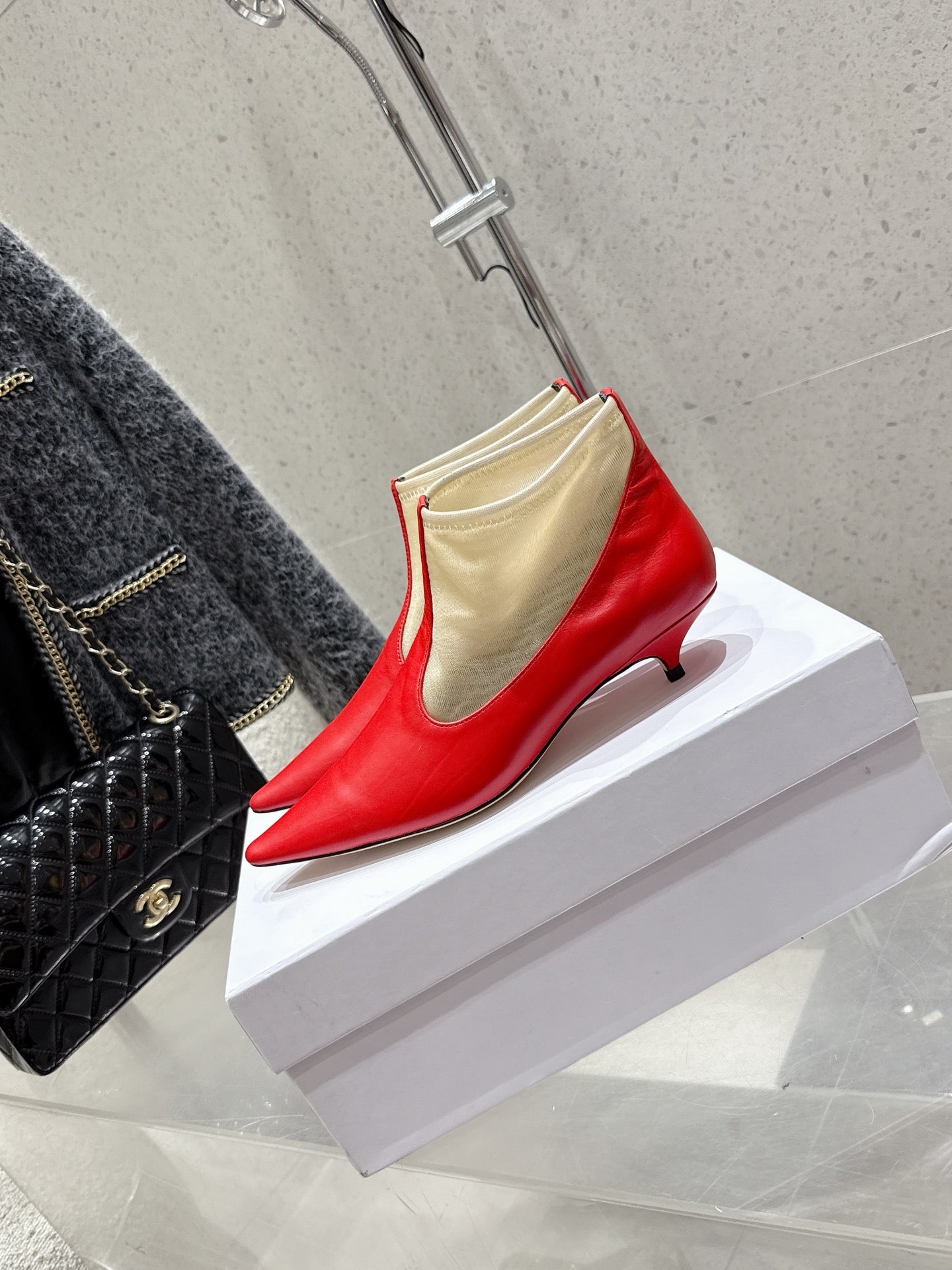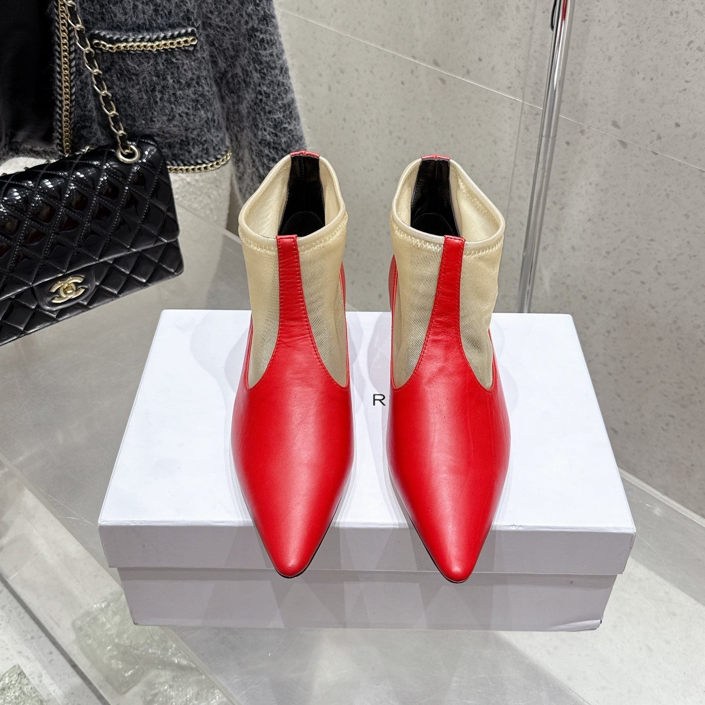 The Row Mesh Bootie 3.5cm Beige Mesh And Red Calfskin 338383