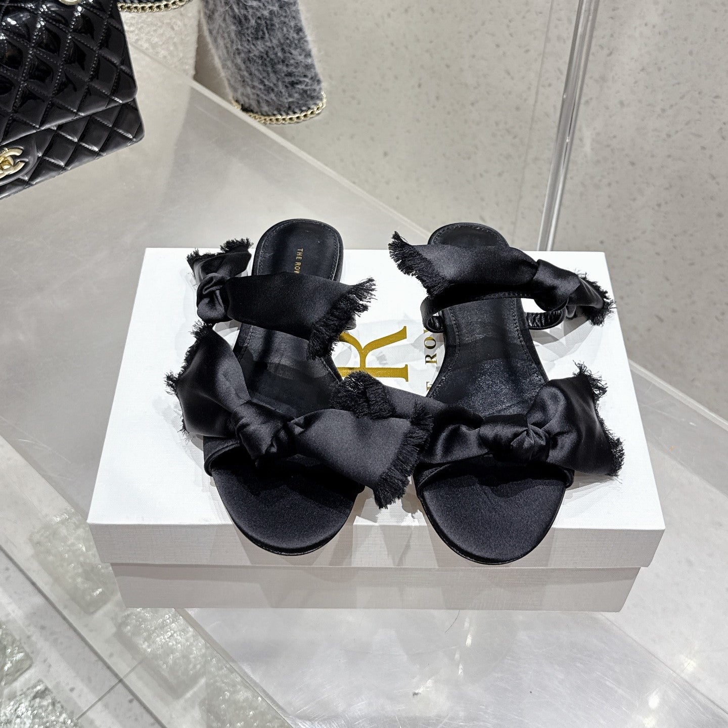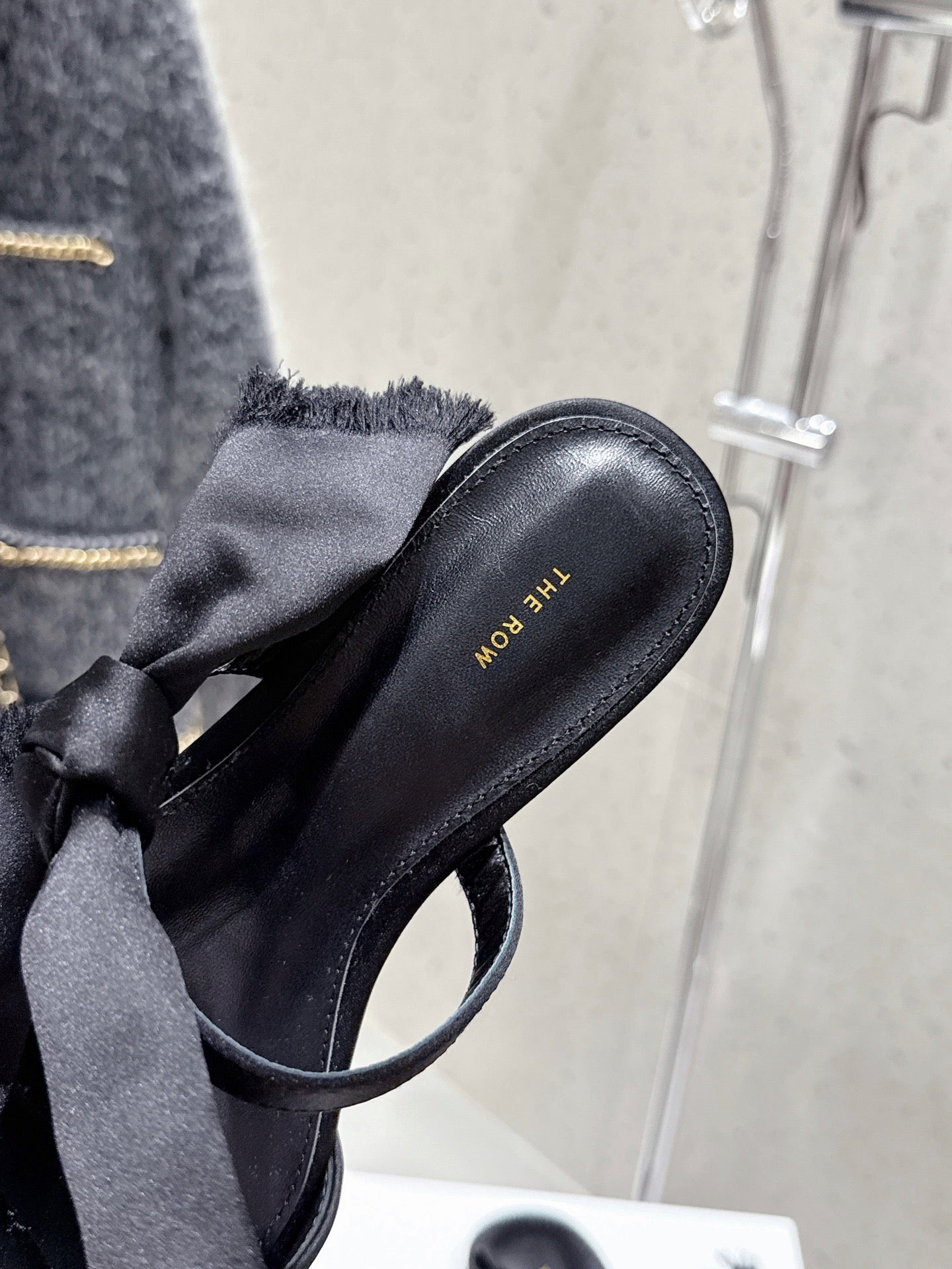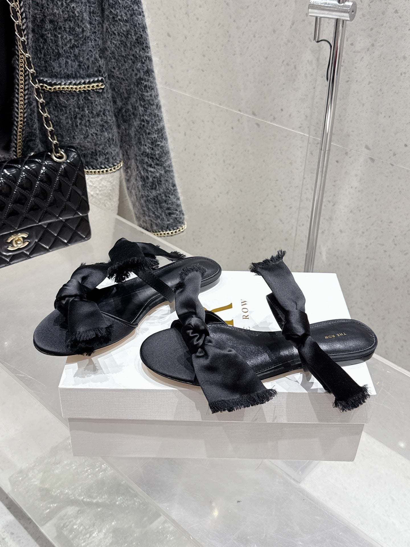 The Row Mule Sandals Black Satin And Sheepskin 338380