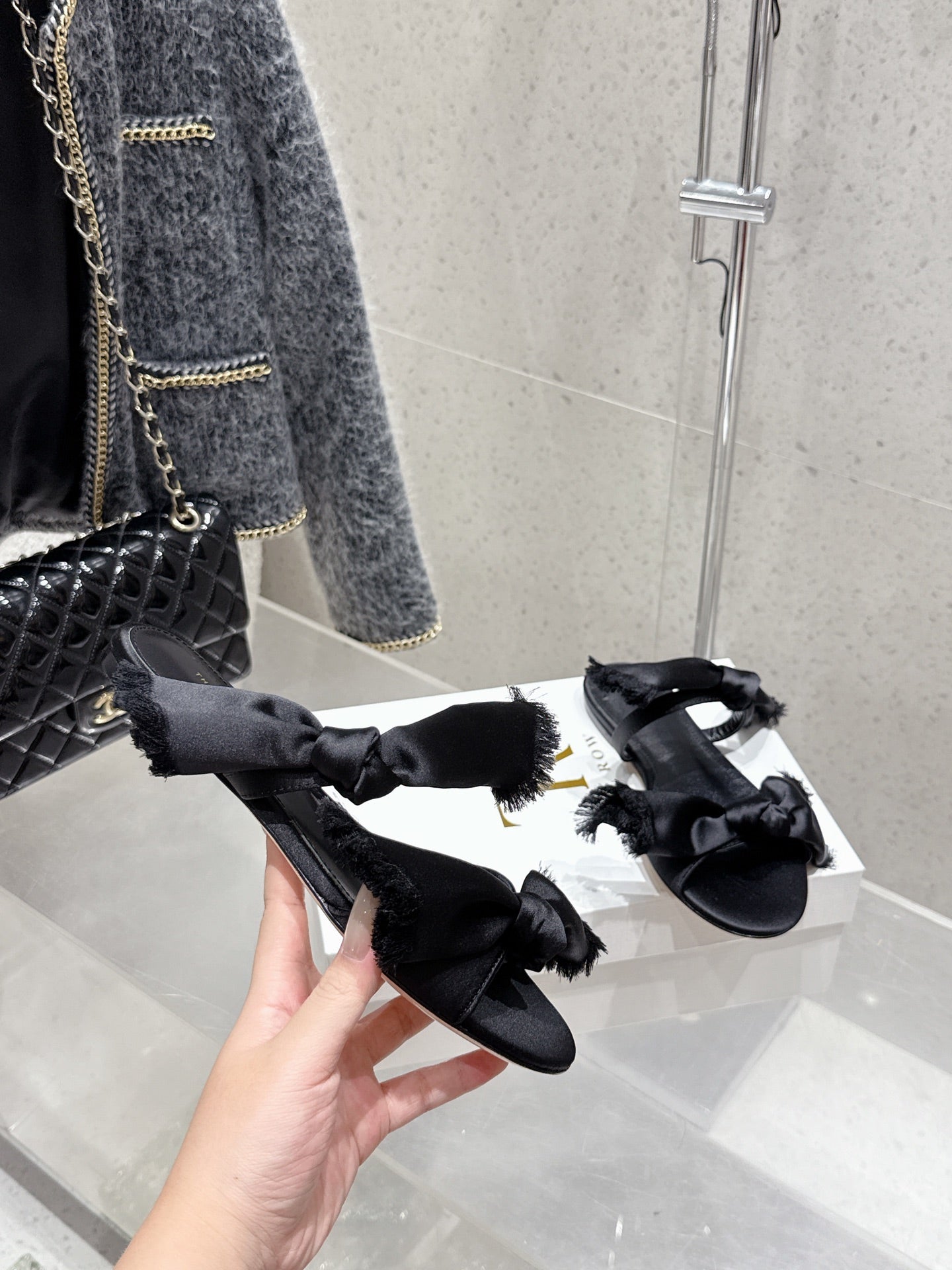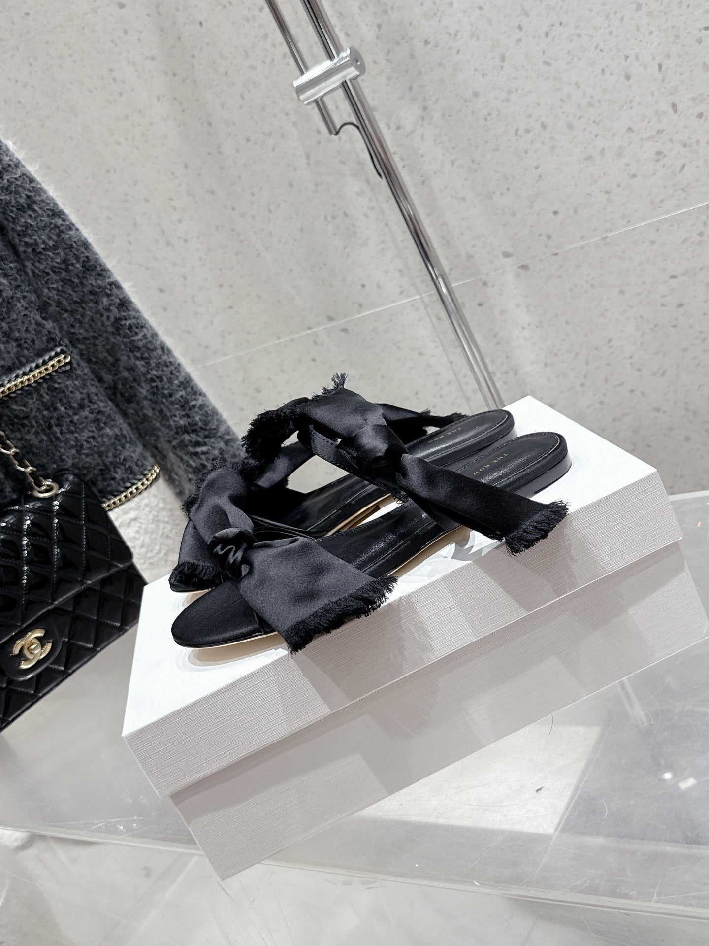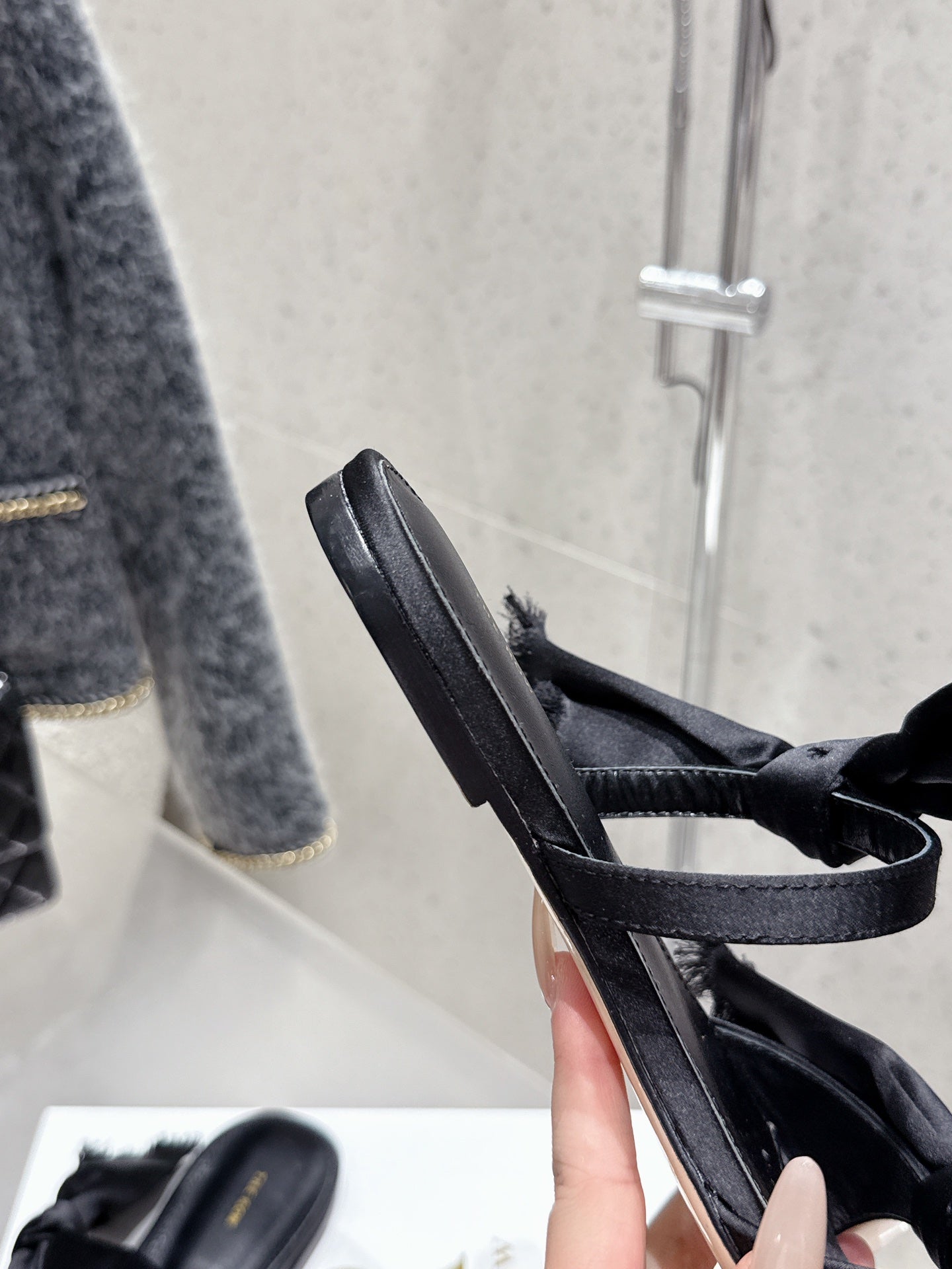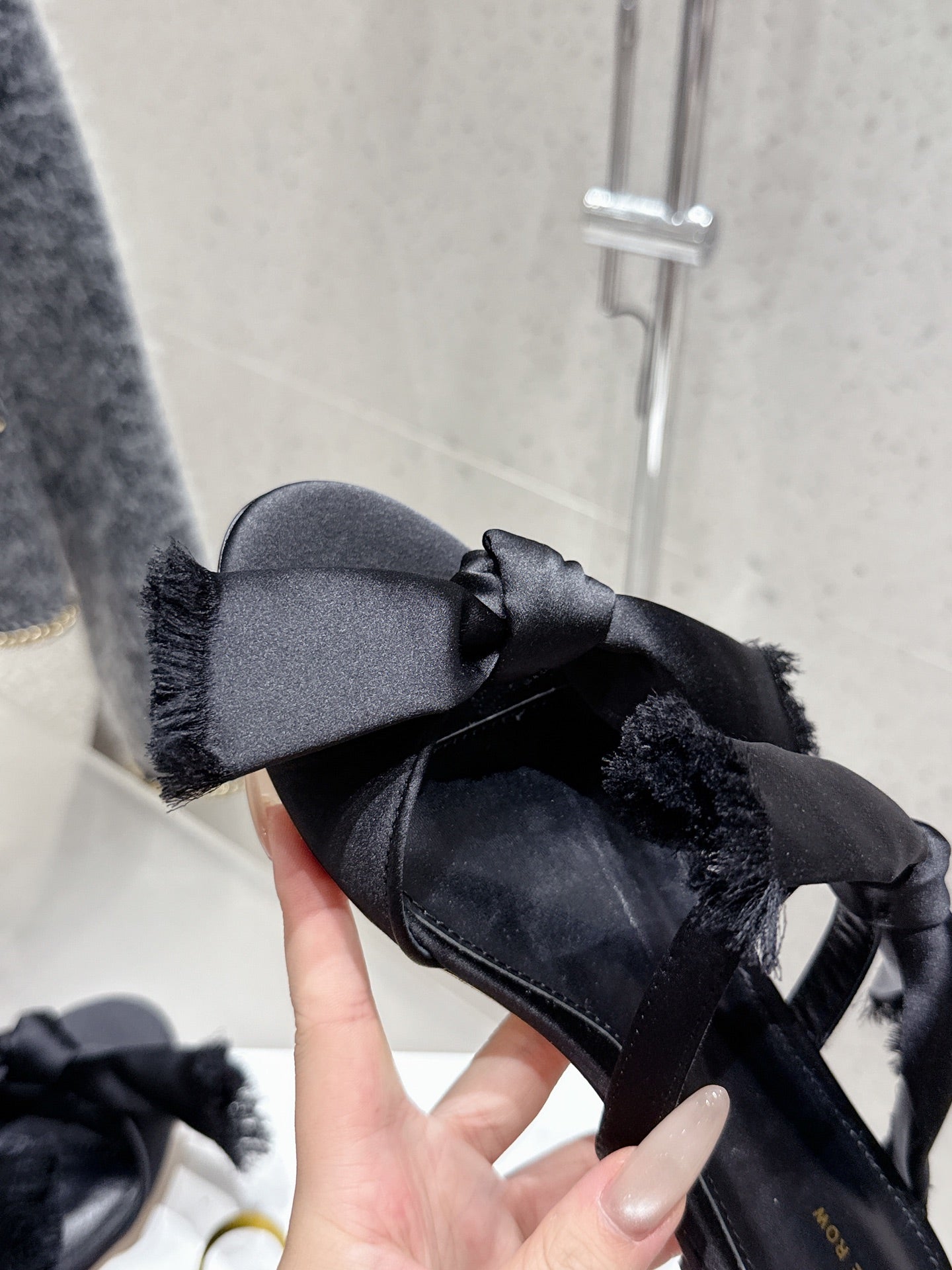 The Row Mule Sandals Black Satin And Sheepskin 338380