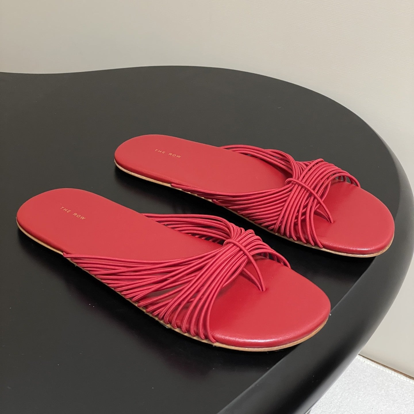 The Row Sara Slide Sandal In Red Elastic And Leather 345203