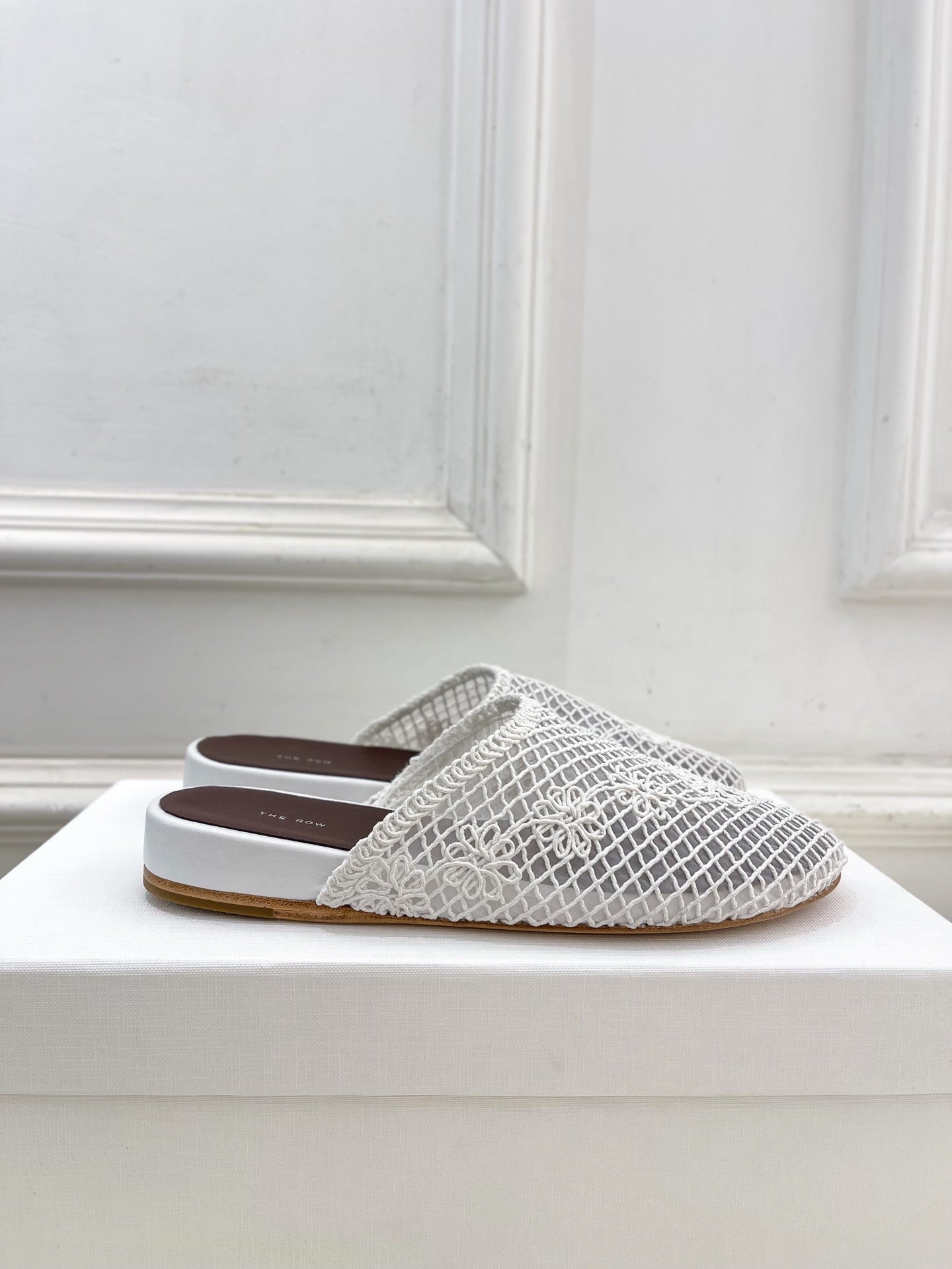 The Row Slide Mules 25mm White Mesh And Sheepskin 325556