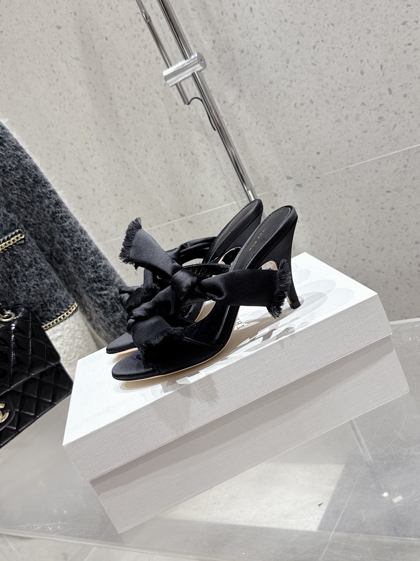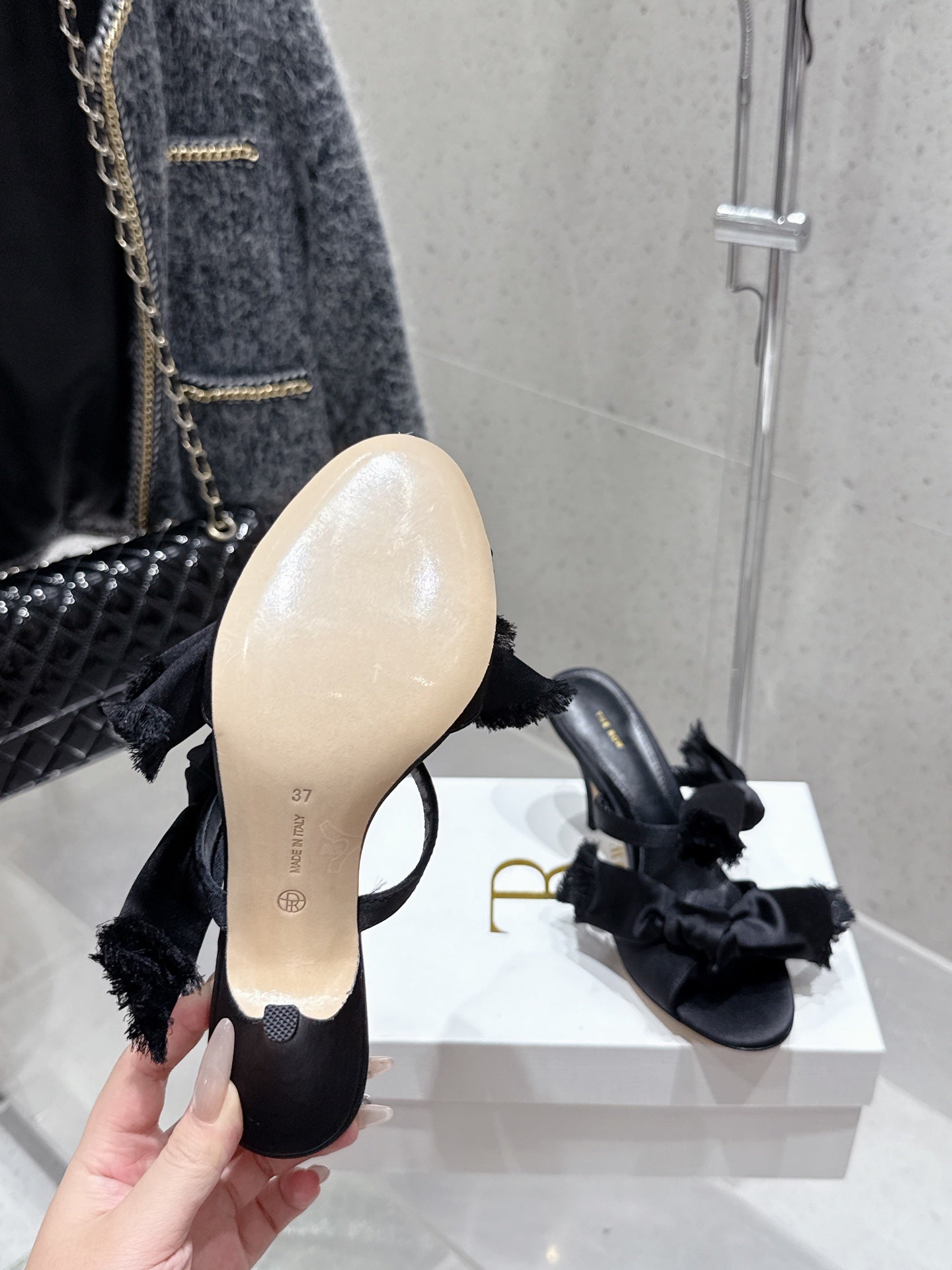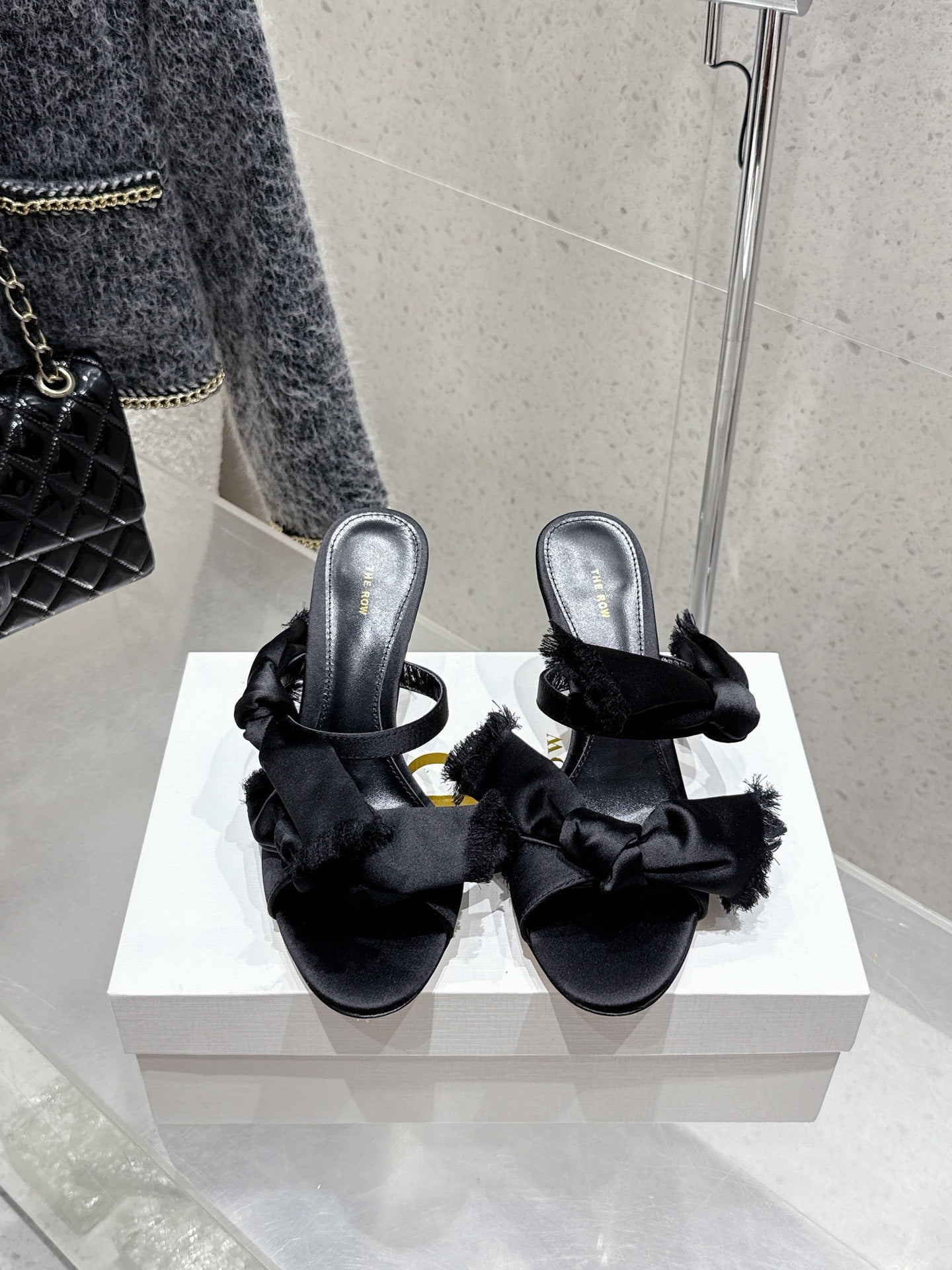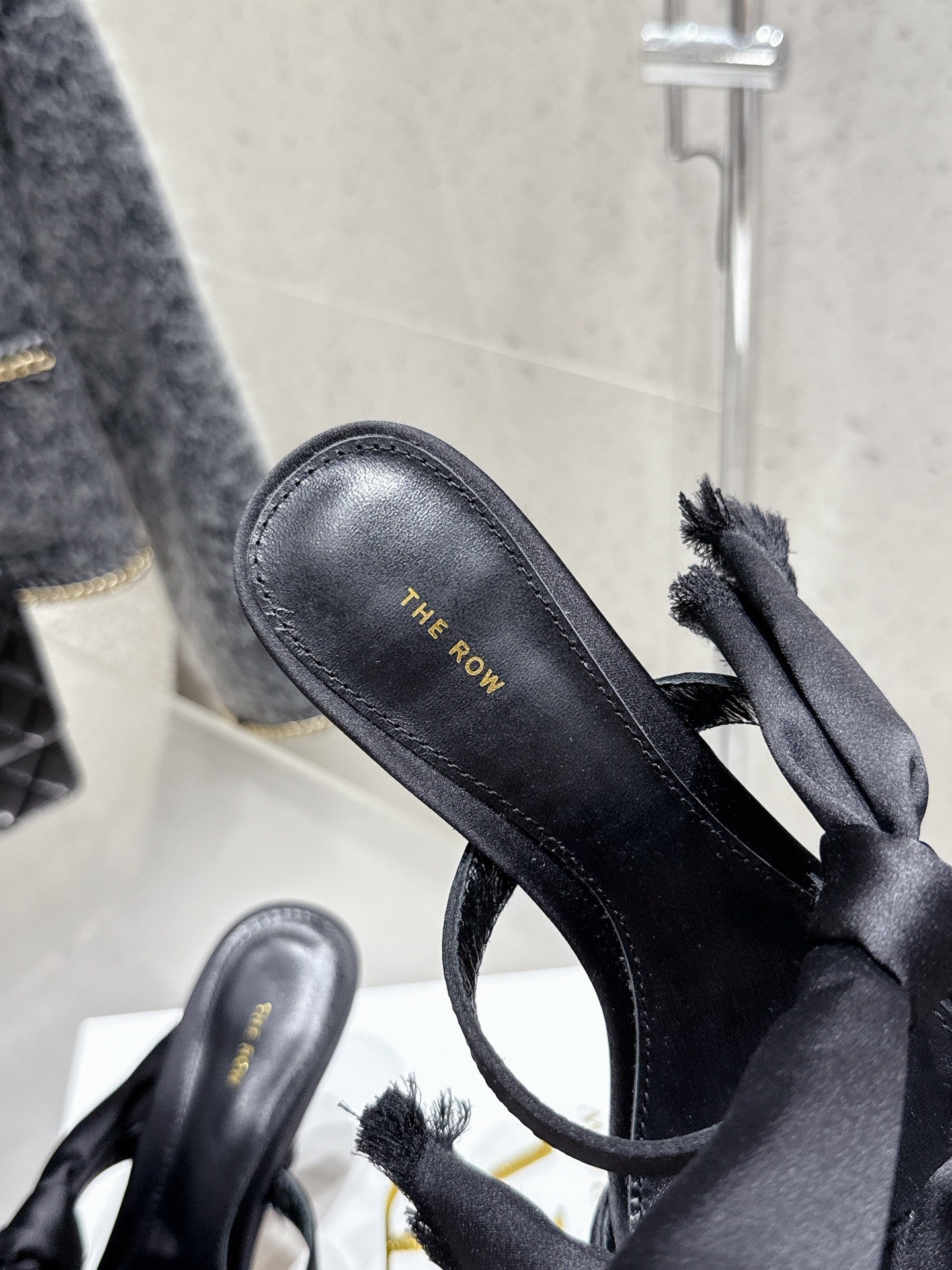 The Row Strap High Heel Mule Sandals 80mm Black Satin And Sheepskin 338378