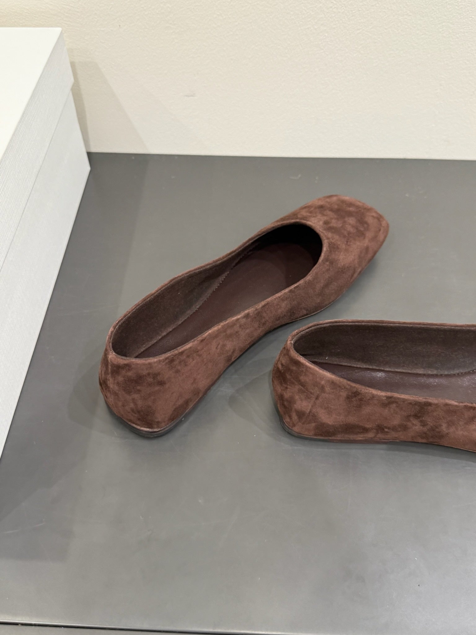 The Row Ballet Flats Dark Brown Cow Suede 337495