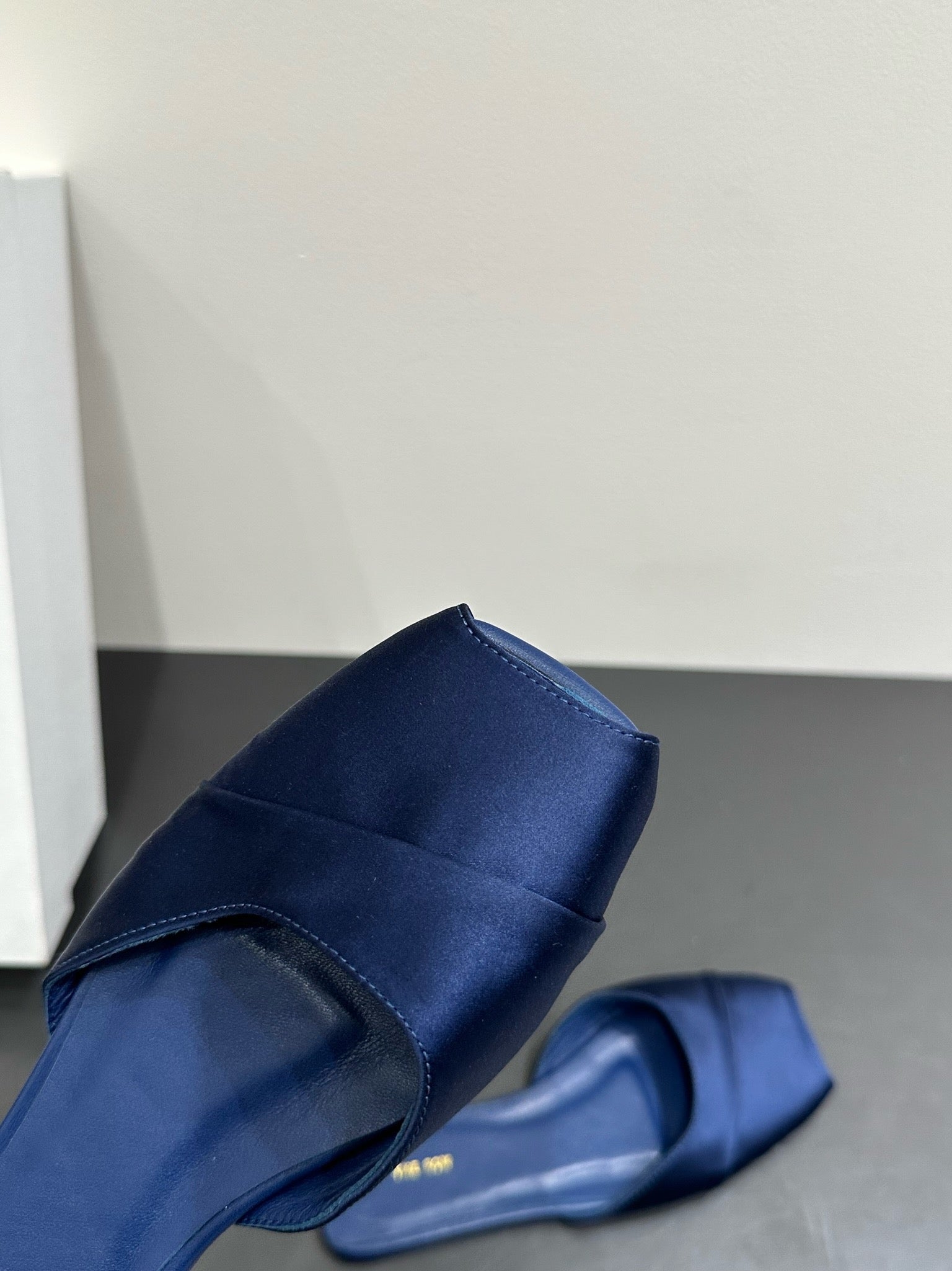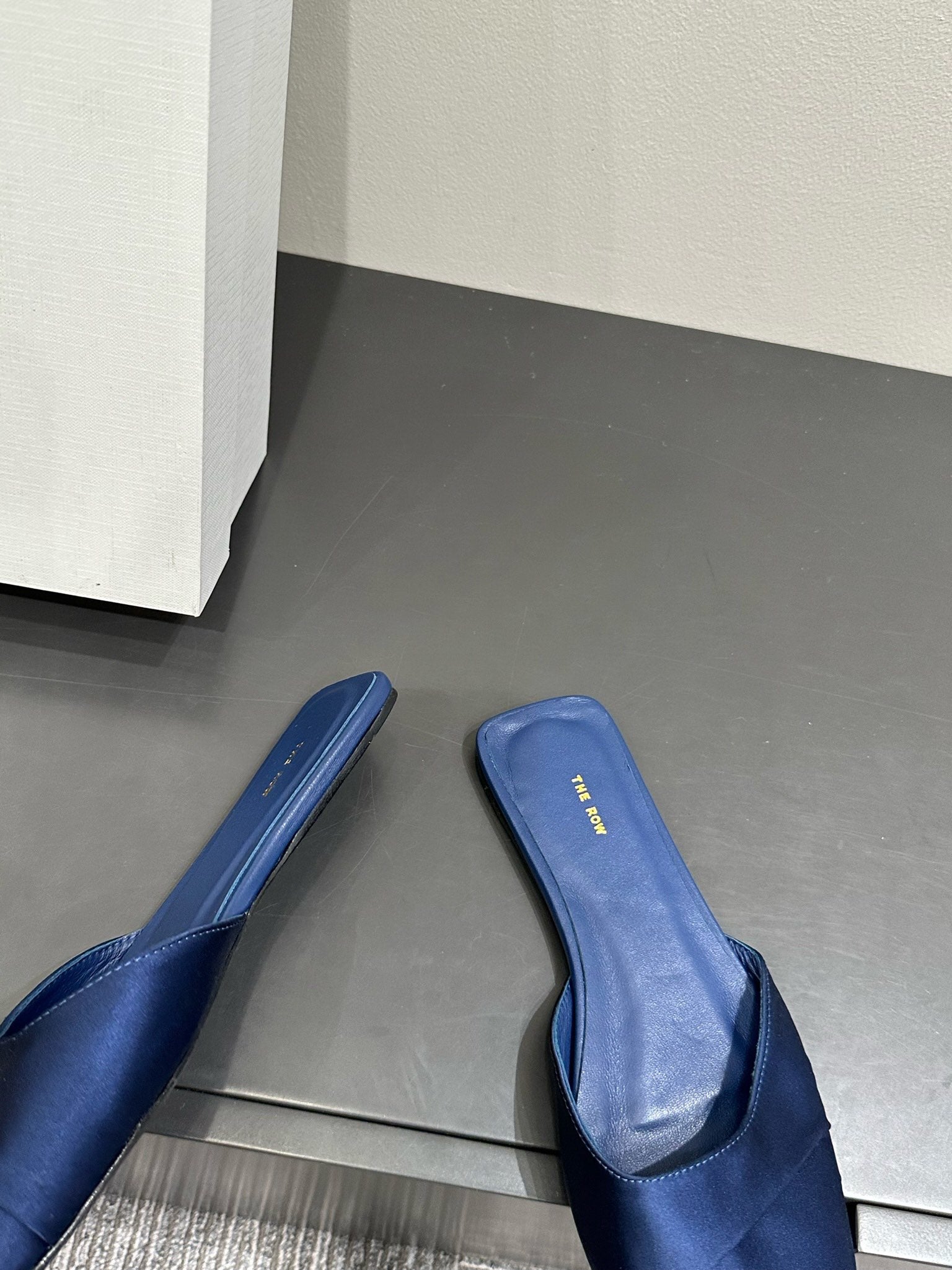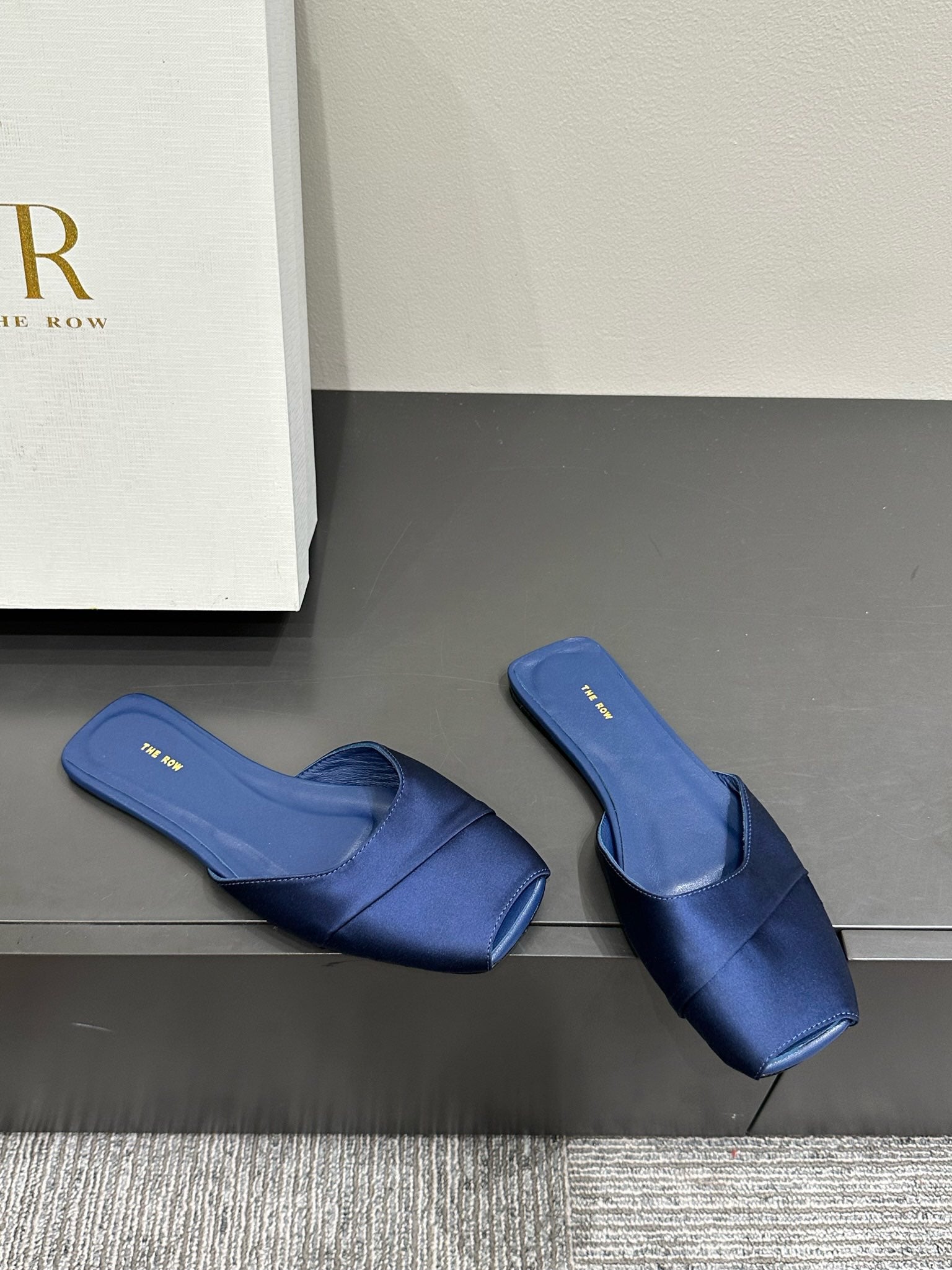 The Row Mule Sandal Navy Blue Satin And Sheepskin Lining 337504