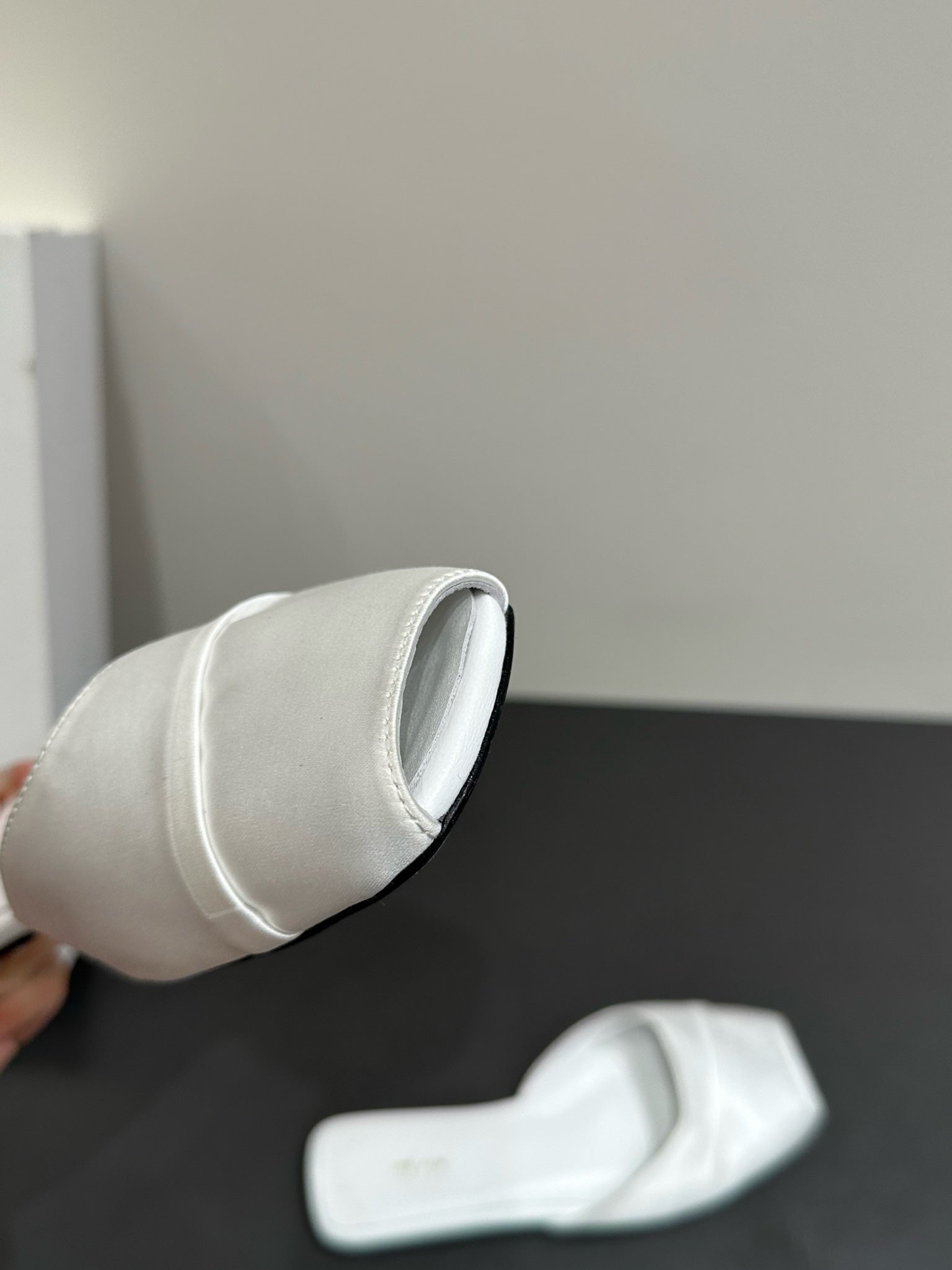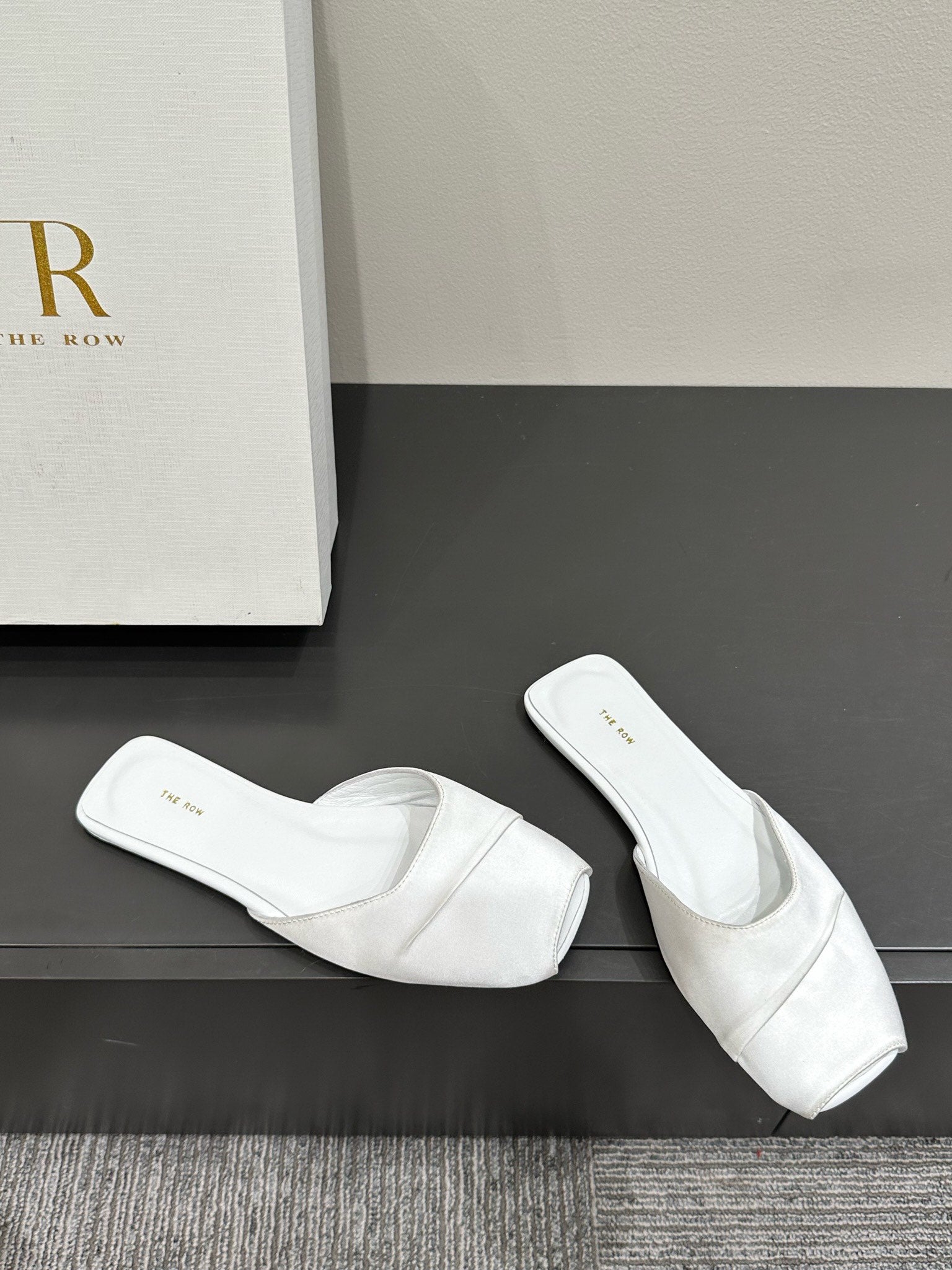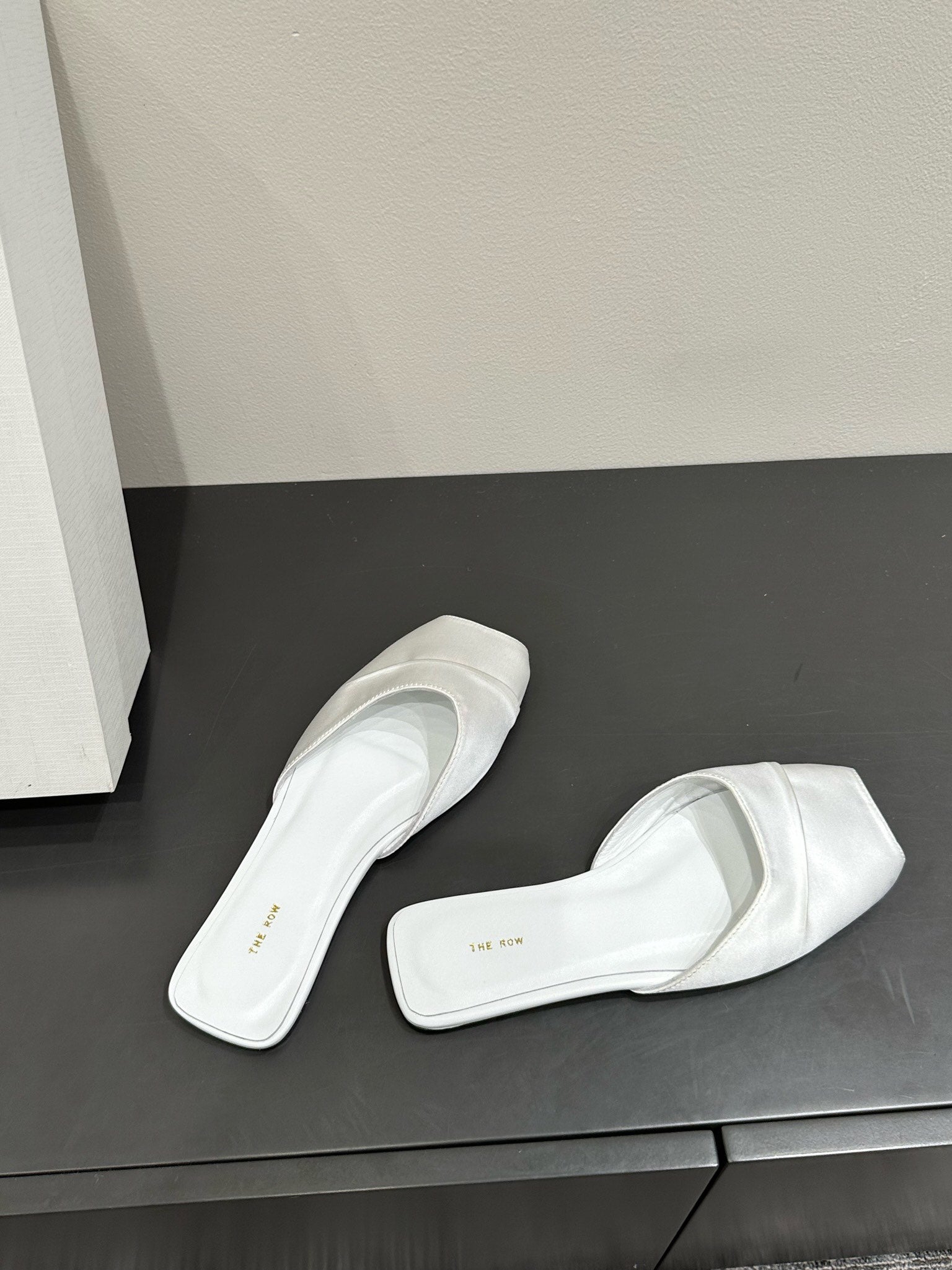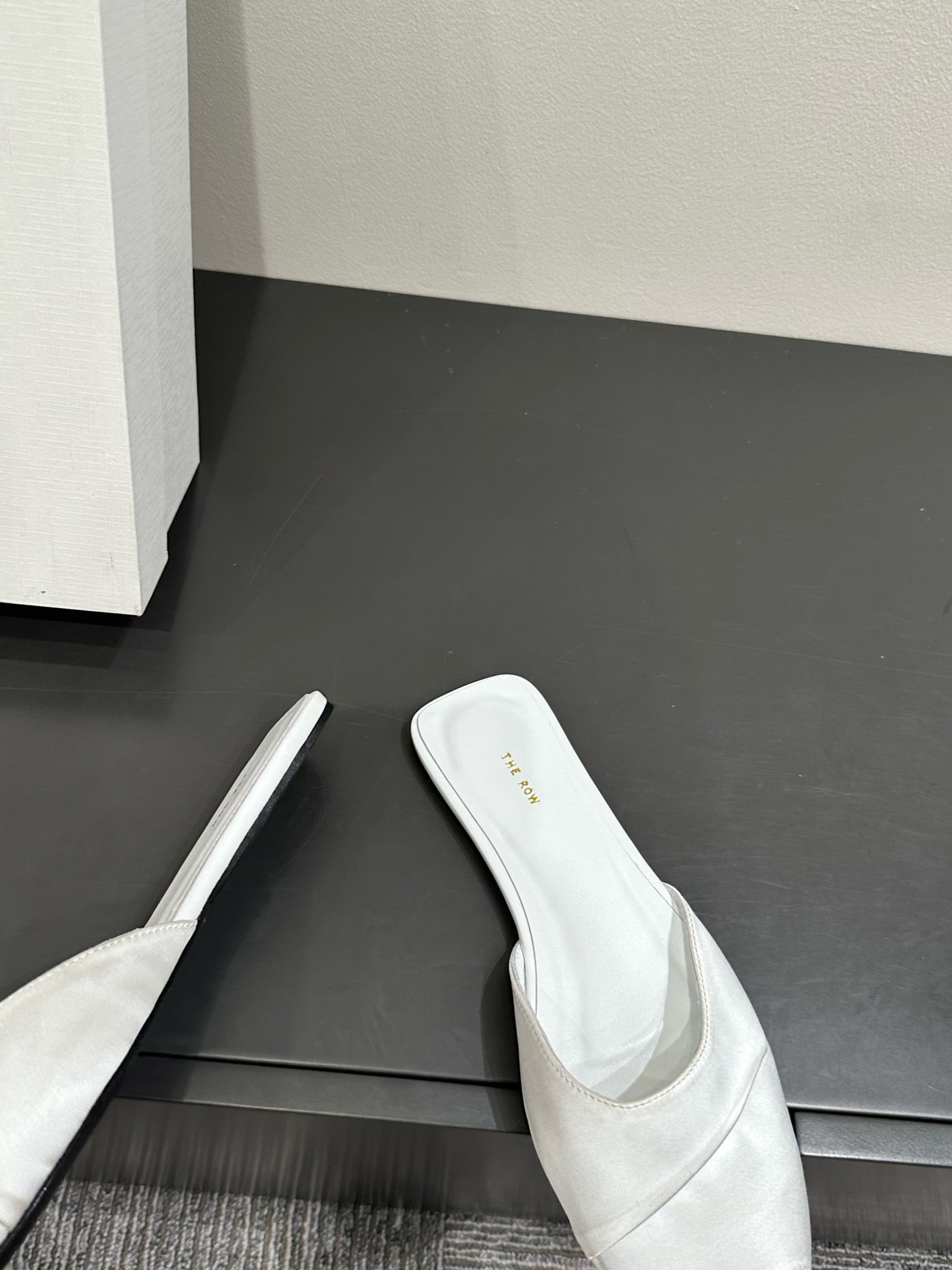 The Row Mule Sandal White Satin And Sheepskin Lining 337505