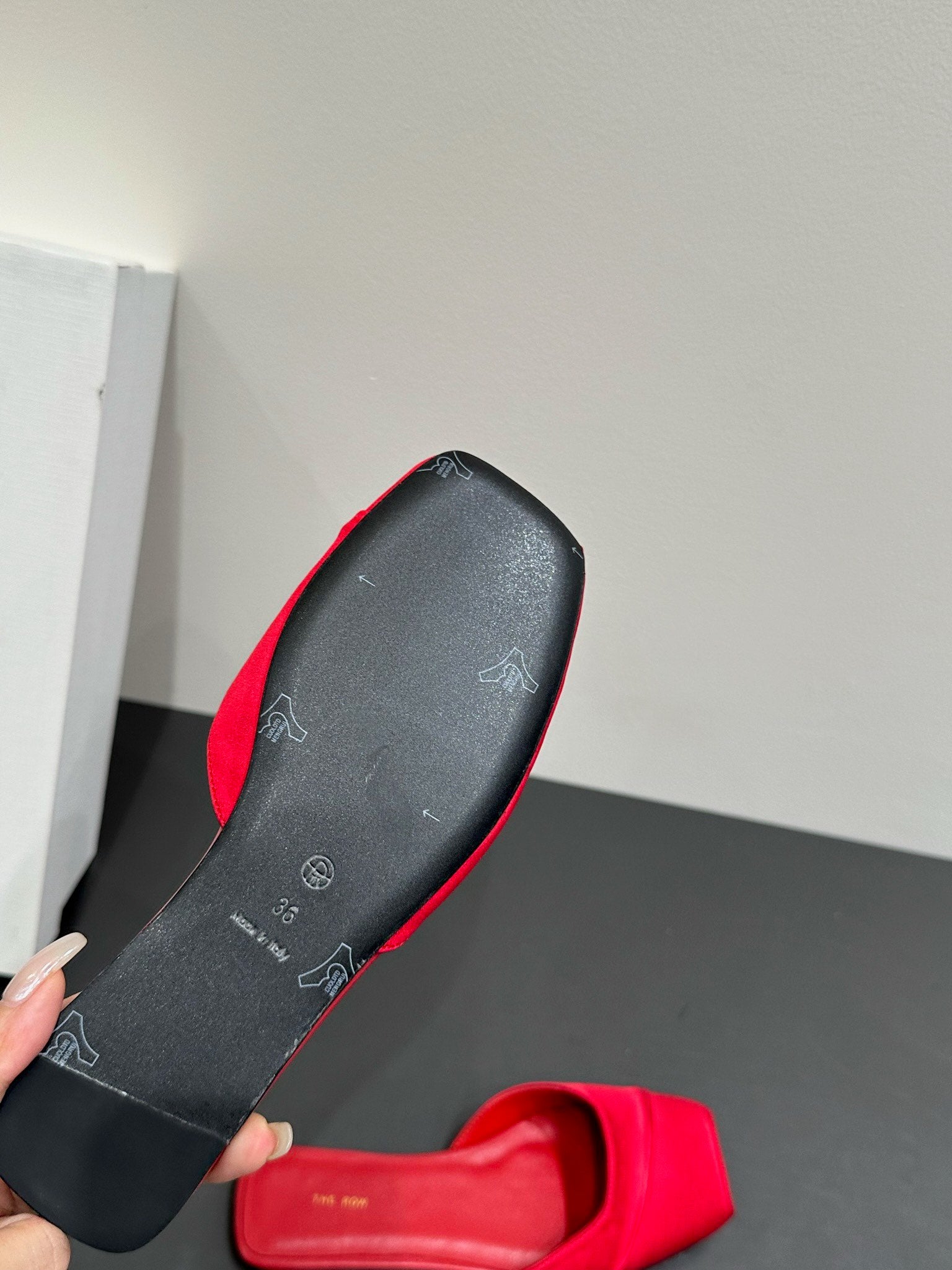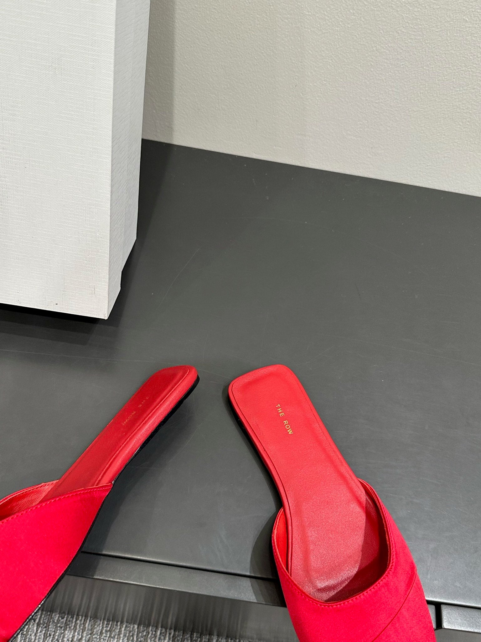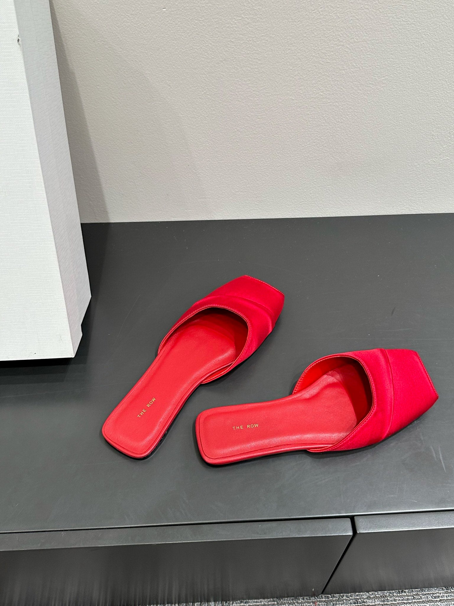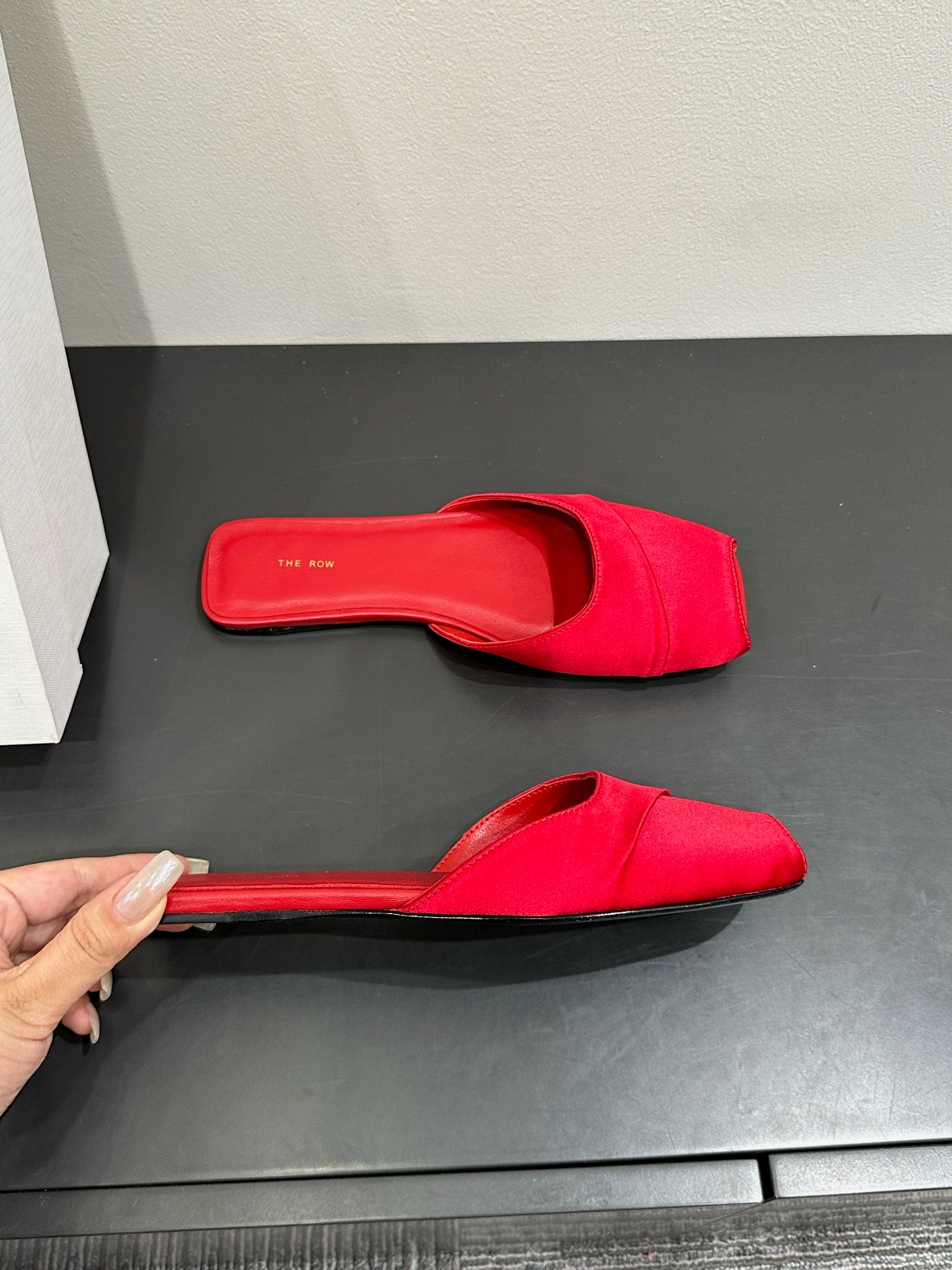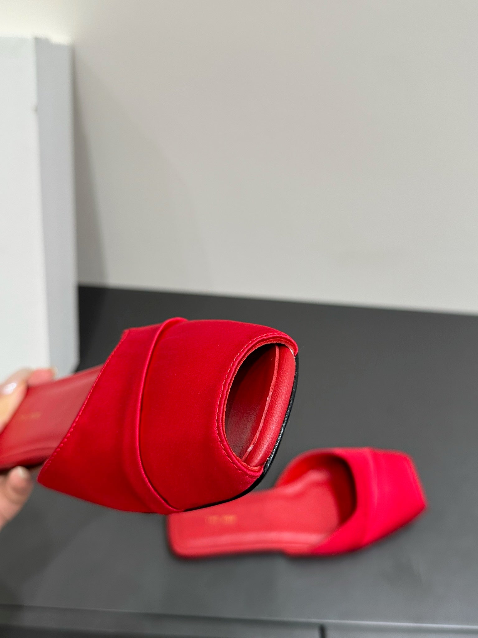 The Row Mule Sandal Red Satin And Sheepskin Lining 337506