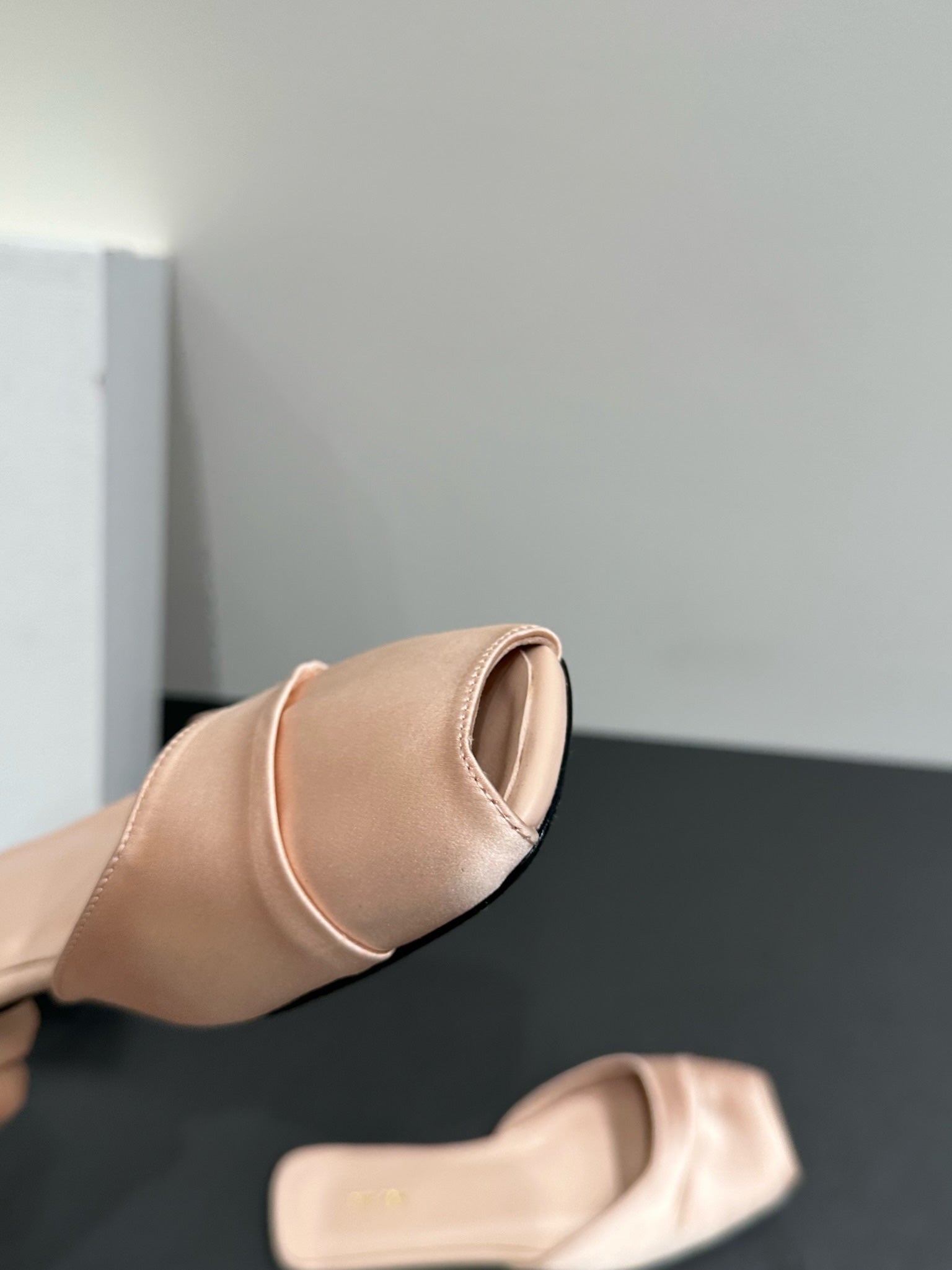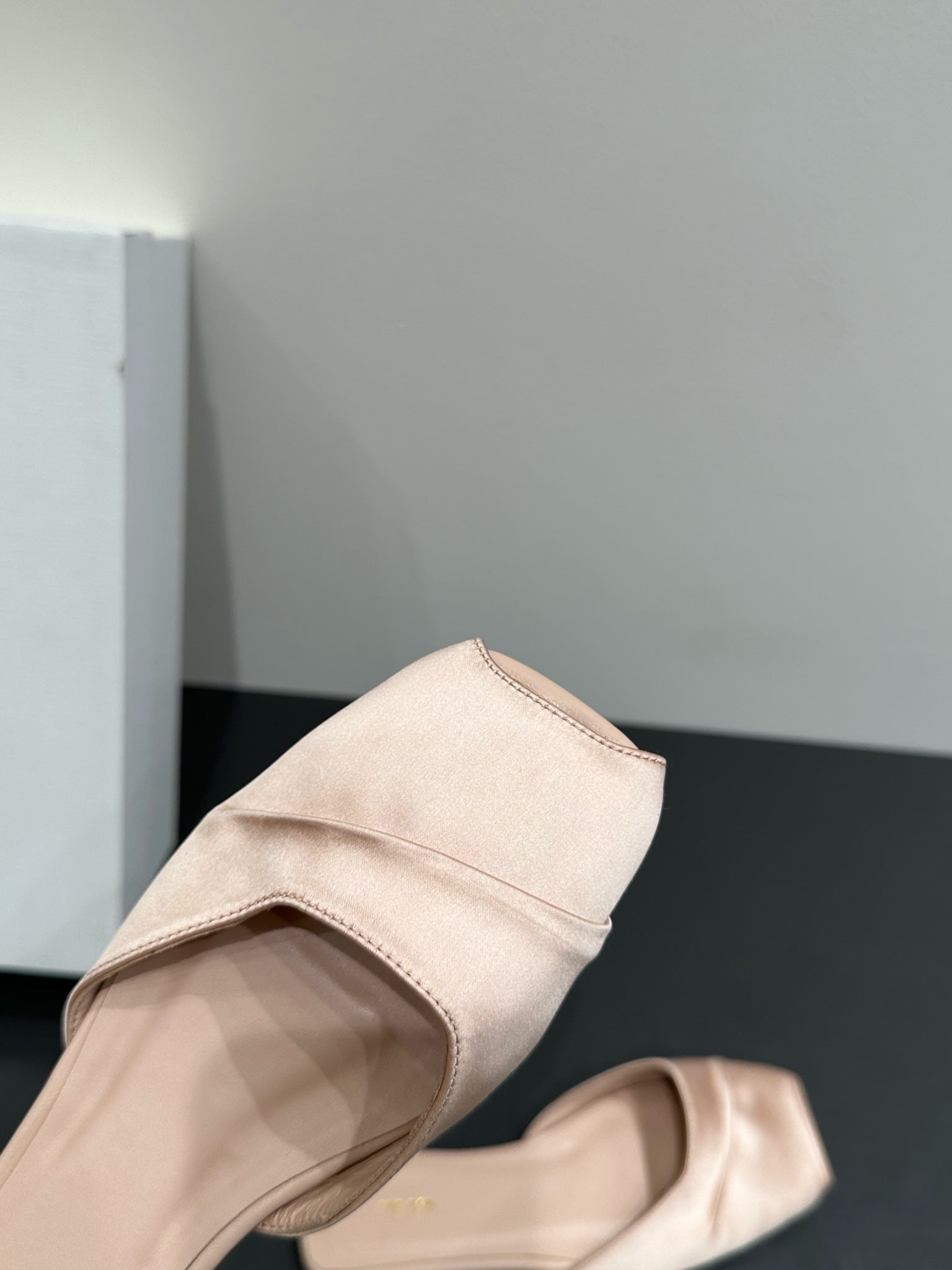 The Row Strap High Heel Mule Sandals 80mm Black Satin And Sheepskin 338378