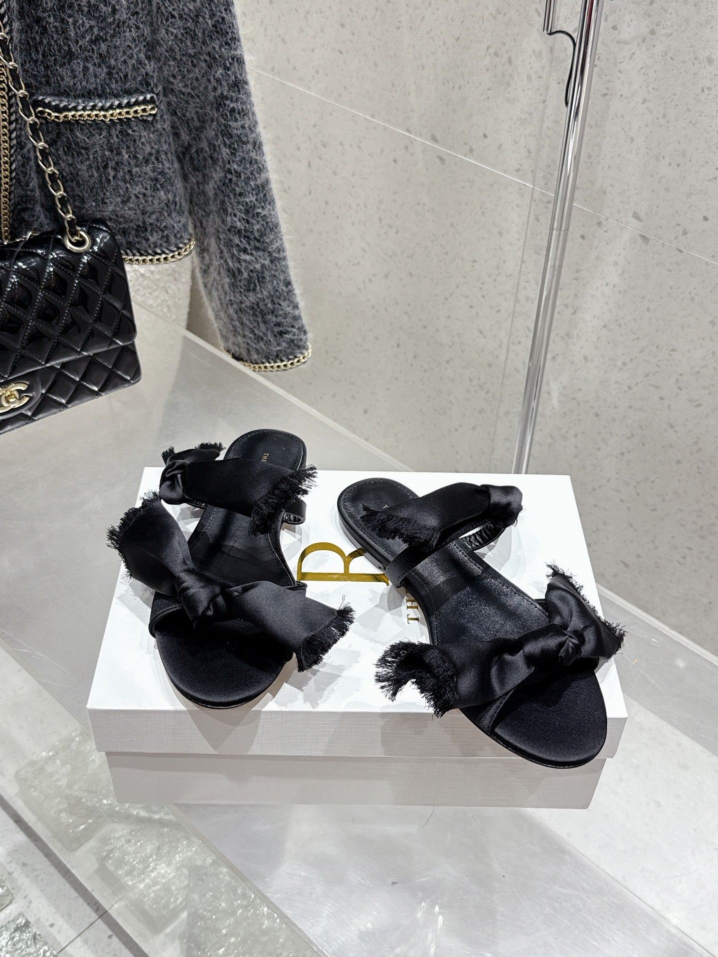 The Row Mule Sandals Black Satin And Sheepskin 338380