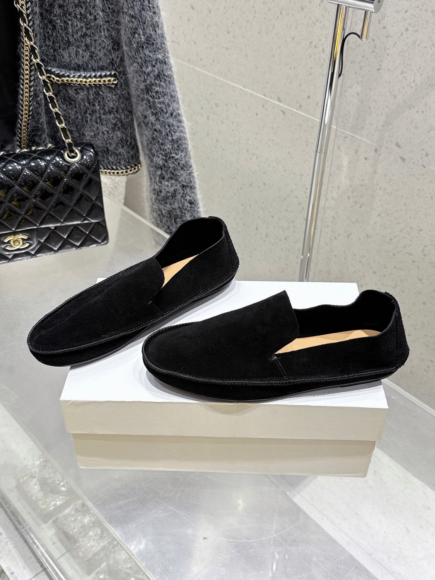 The Row Diana Loafer Light Grey Suede Calfskin 339997