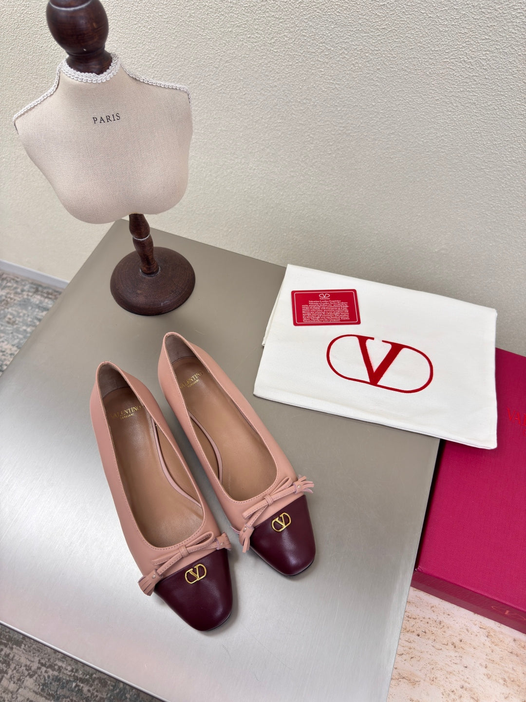 VLTN CLASSIC BALLET FLATS 25S IN LIGHT BEIGE CALFSKIN WITH BOW
