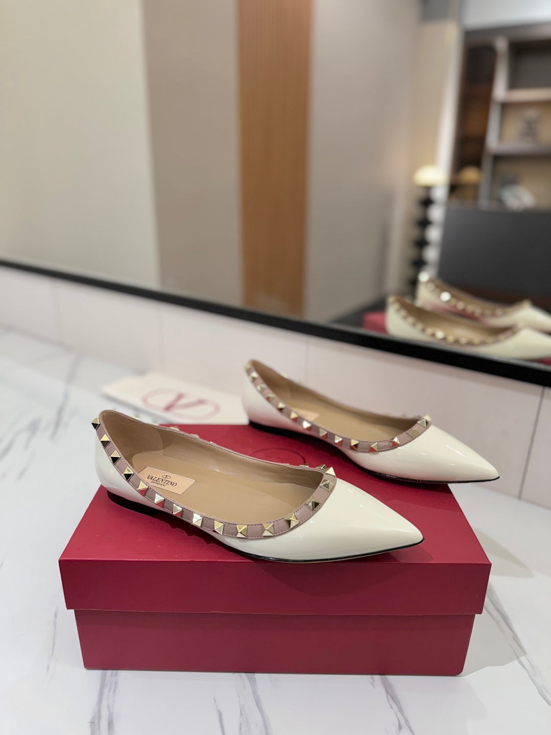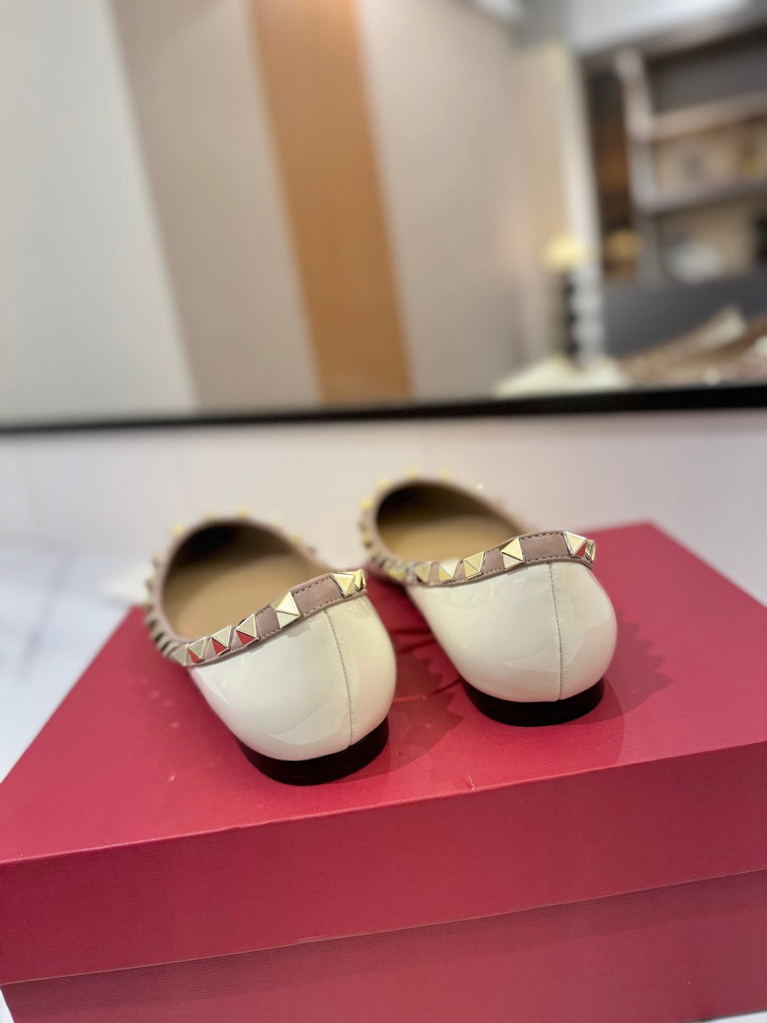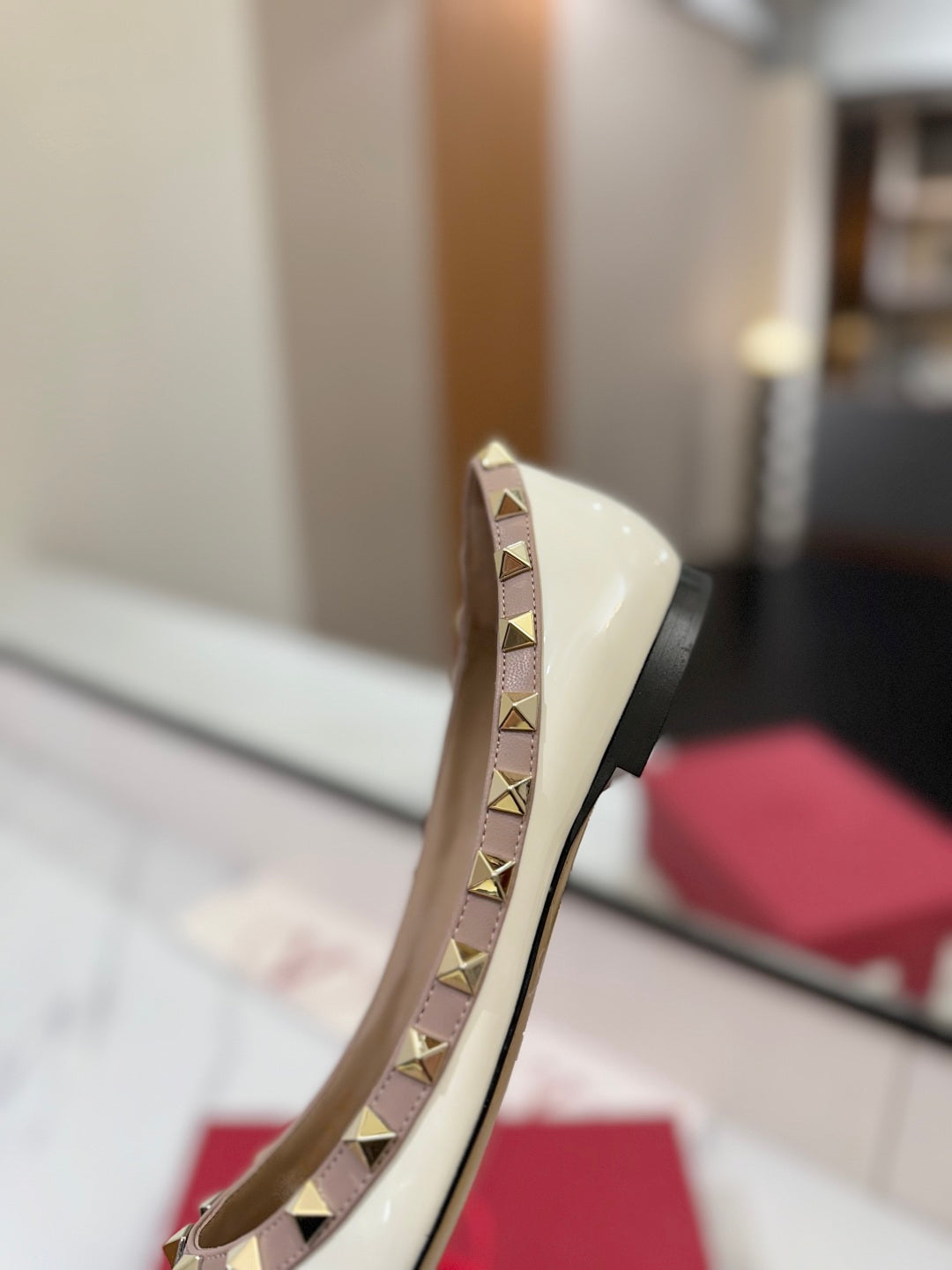 ROCKSTUD PATENT LEATHER BALLERINA IN WHITE SILK