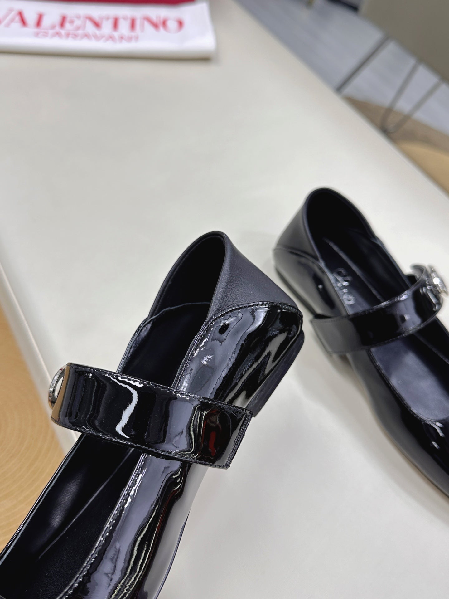 VT 26s Mary Jane Ballet Flats Black Burgundy Lambskin 611366