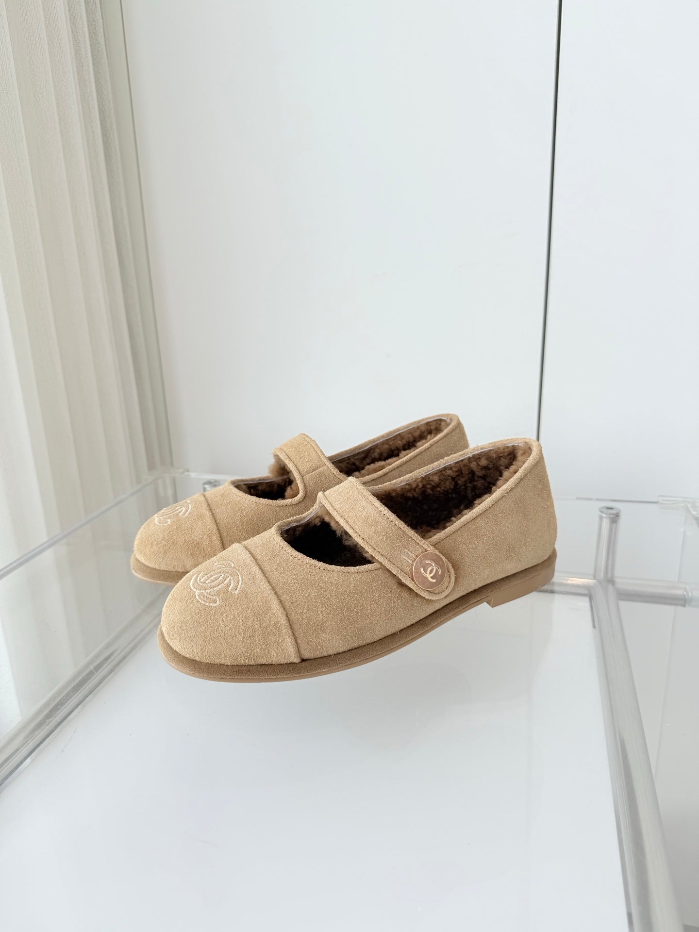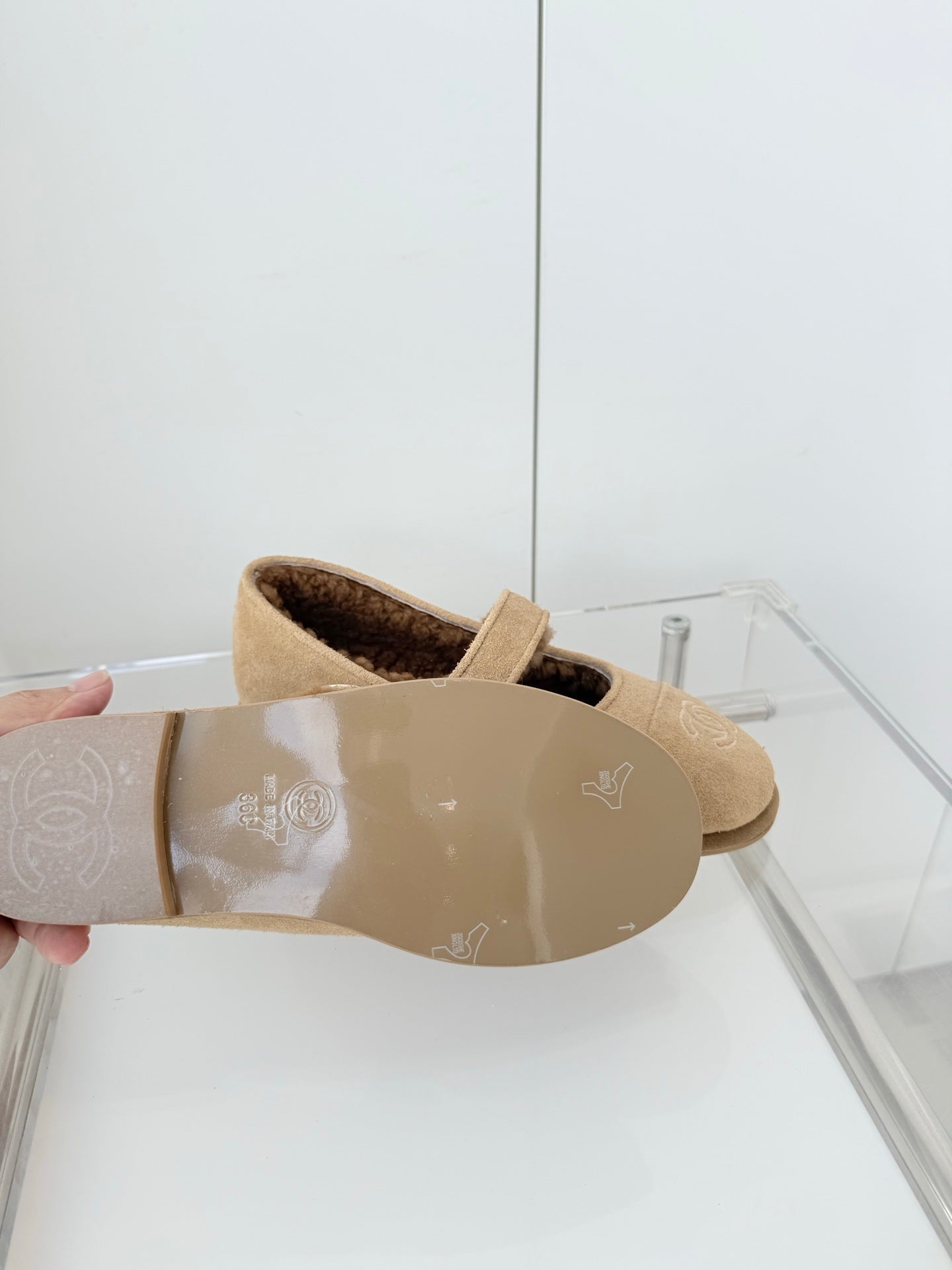 VT 26s Mary Jane Ballet Flats Beige Burgundy Lambskin 611368