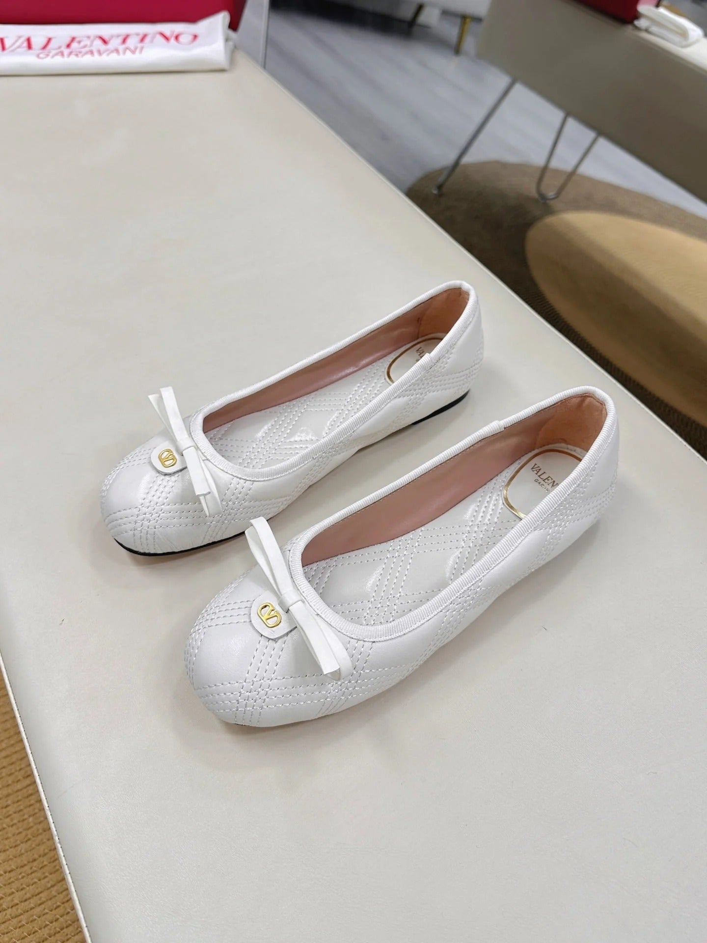VLTN CLASSIC BALLET FLATS 25S IN WHITE CALFSKIN WITH BOW
