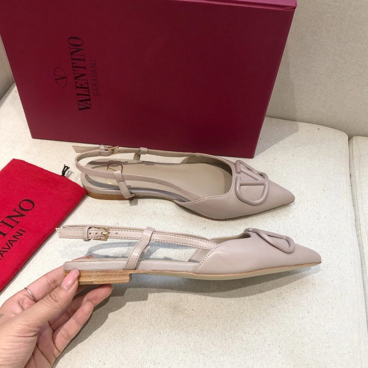 VLOGO SIGNATURE LIGHT PINK CALFSKIN FLAT SLINGBACK PUMP