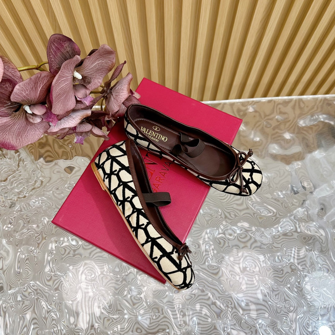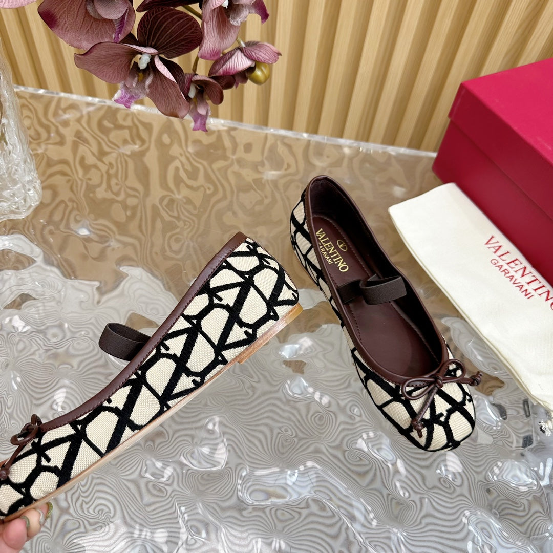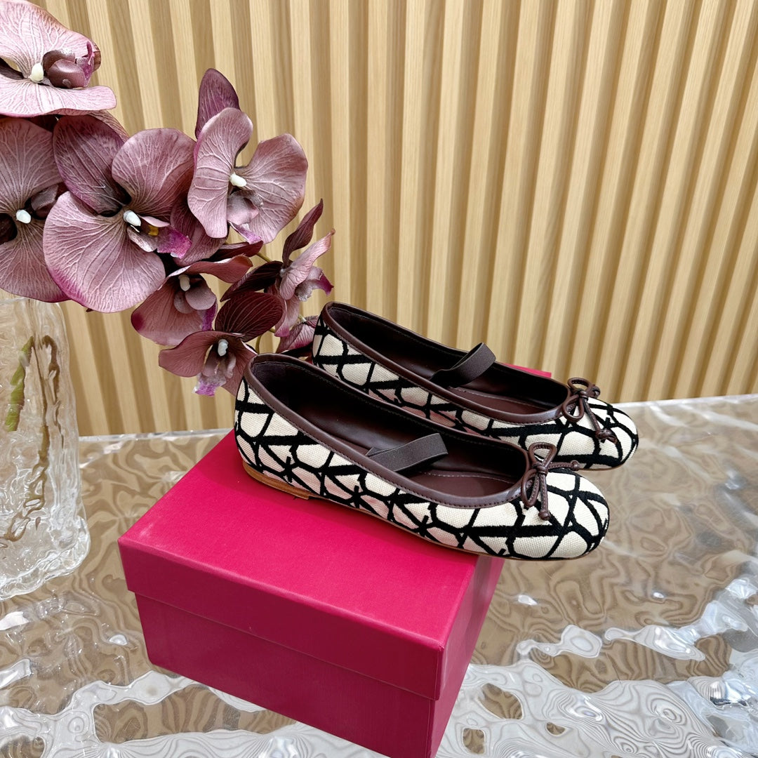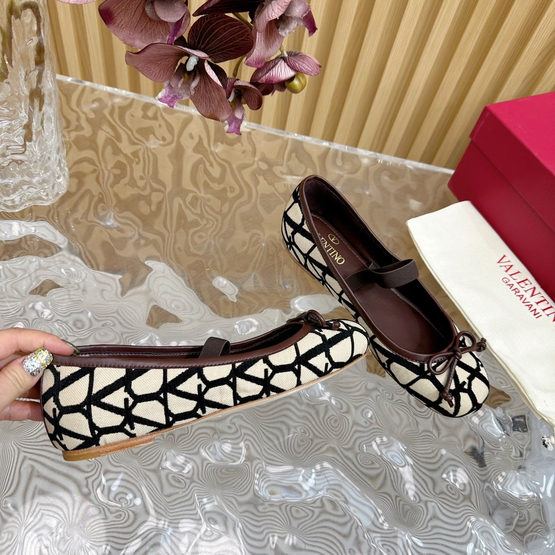Ballerina In Toile Iconographe 20mm In Beige Mix Black Cotton Canvas And Lambskin 102834