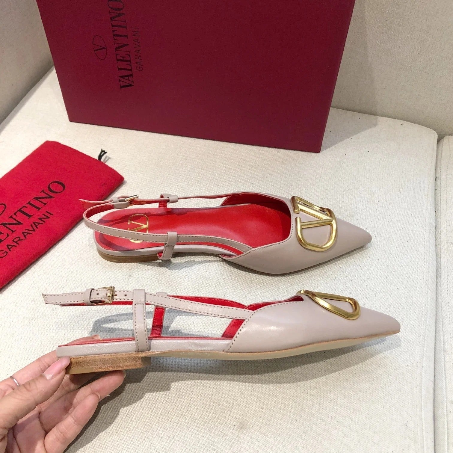 VLOGO SIGNATURE CREPE PINK CALFSKIN FLAT SLINGBACK PUMP