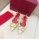 VLOGO SIGNATURE WHITE CALFSKIN FLAT SLINGBACK PUMP WITH GOLD LOGO