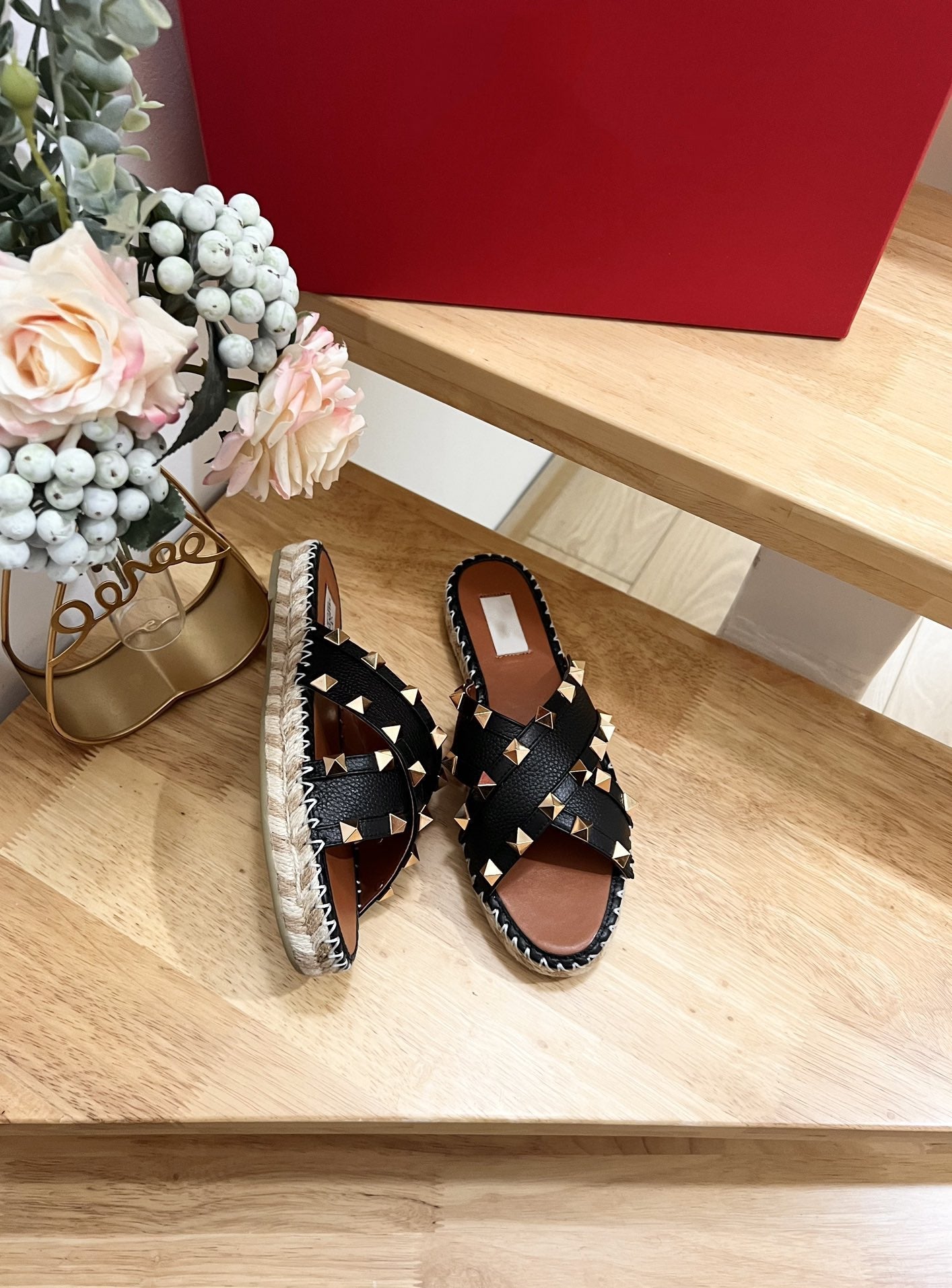 Rockstud Crisscross Espadrilles 20mm Sandal Wedges Black Tan