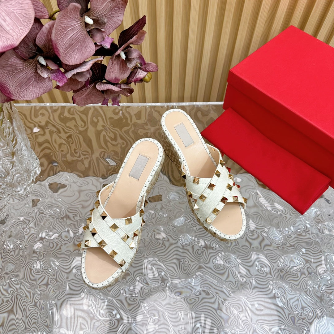 Rockstud Crisscross Espadrilles 80mm Sandal Wedges White