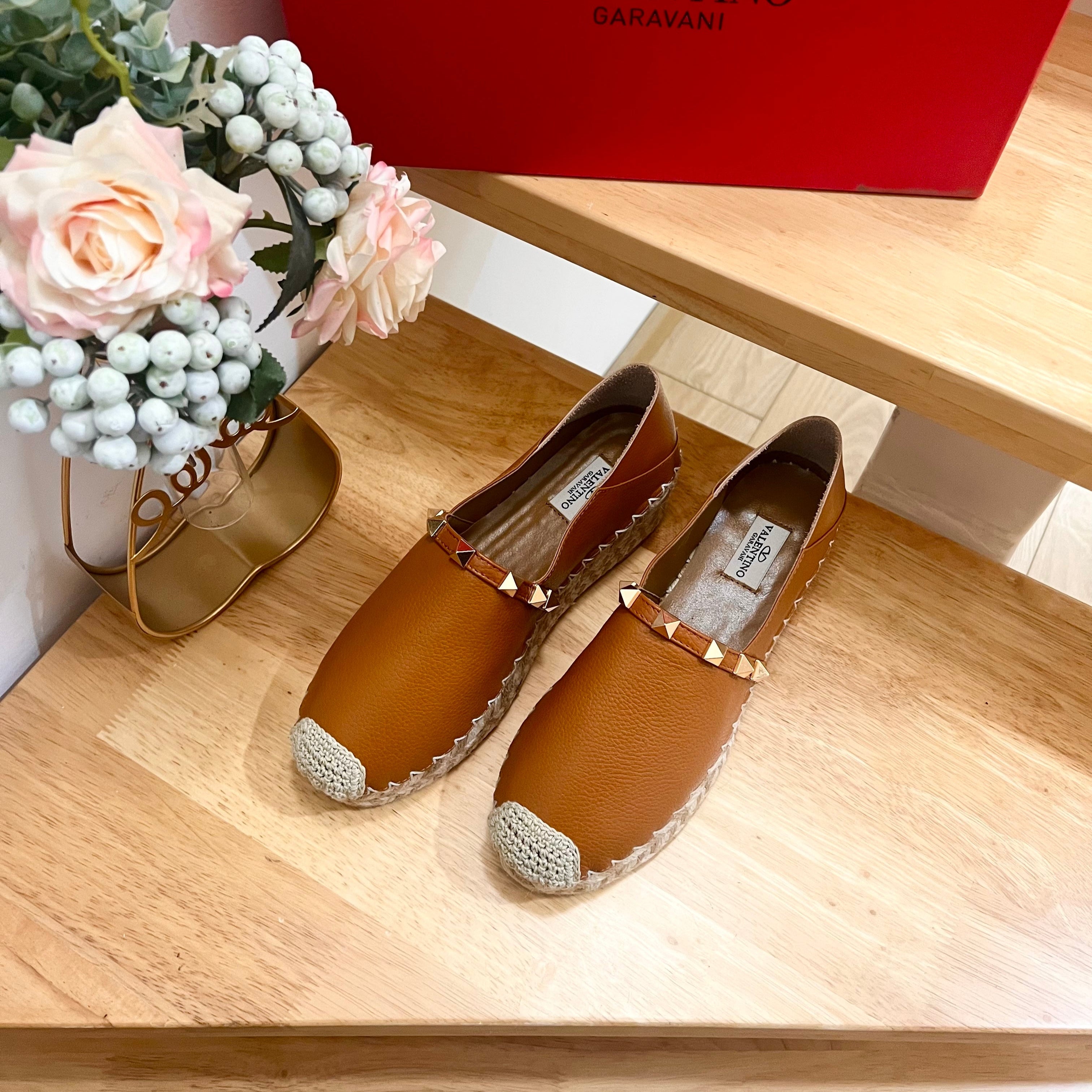 Valentino Rockstud Embellished Slip On Espadrille BRown Cowhide 240573