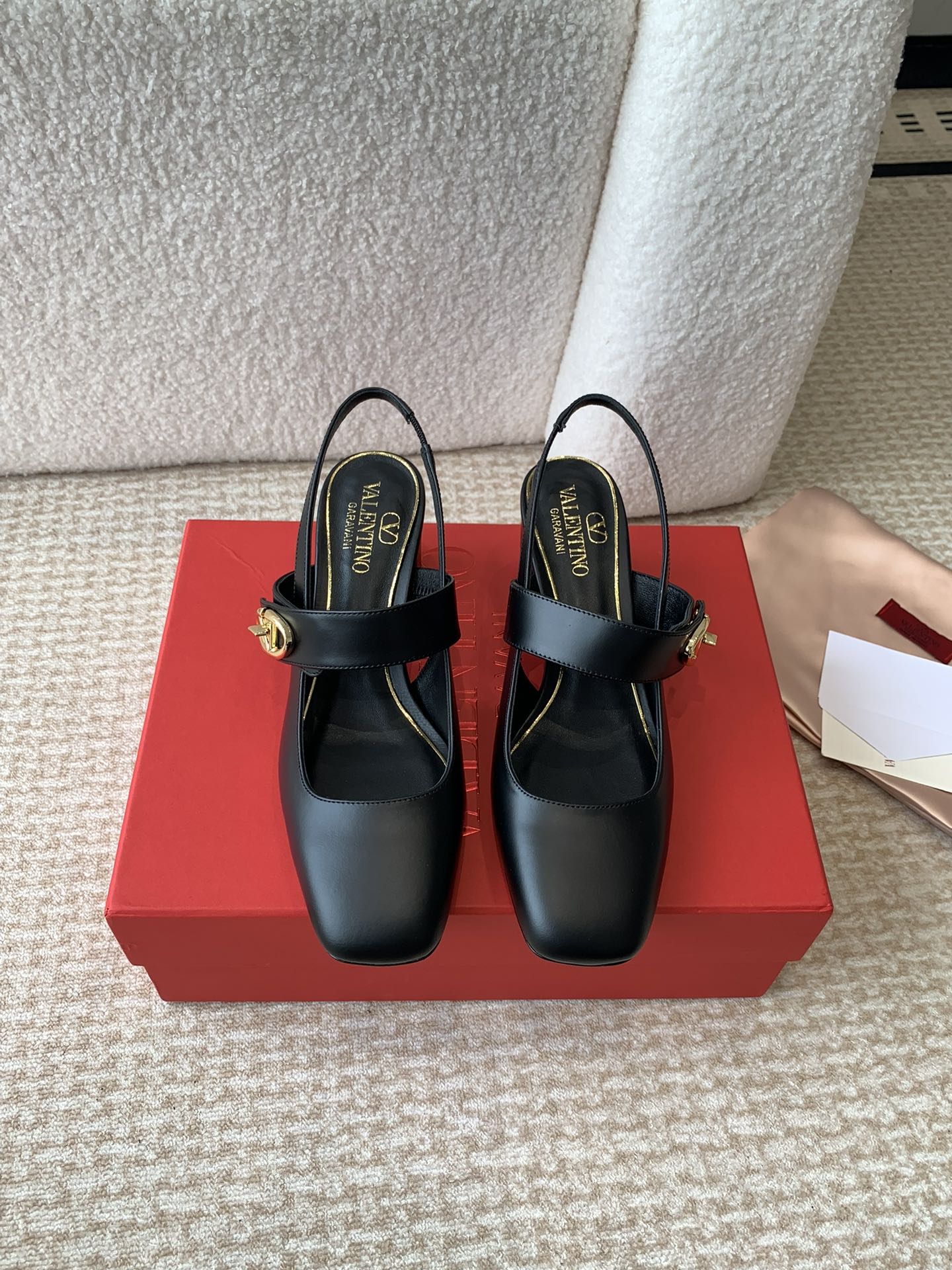 MARY-JANE VLOGO LOCKER SLINGBACK PUMPS BLACK SHEEPSKIN 60 MM