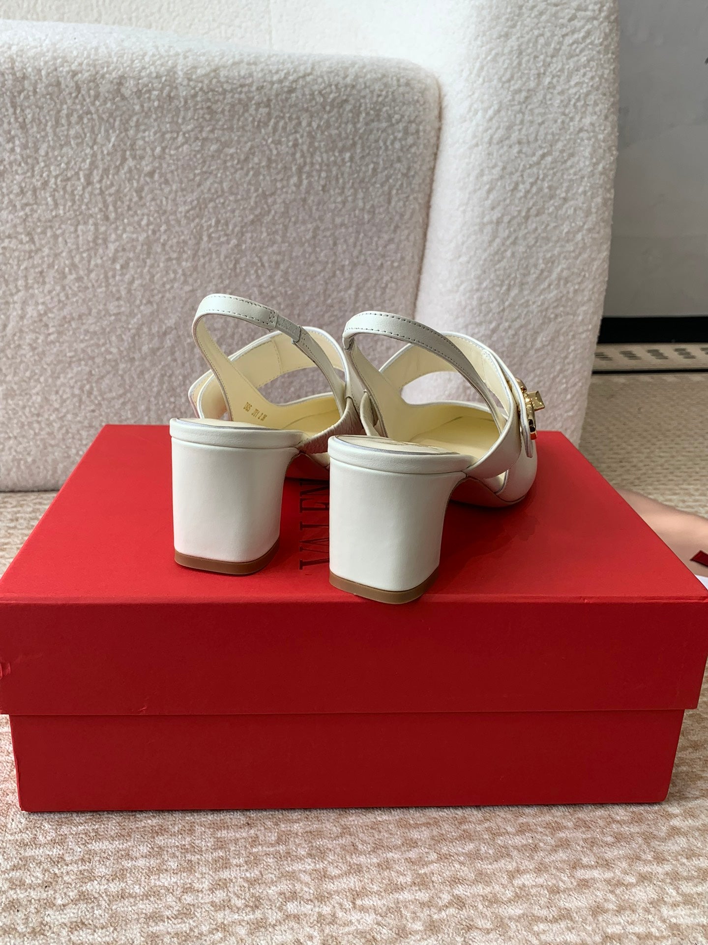 MARY-JANE VLOGO LOCKER SLINGBACK PUMPS WHITE SHEEPSKIN 60 MM