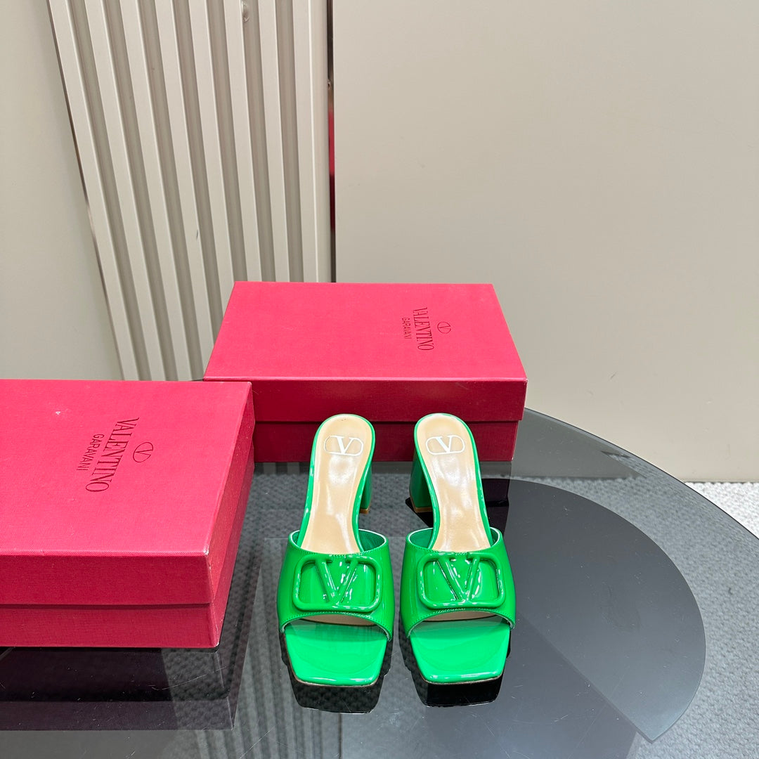 Vogo Signature High Shine Open Toe Sandals In Green Glossy Lambskin 839833