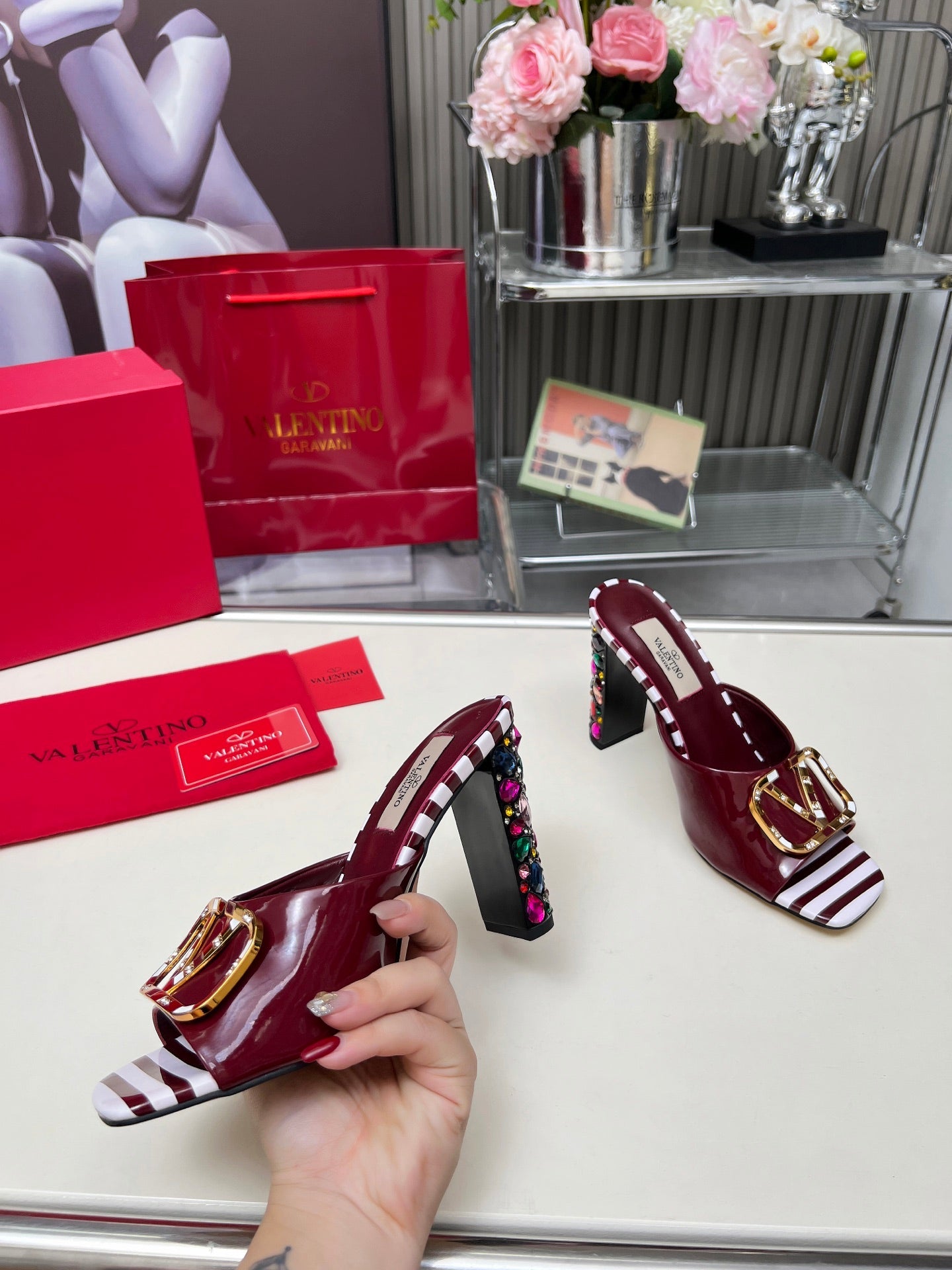 VT Vlogo High-Heeled Sandals 10.5cm Wine Red Leather 625760