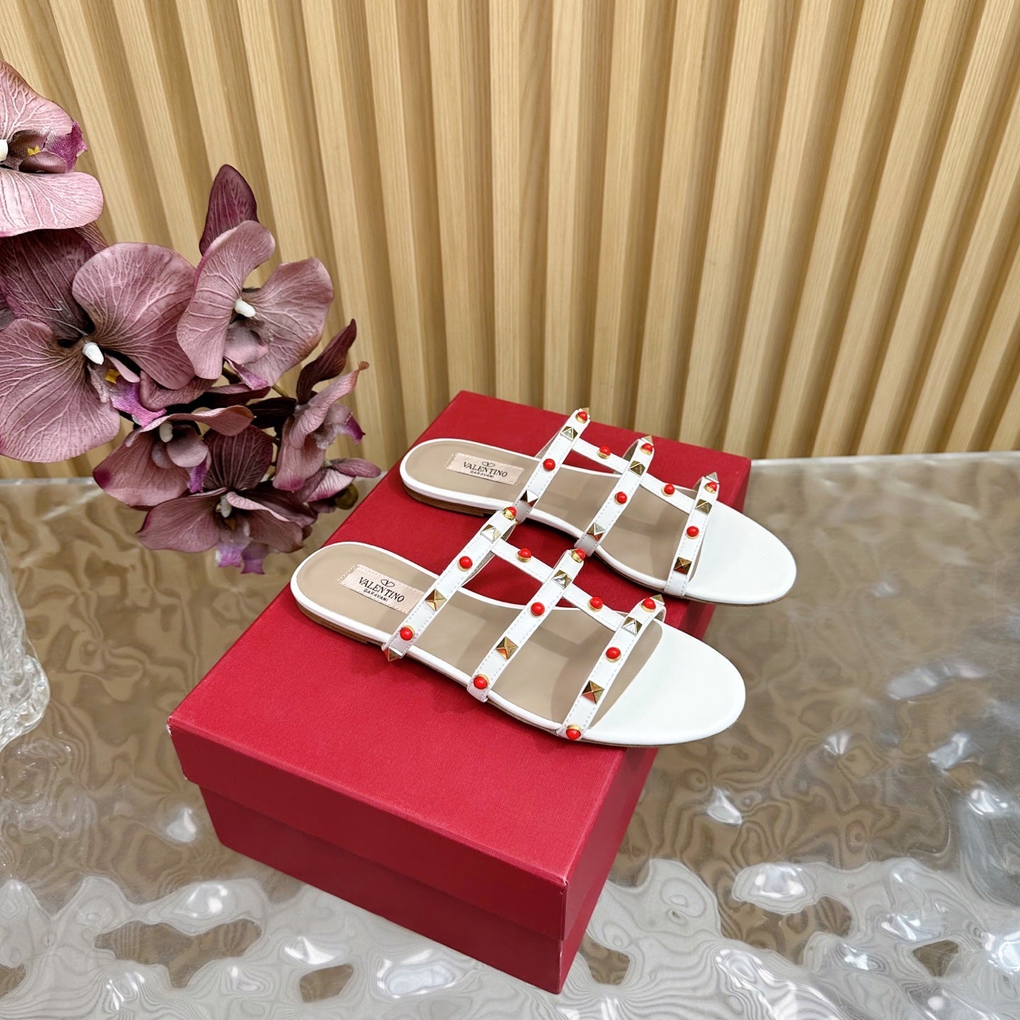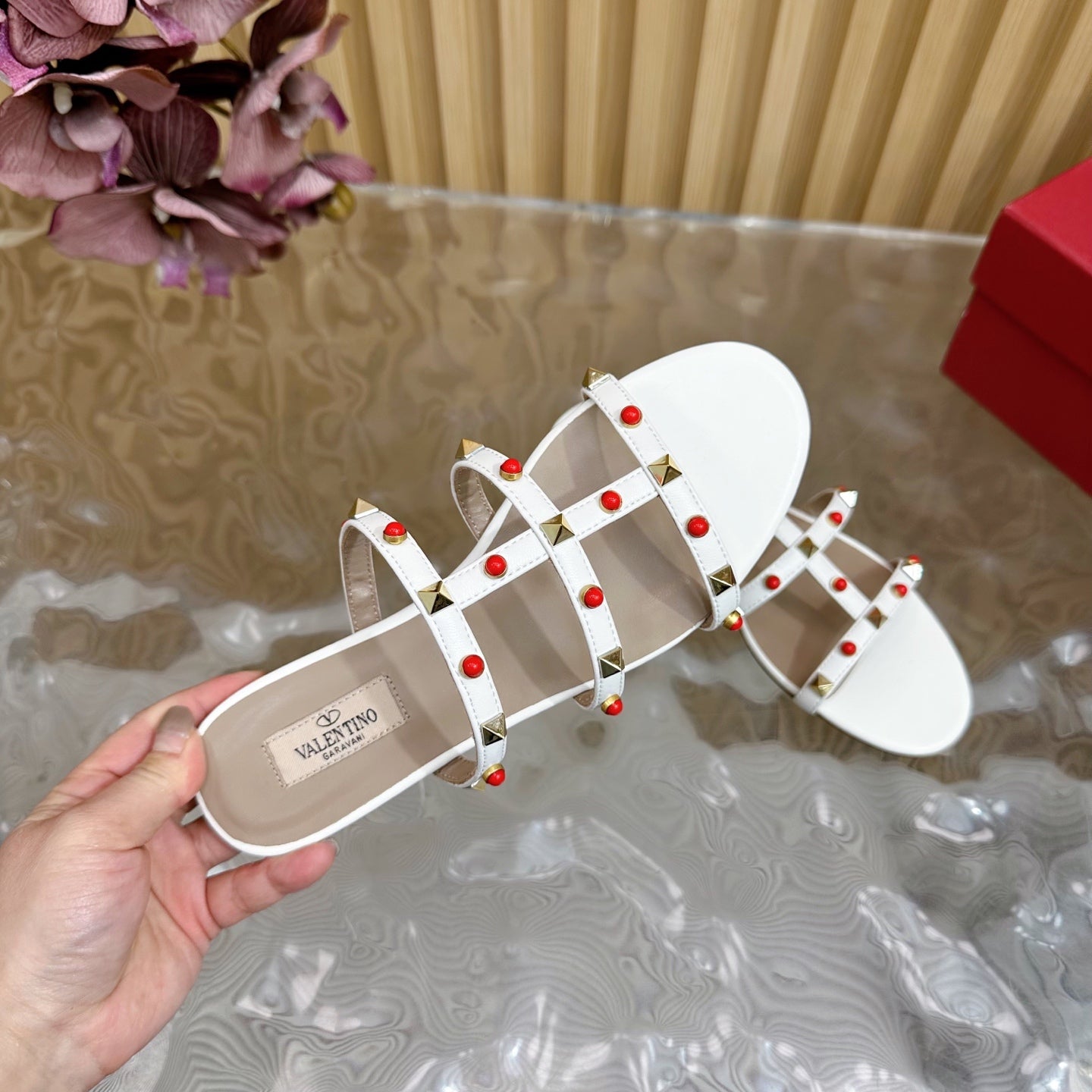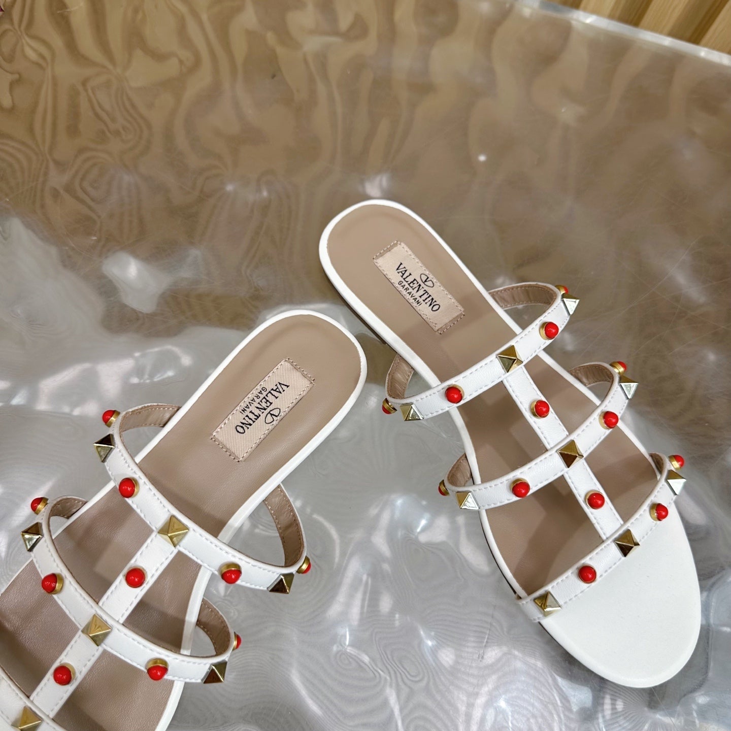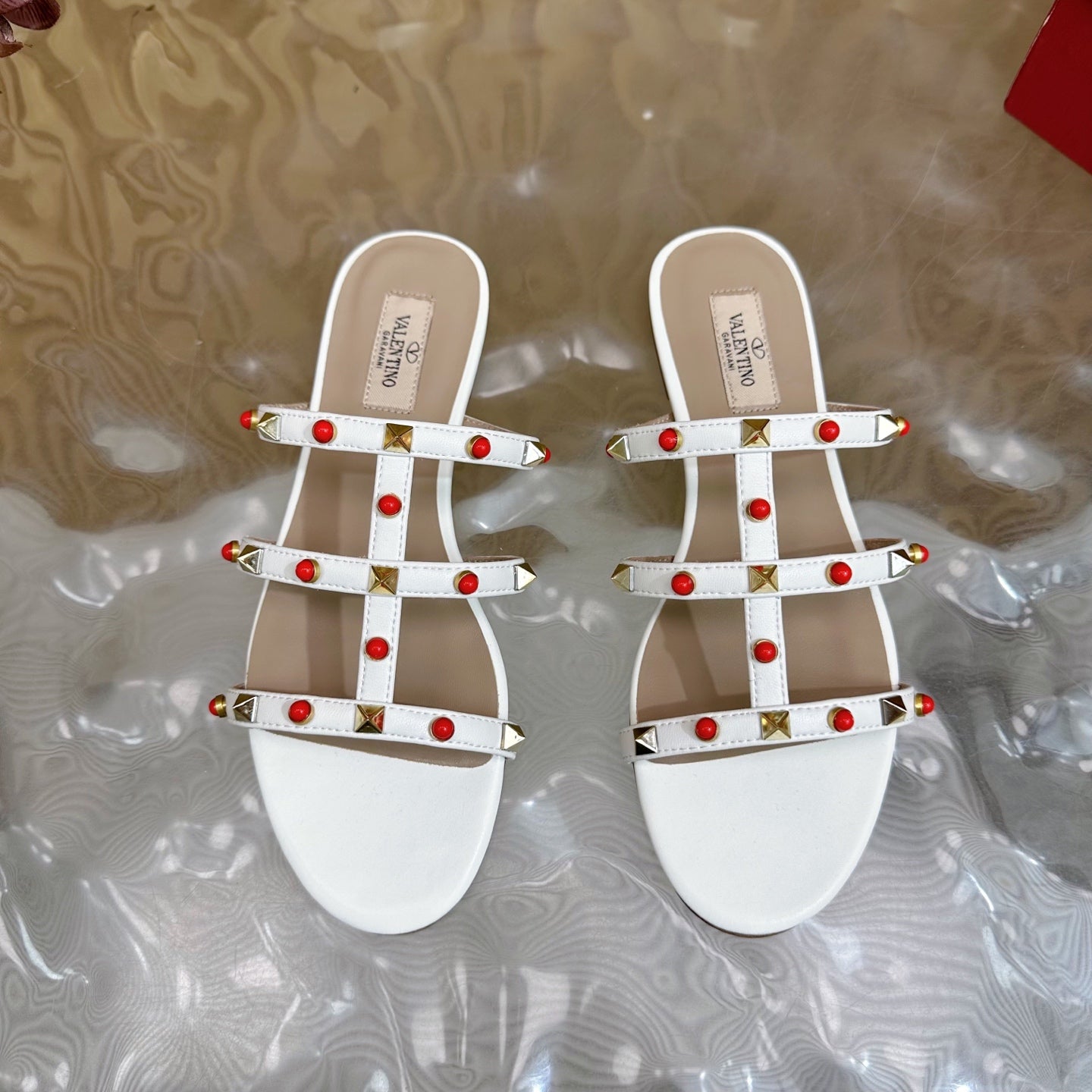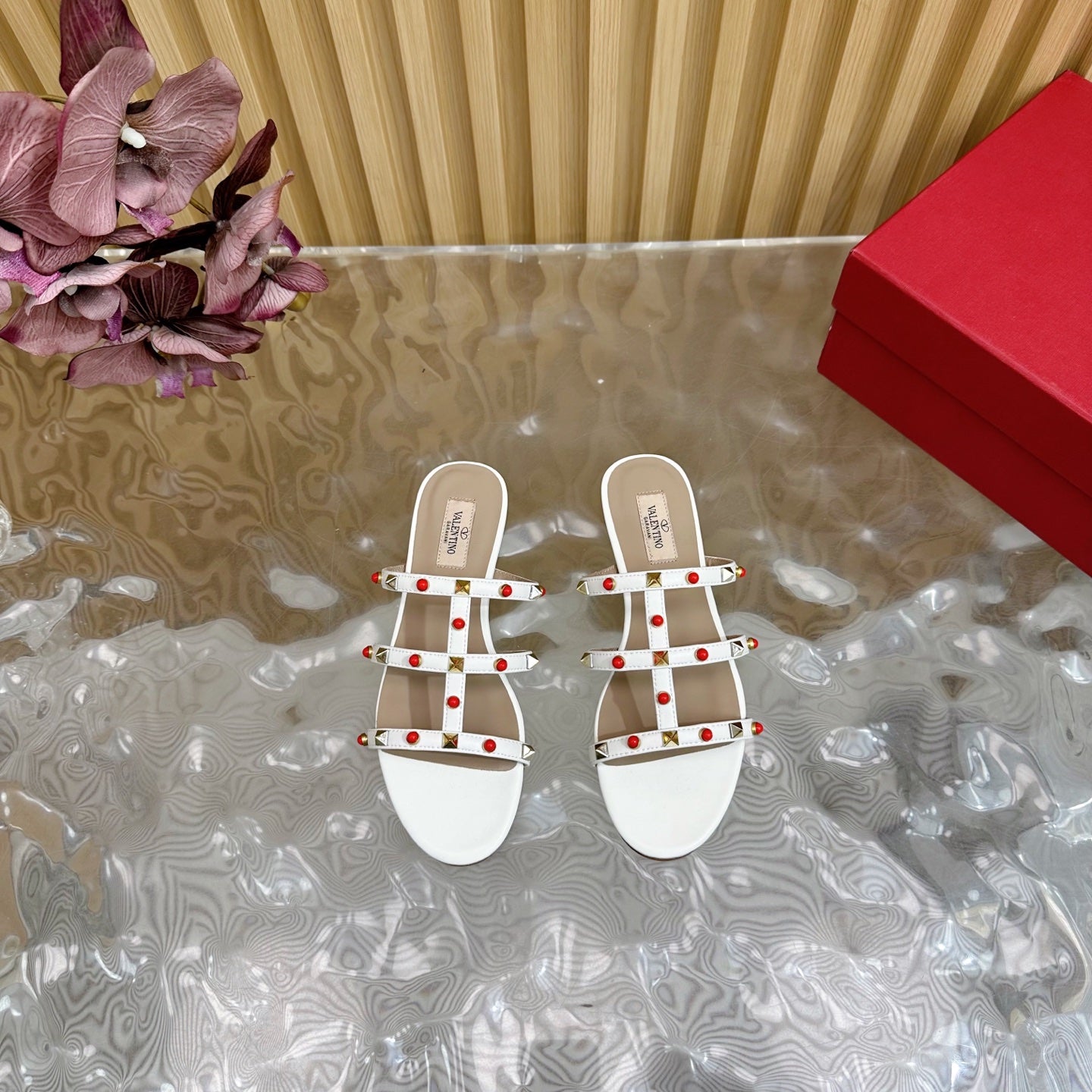Rockstud Leather Caged Mule Sandals 10mm White Sheepskin 307860