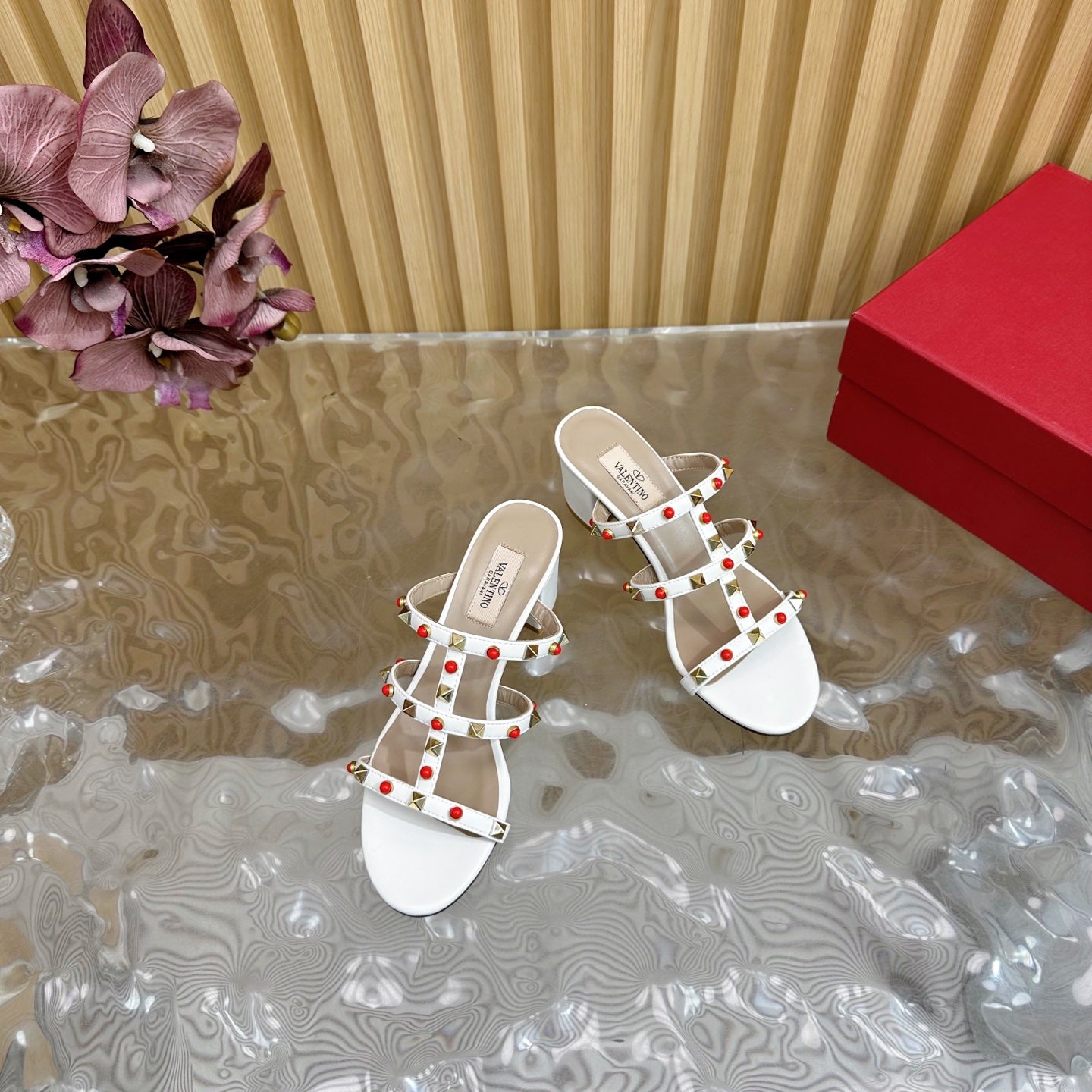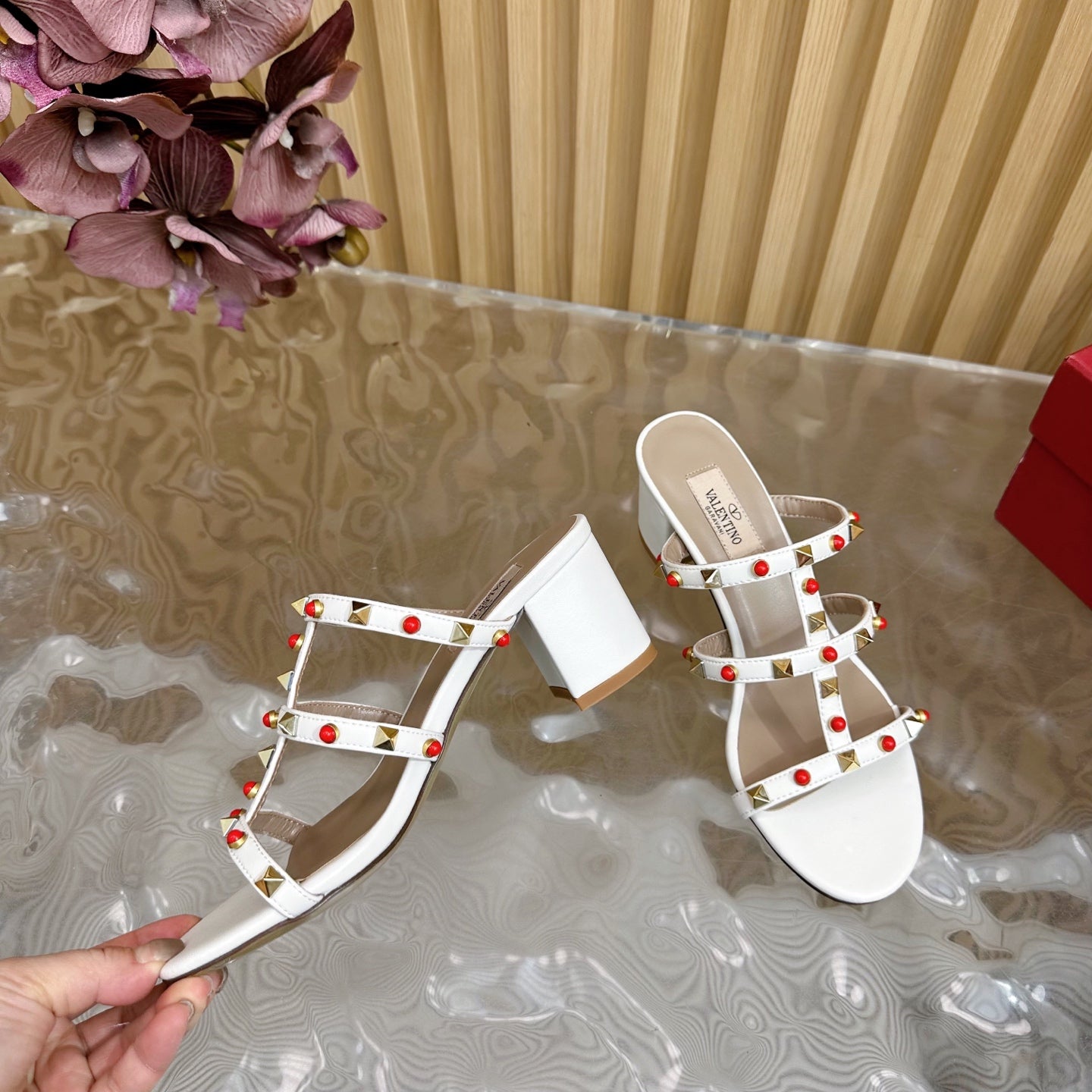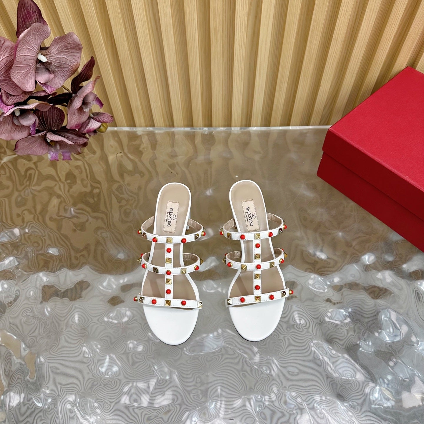 Rockstud Leather Caged Mule Sandals 60mm White Sheepskin 307863