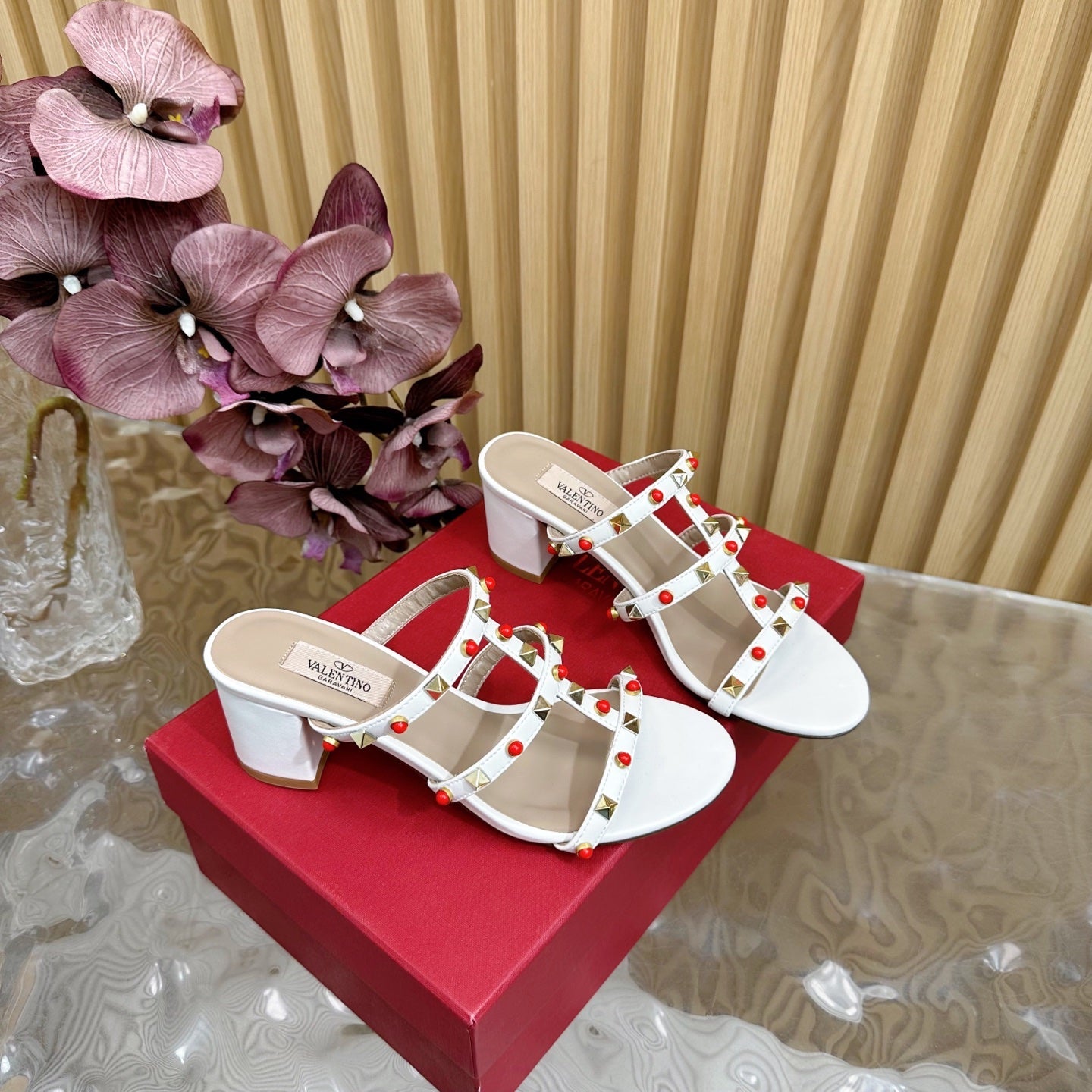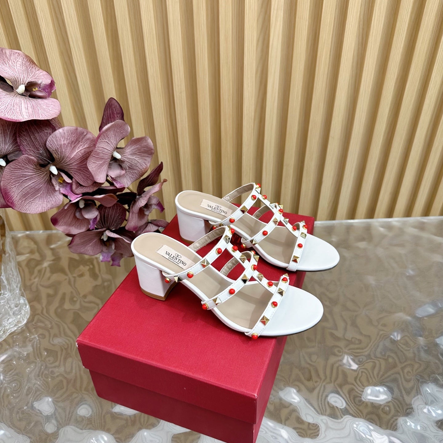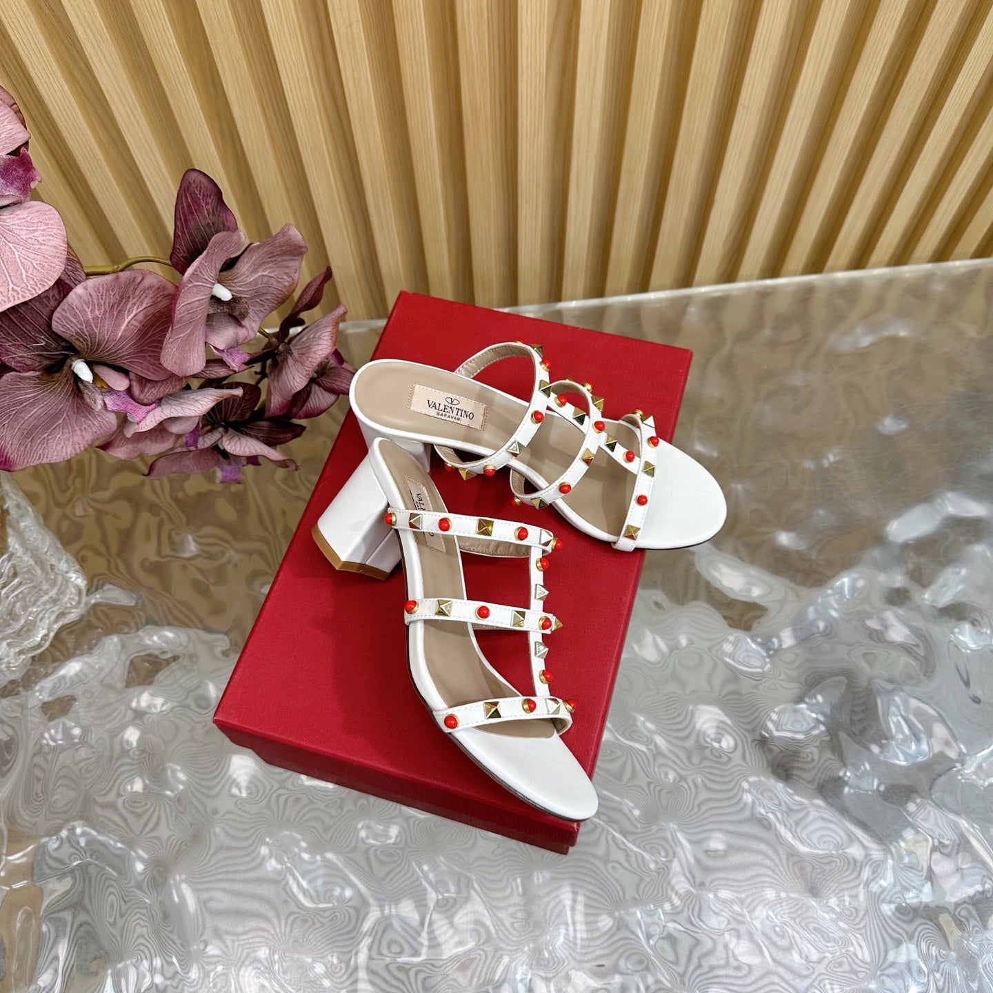 Rockstud Leather Caged Mule Sandals 60mm White Sheepskin 307863