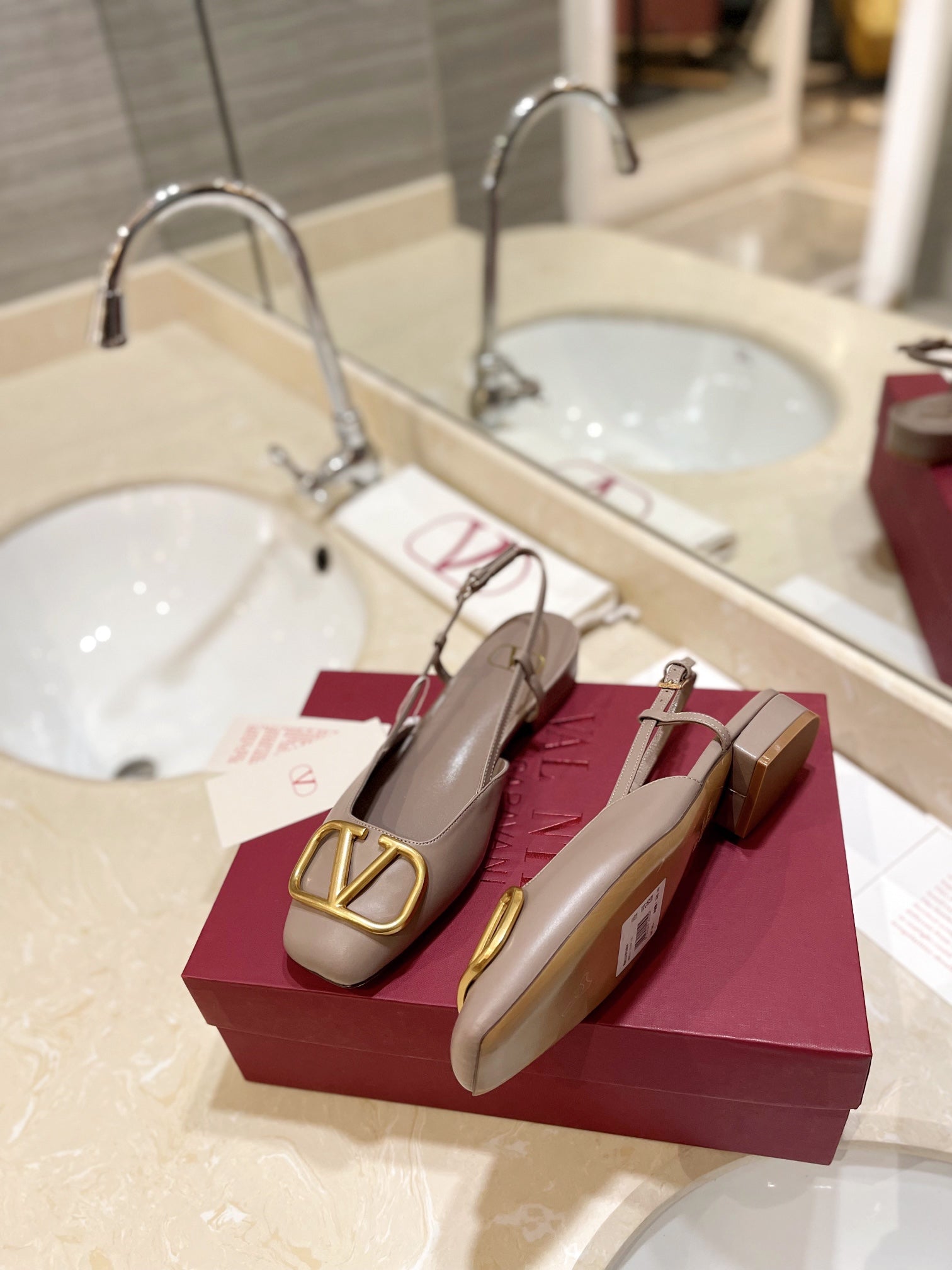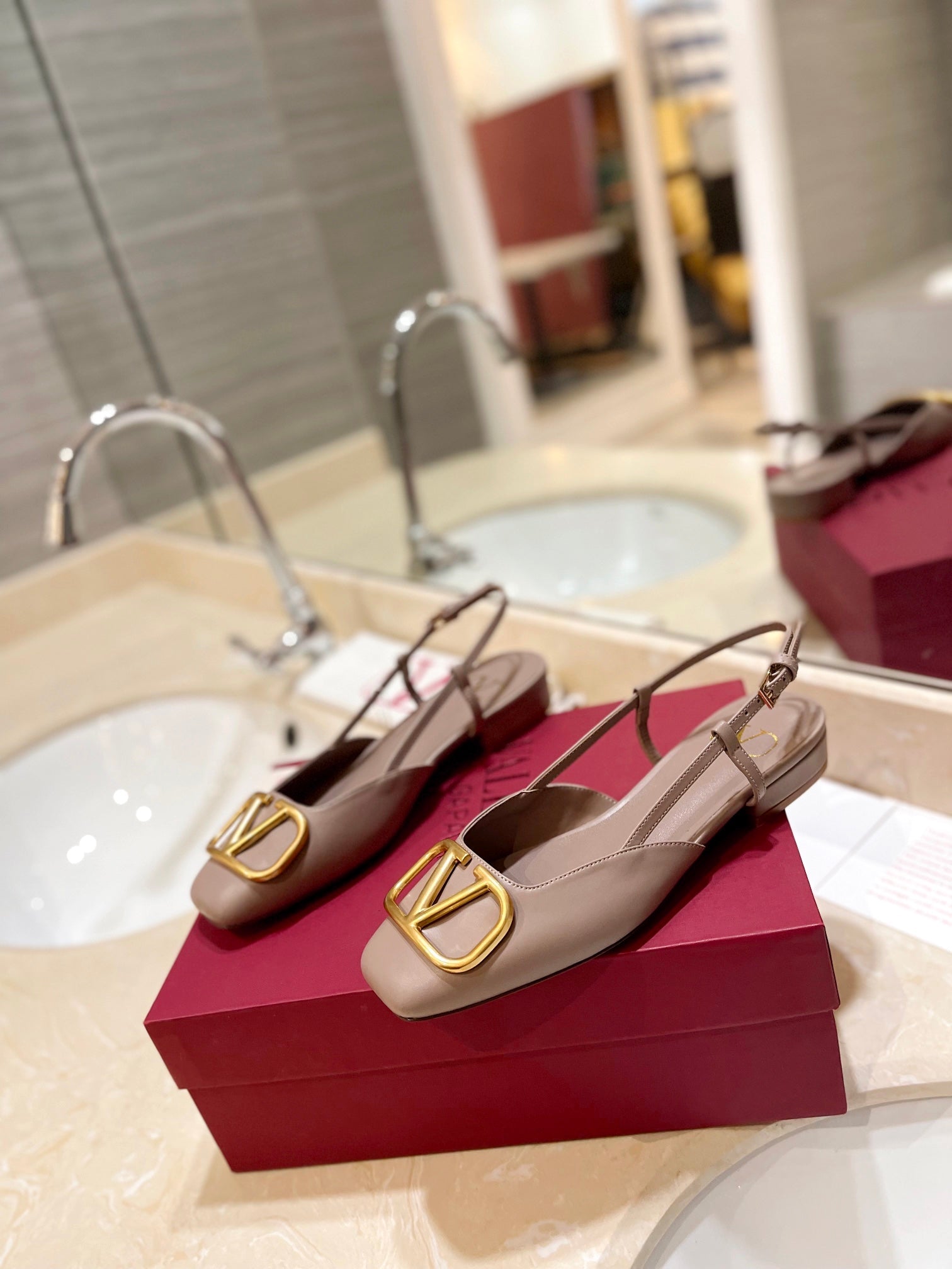 VLOGO ROSE CANNELLE LEATHER SLINGBACK FLATS