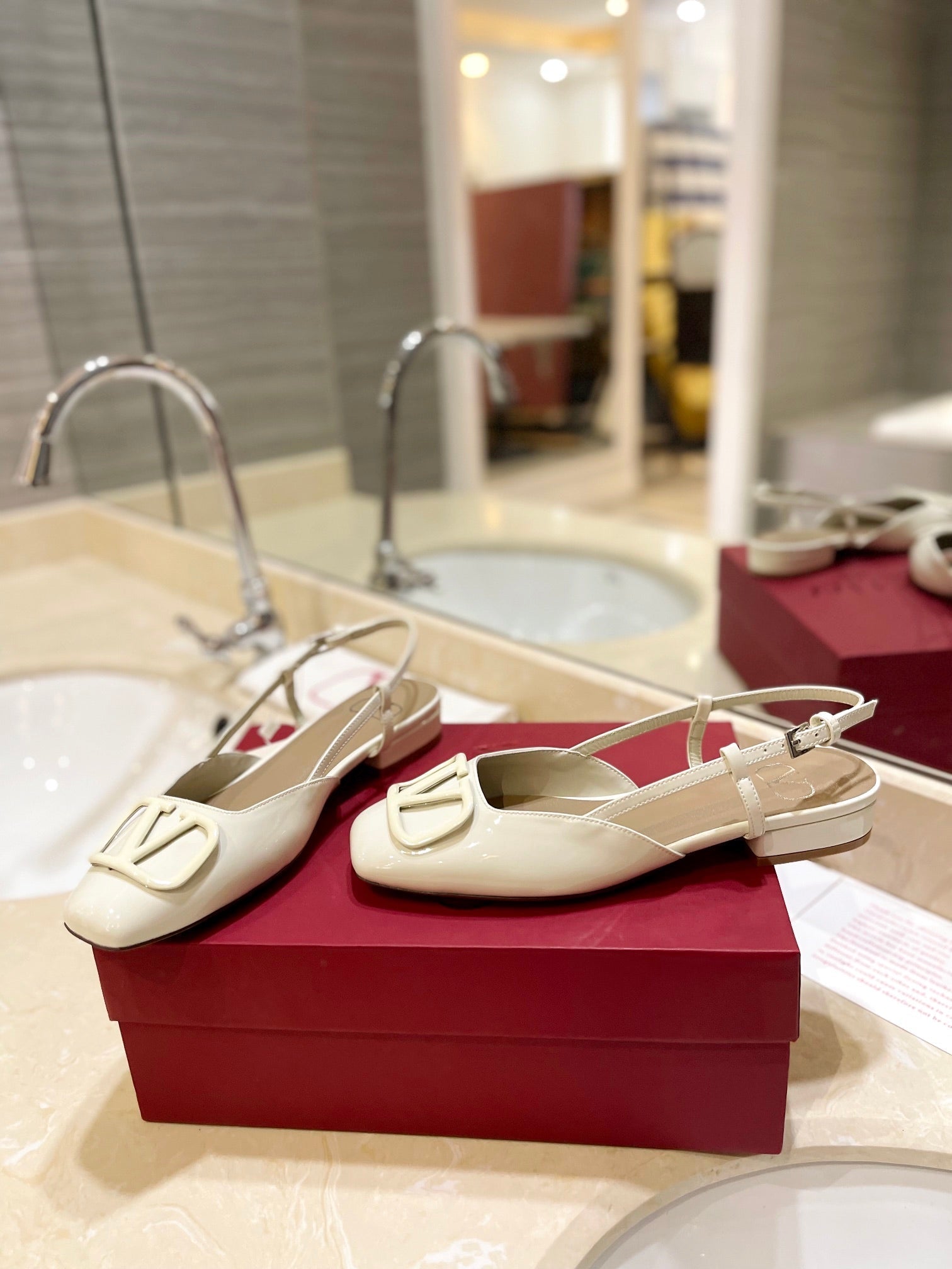 VLOGO WHITE PATENT LEATHER SLINGBACK FLATS