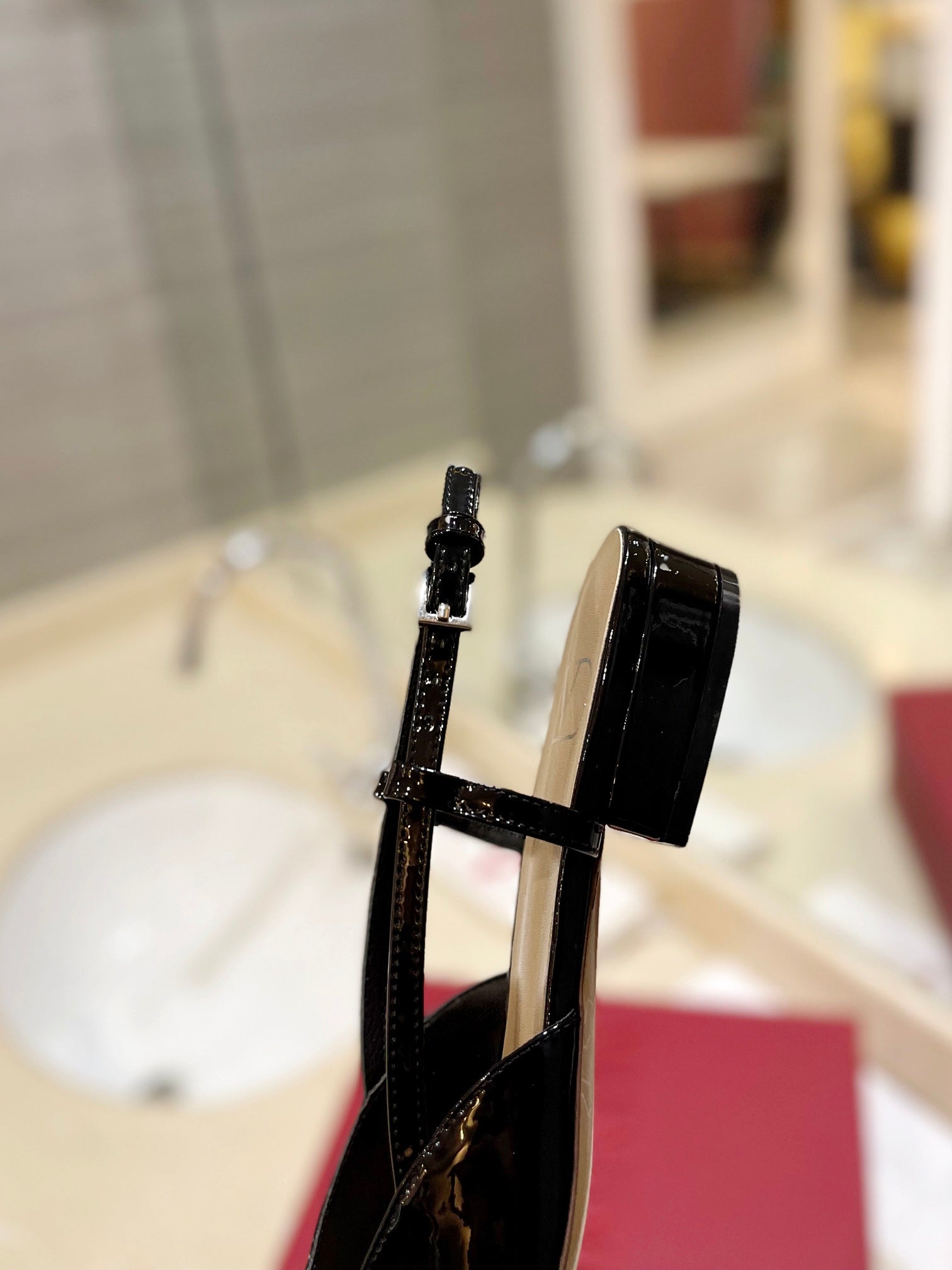 VLOGO BEIGE PATENT LEATHER SLINGBACK FLATS