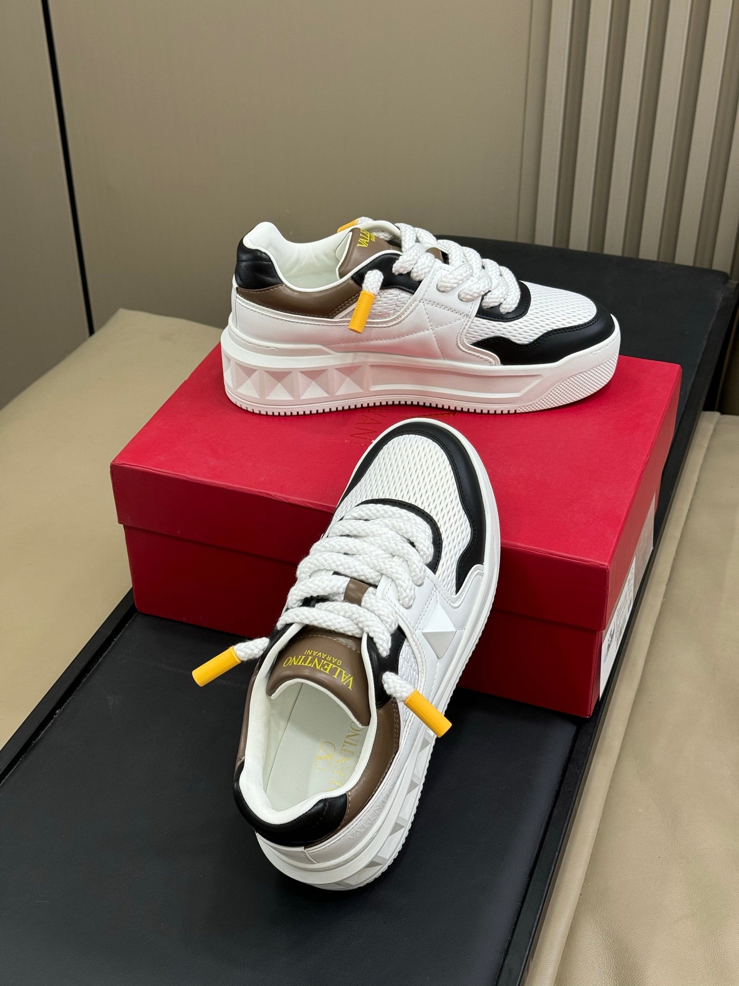 VT 2025 Garavani Sneakers White Black Yellow Cowhide 546976
