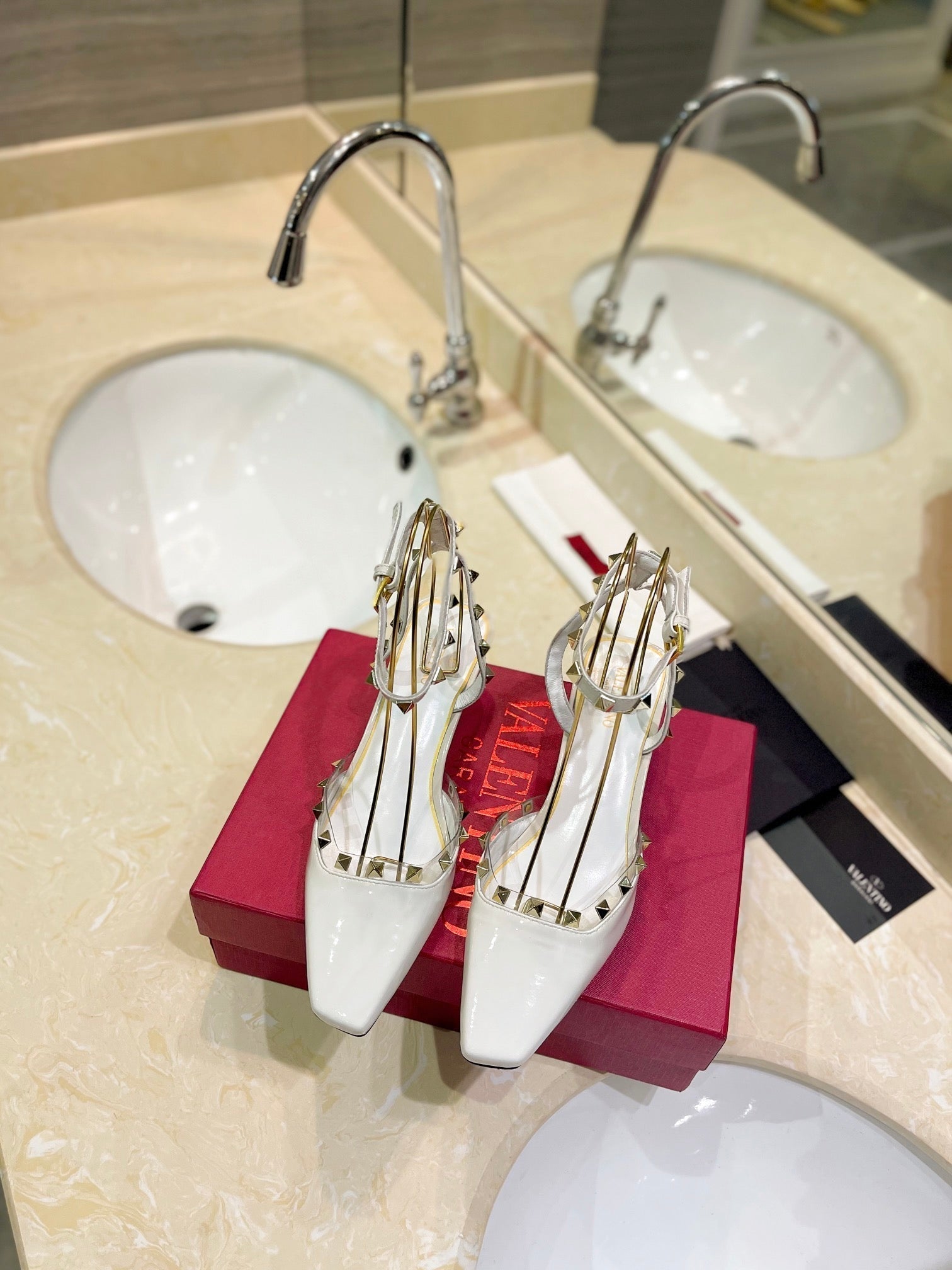ROCKSTUD SLINGBACK IN WHITE CALFSKIN 50MM