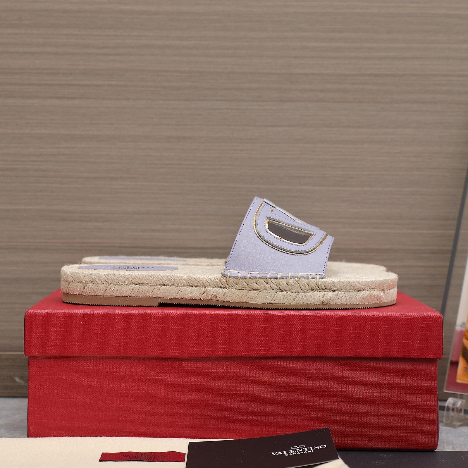 Vlogo Cut-Out Slide 20 Purple Calfskin Beige Sole Raffia