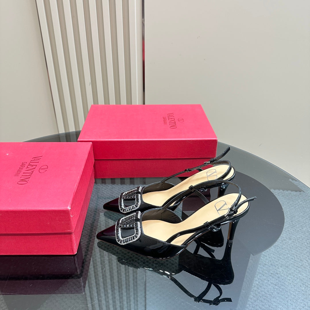 Vlogo Glow Laminated Nappa Leather Slingback Pump 80mm Black Mix Beige 999048