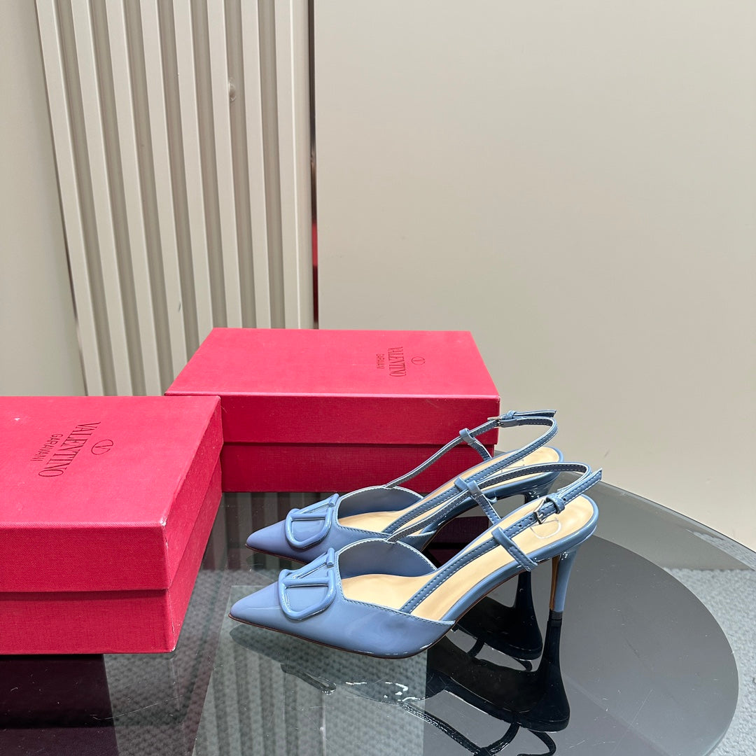 VLOGO SIGNATURE ELECTRIC BLUE PATENT LEATHER SLINGBACK PUMP 80MM