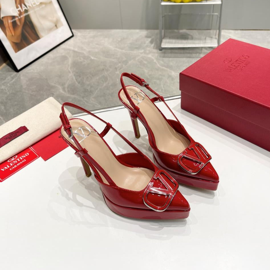 vlogo signature red beige calfskin slingback platform pump 120mm