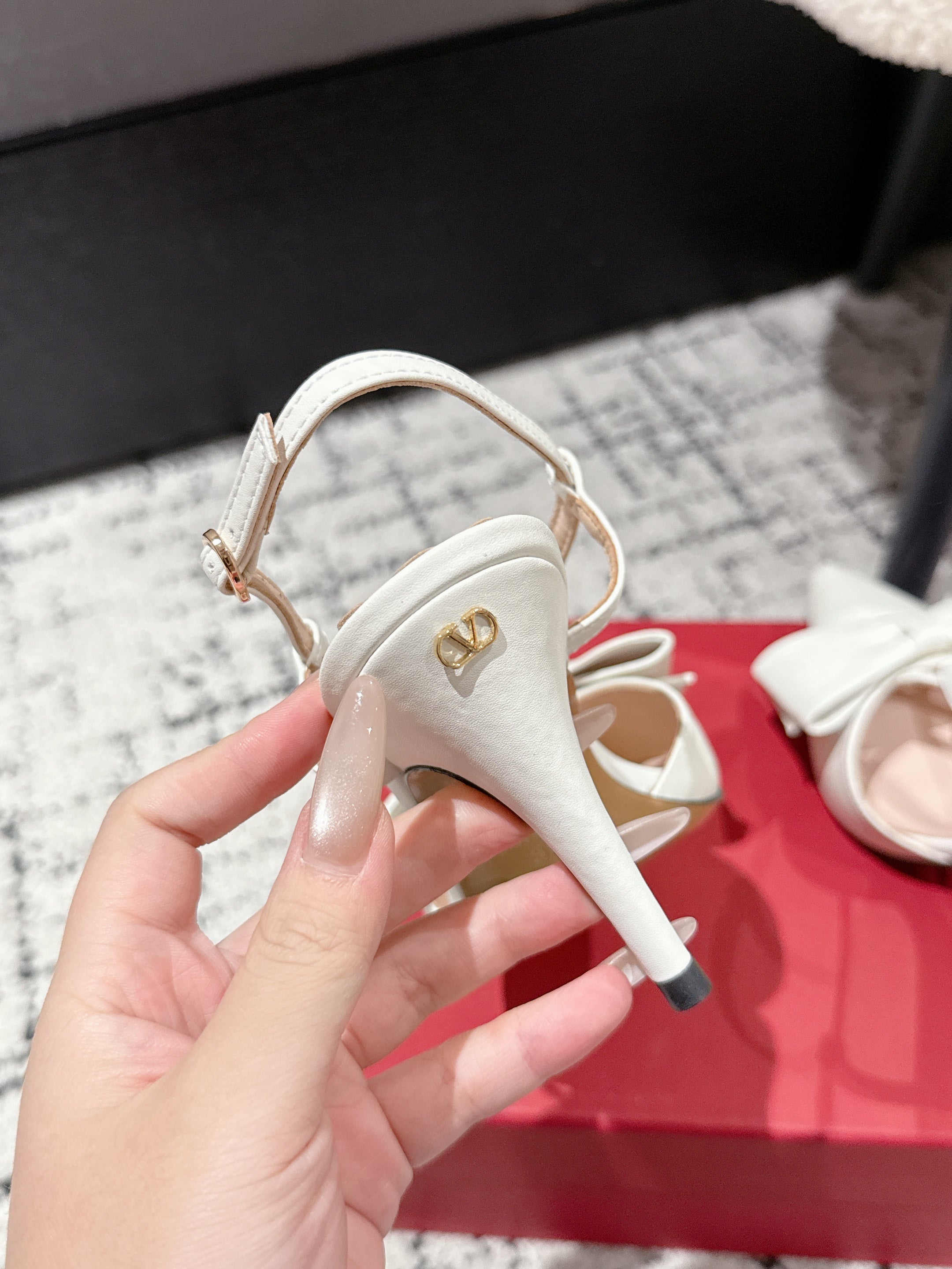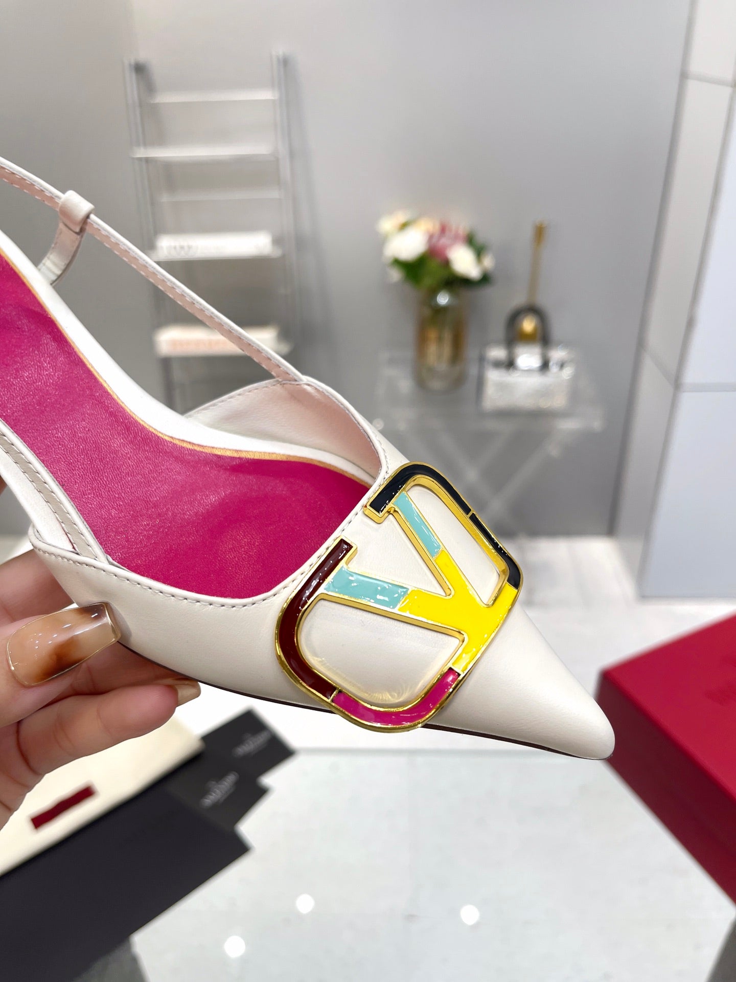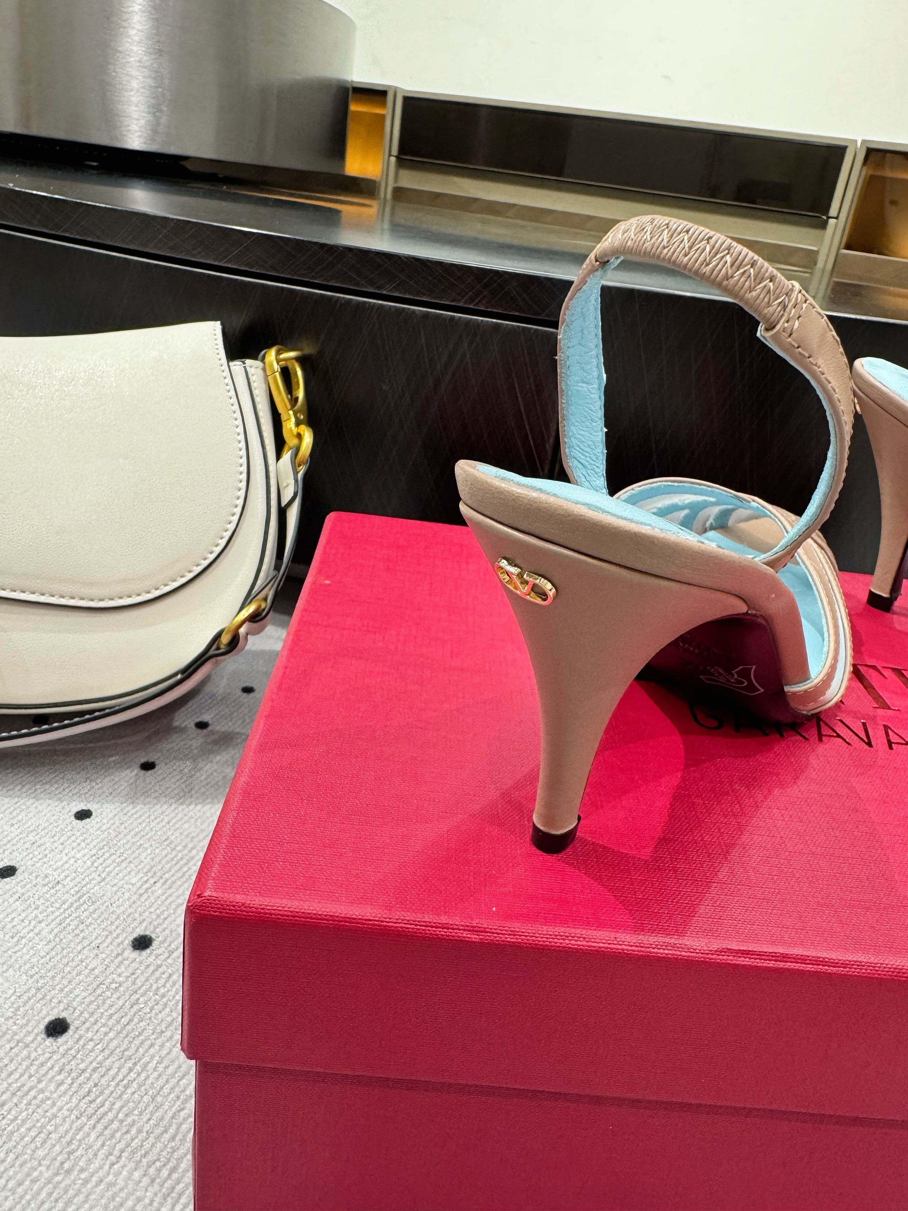 VT Vlogo Signature 75mm Pink White Slingback Sheepskin