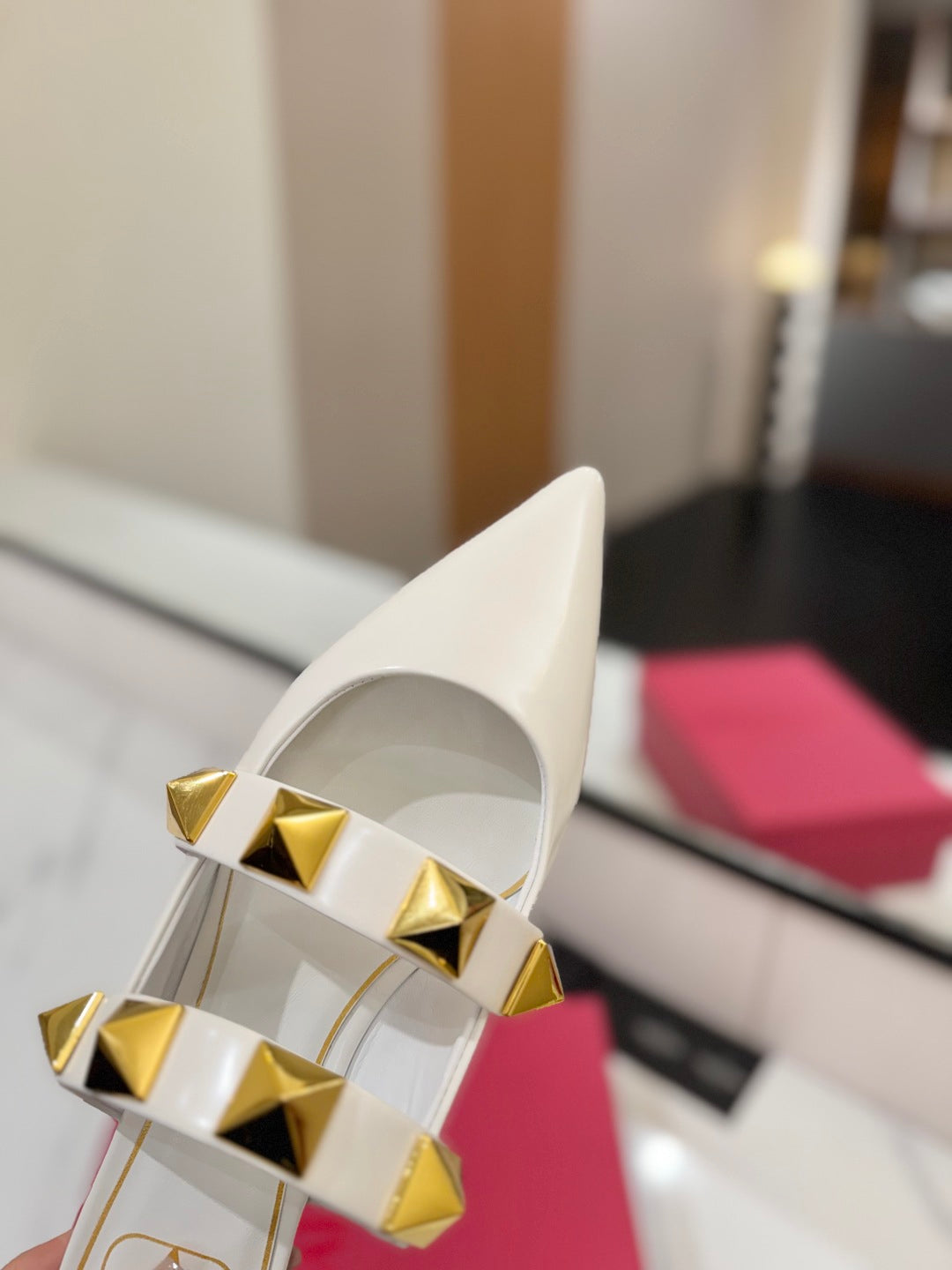 VT Rockstud Pumps White Sheepskin Leather